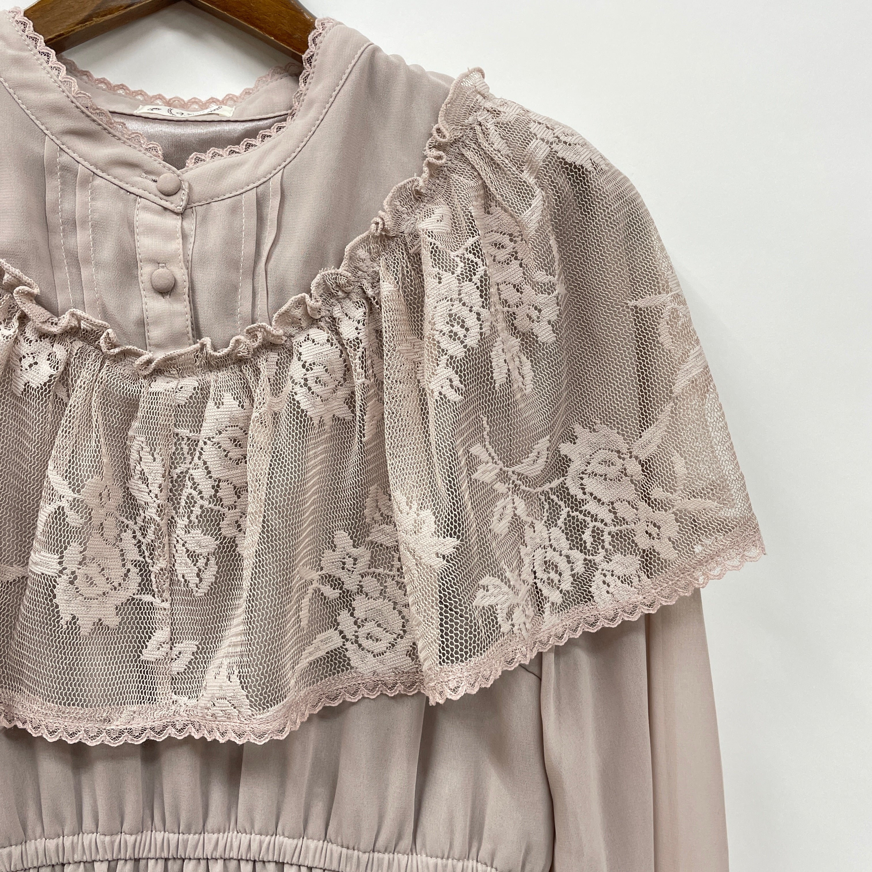 美しいバラ柄のレースケープがポイントになったワンピースです。