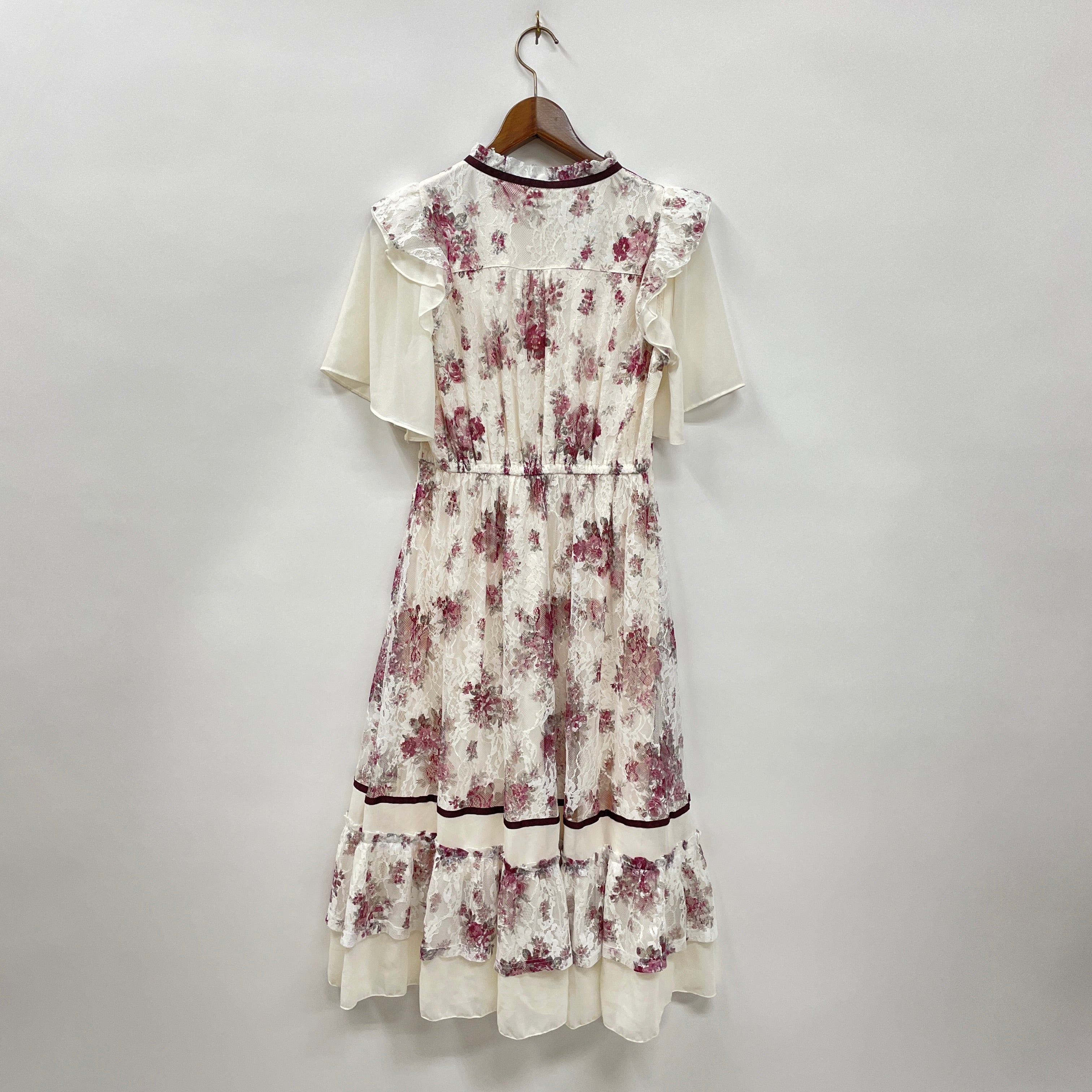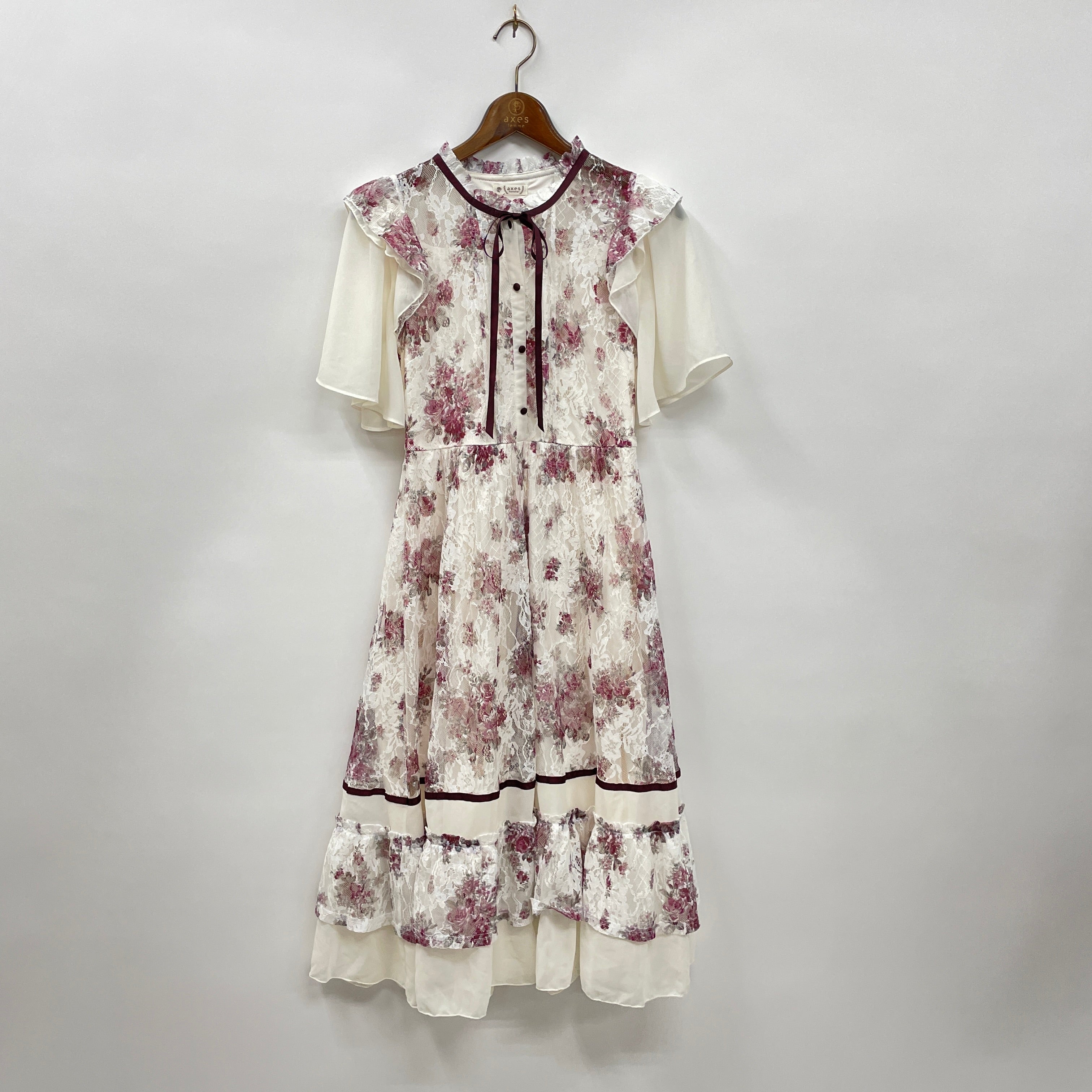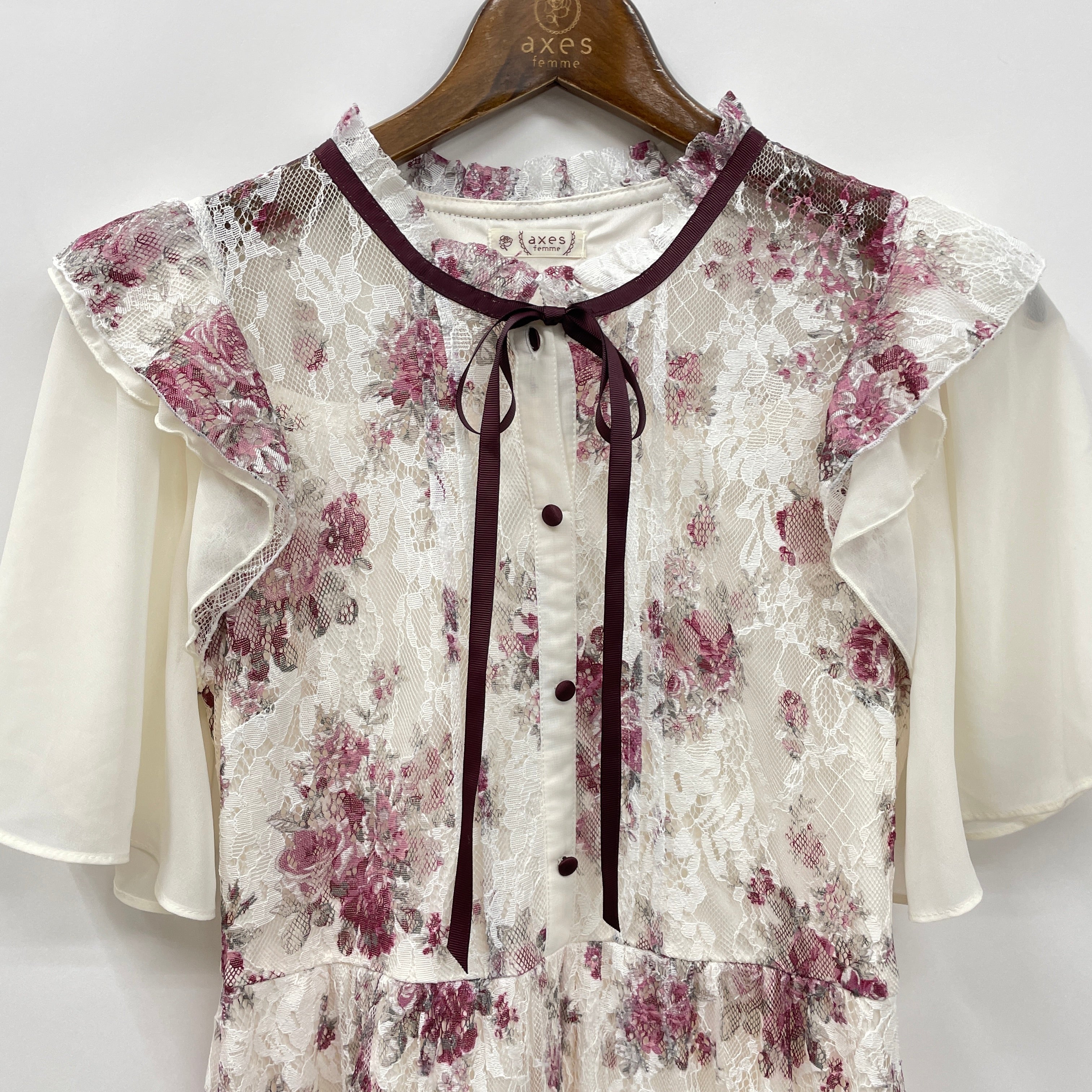 レース生地にボリューミーなローズブーケ柄をプリントしたワンピースです。