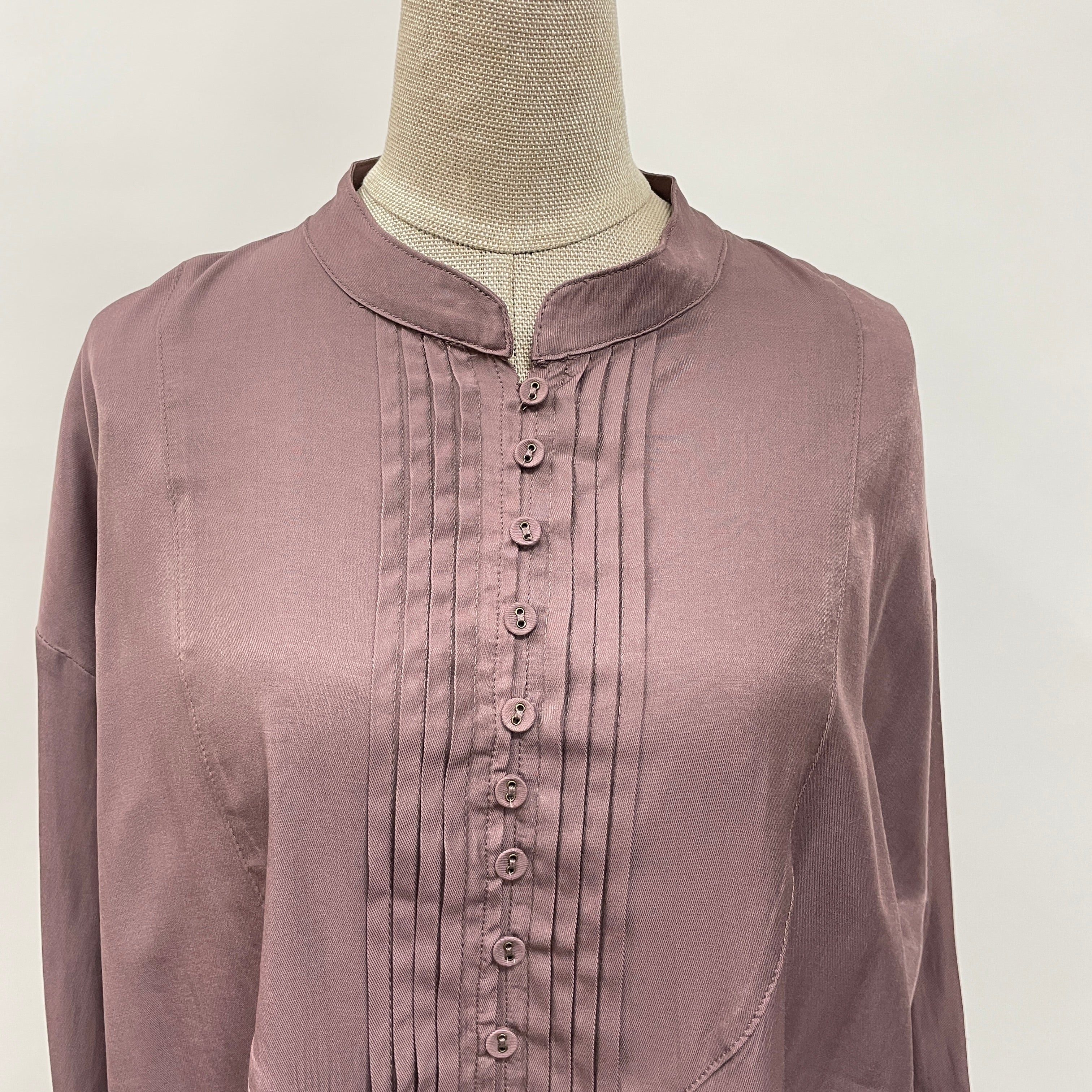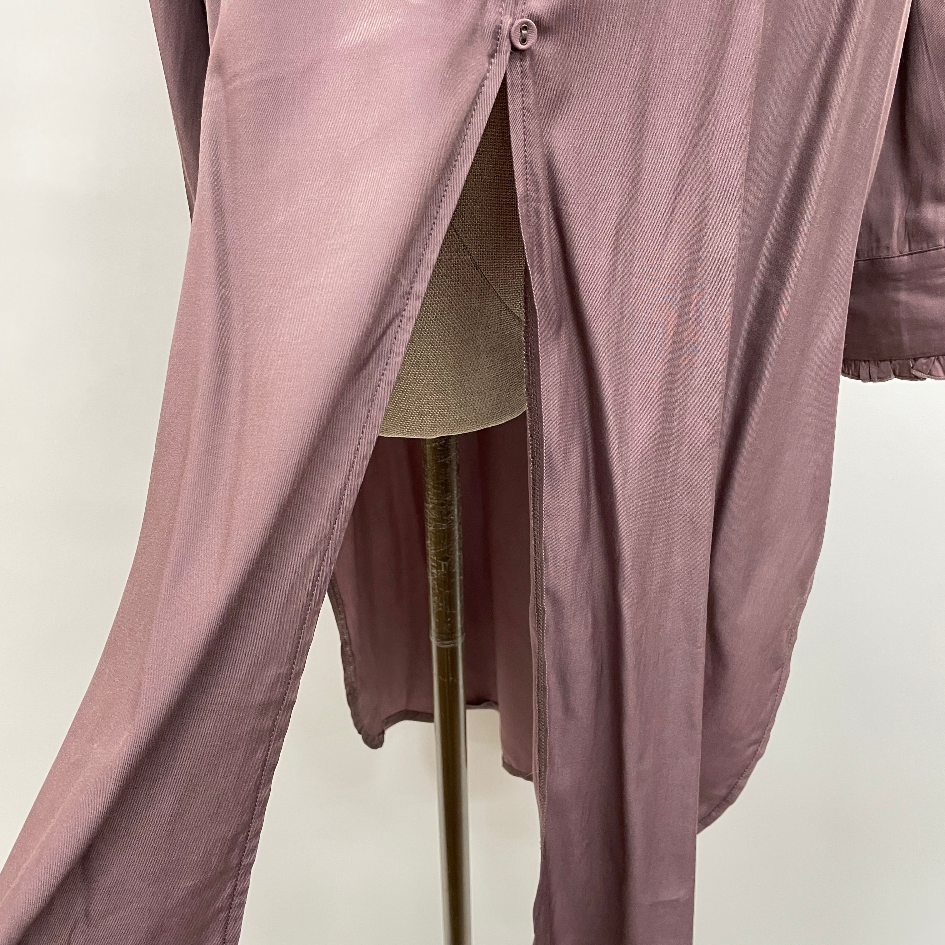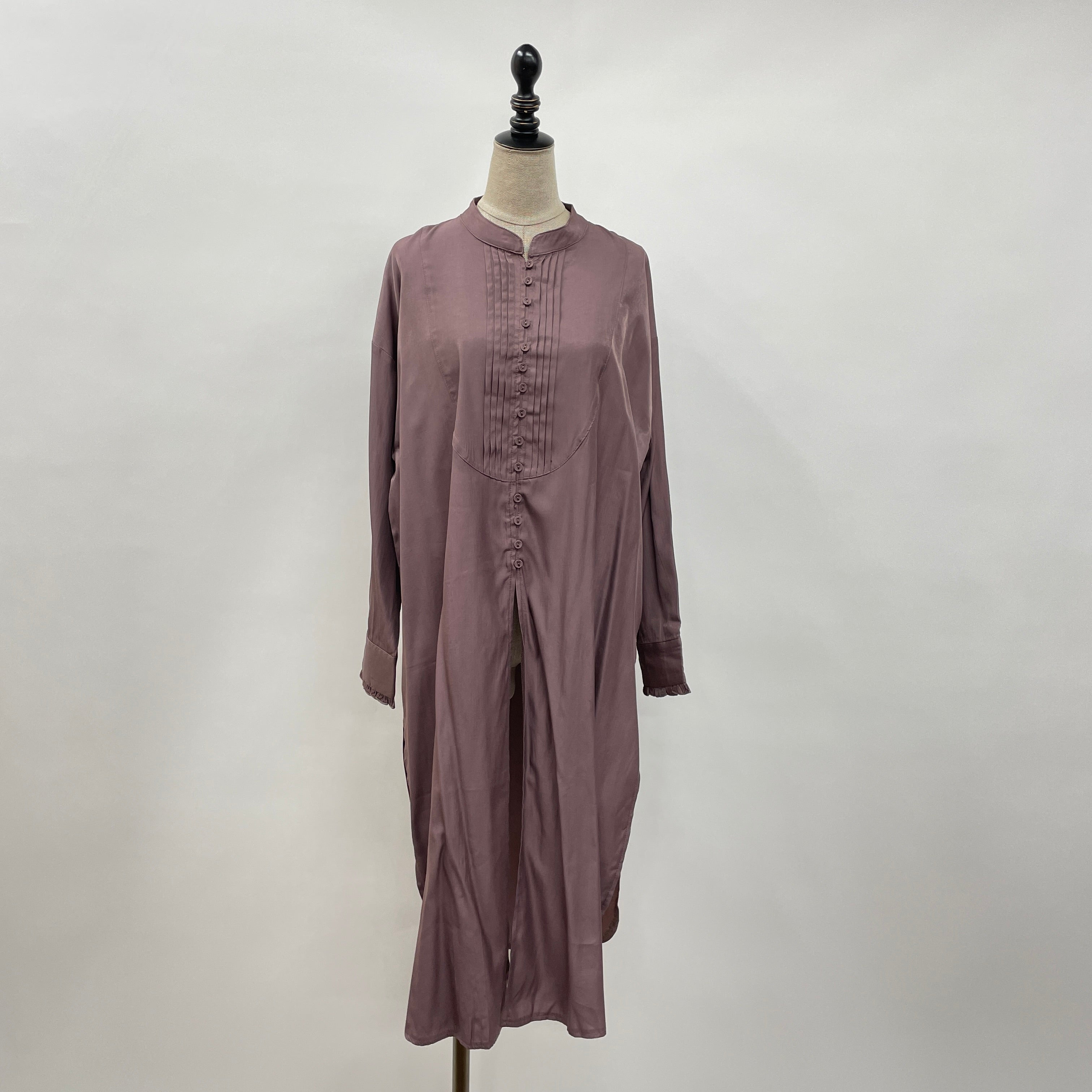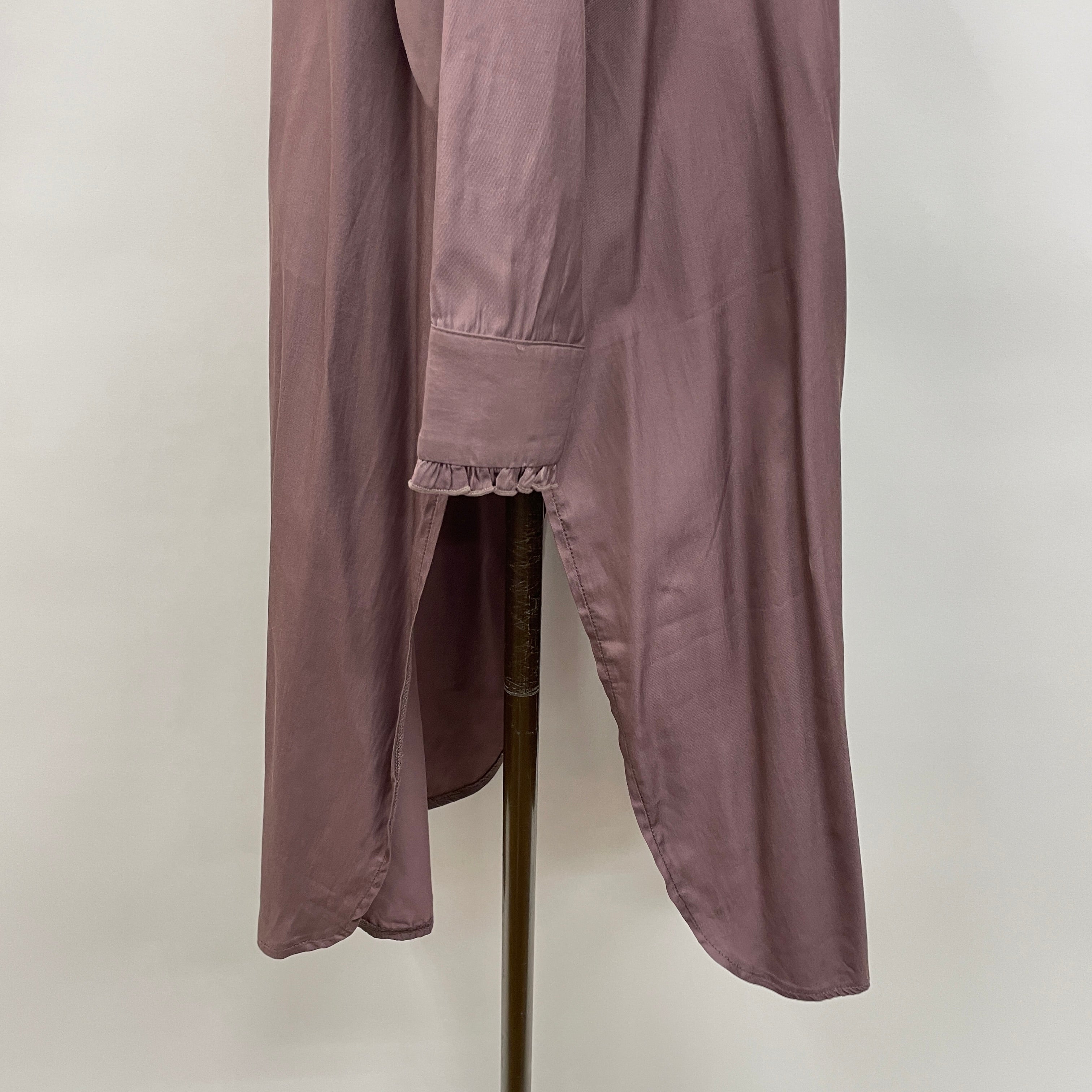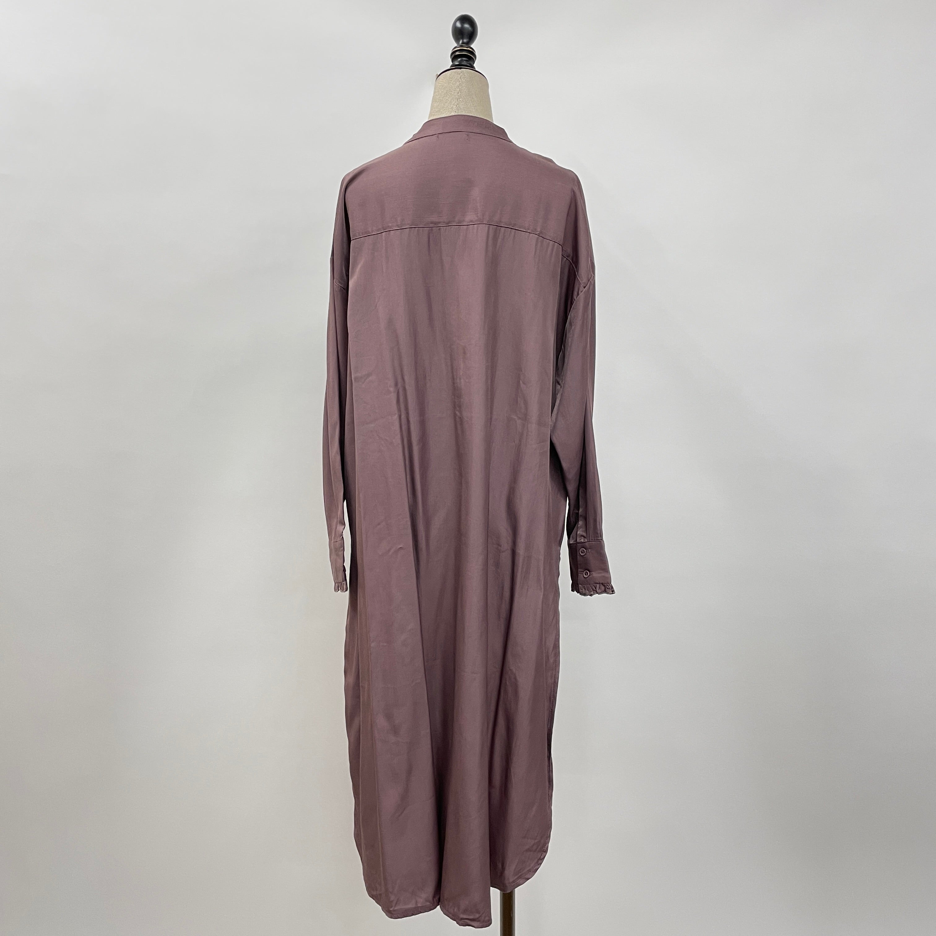 微光沢のあるヴィンテージサテン素材のシャツワンピース。