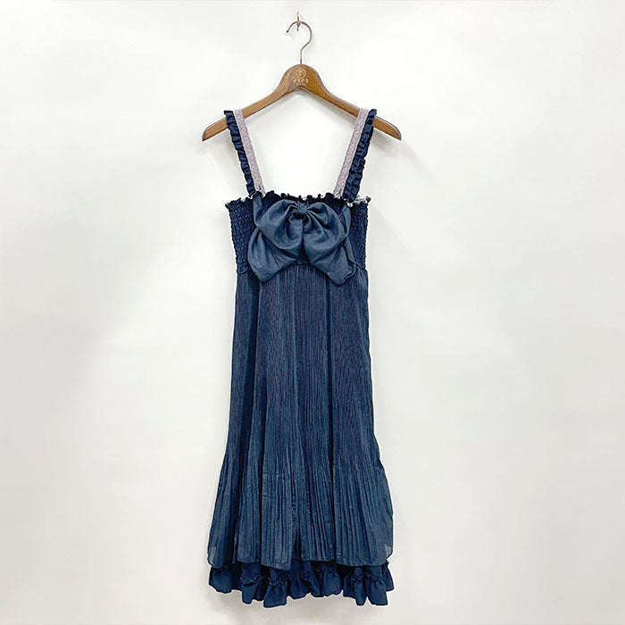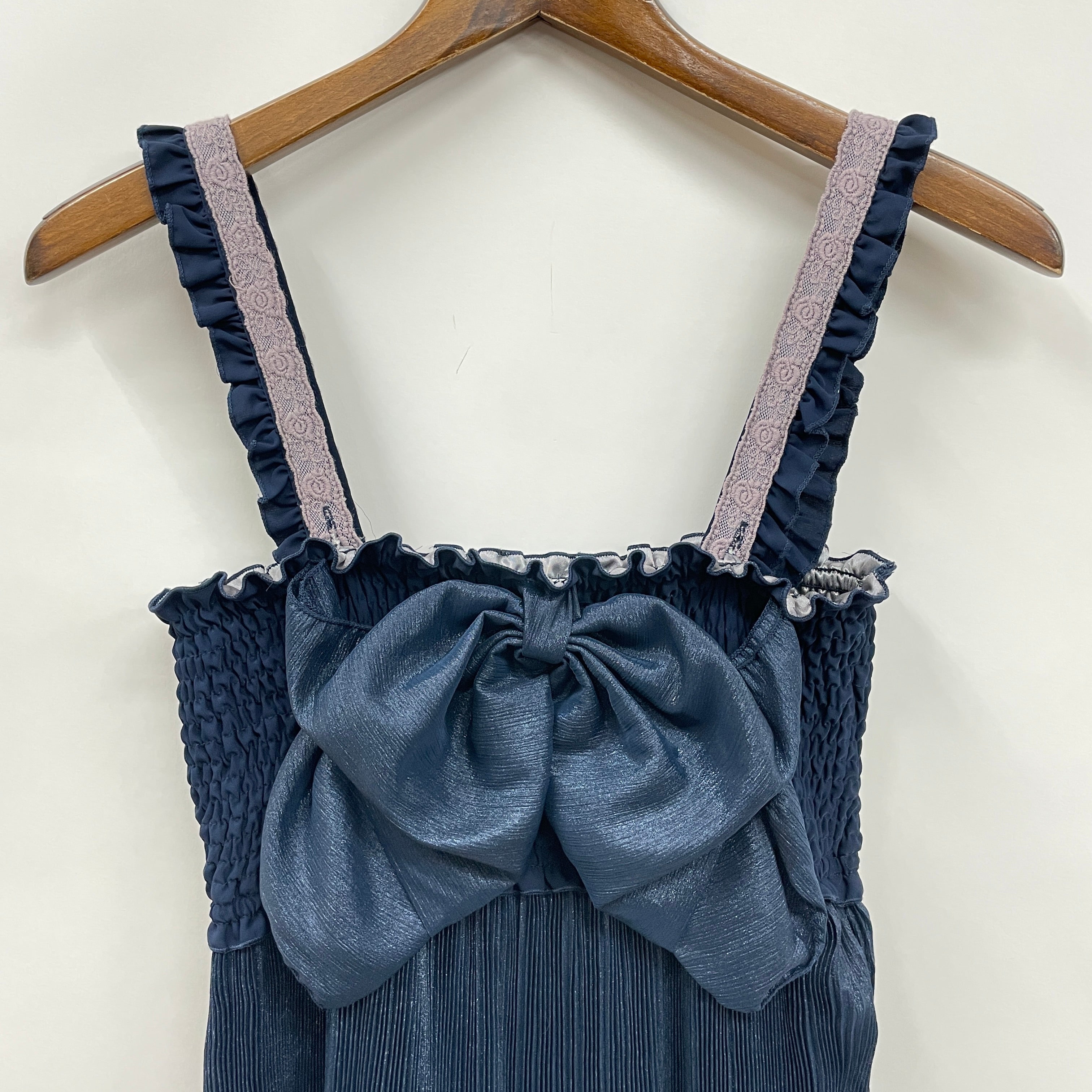 胸元の存在感あるビッグリボンがポイントのワンピース。