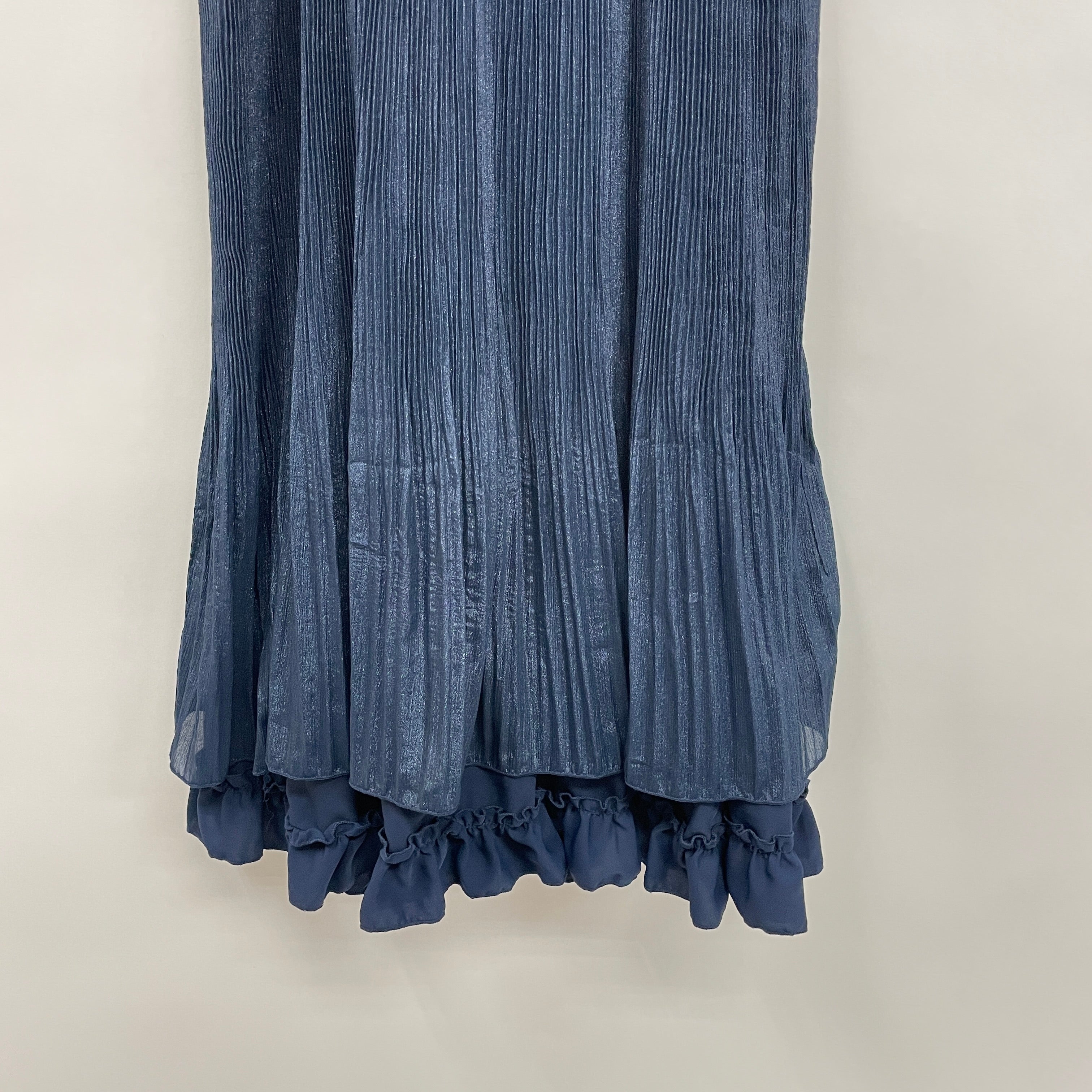 細めのプリーツを施し、裾にはフリルガーリーな印象ですが大人も着やすいシルエットです。