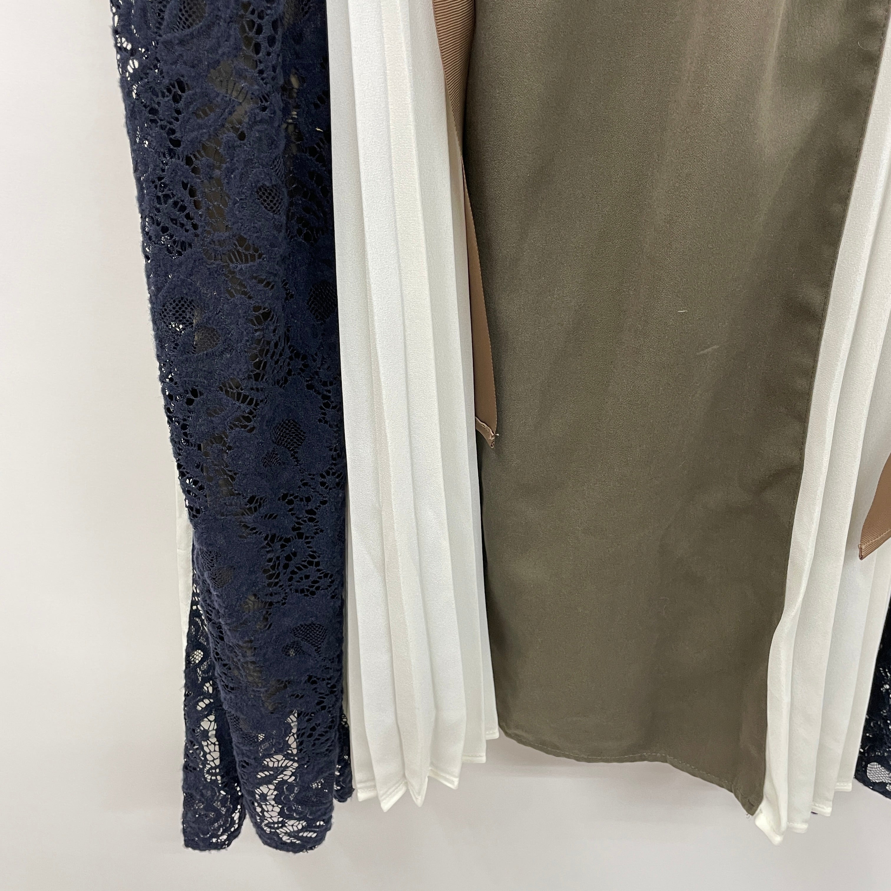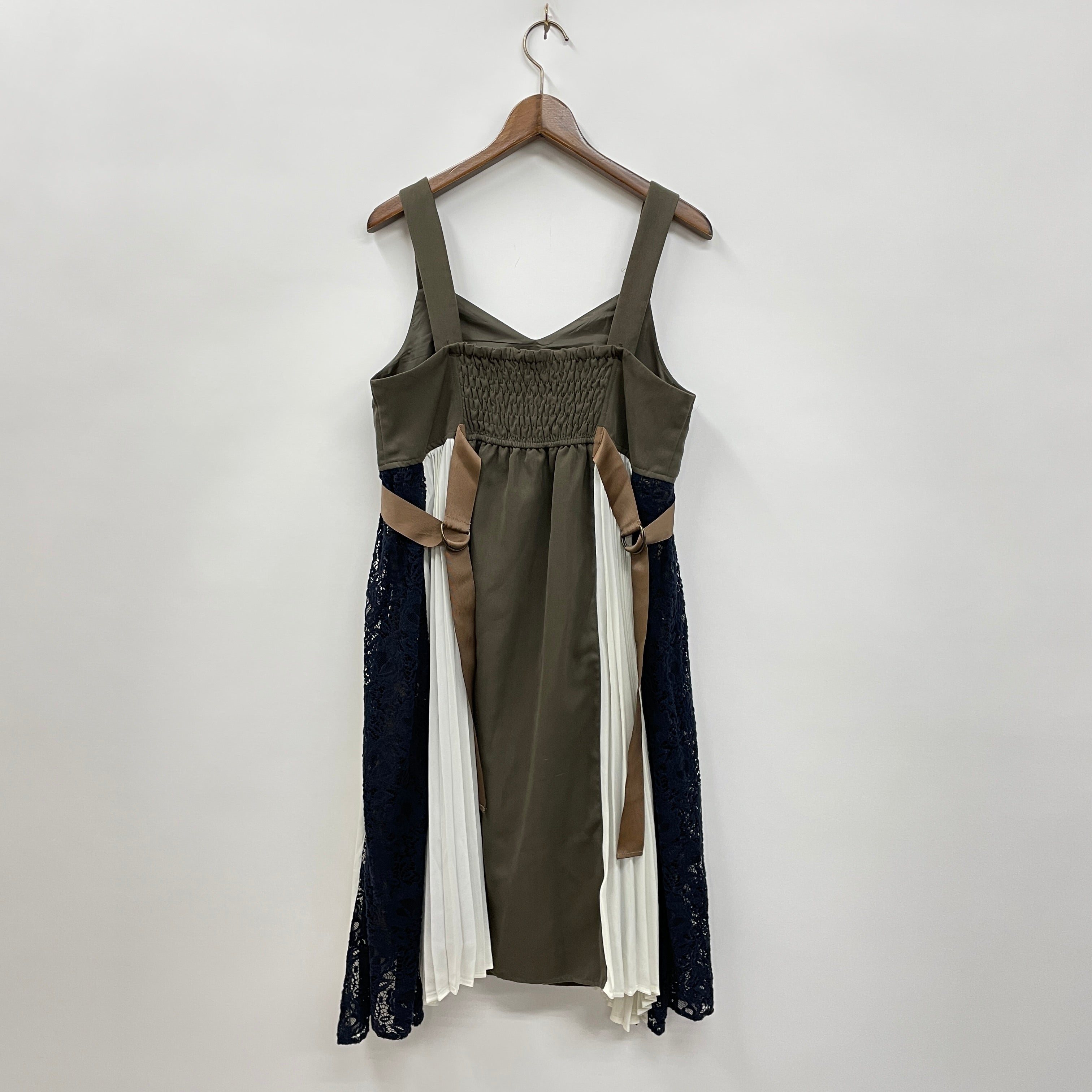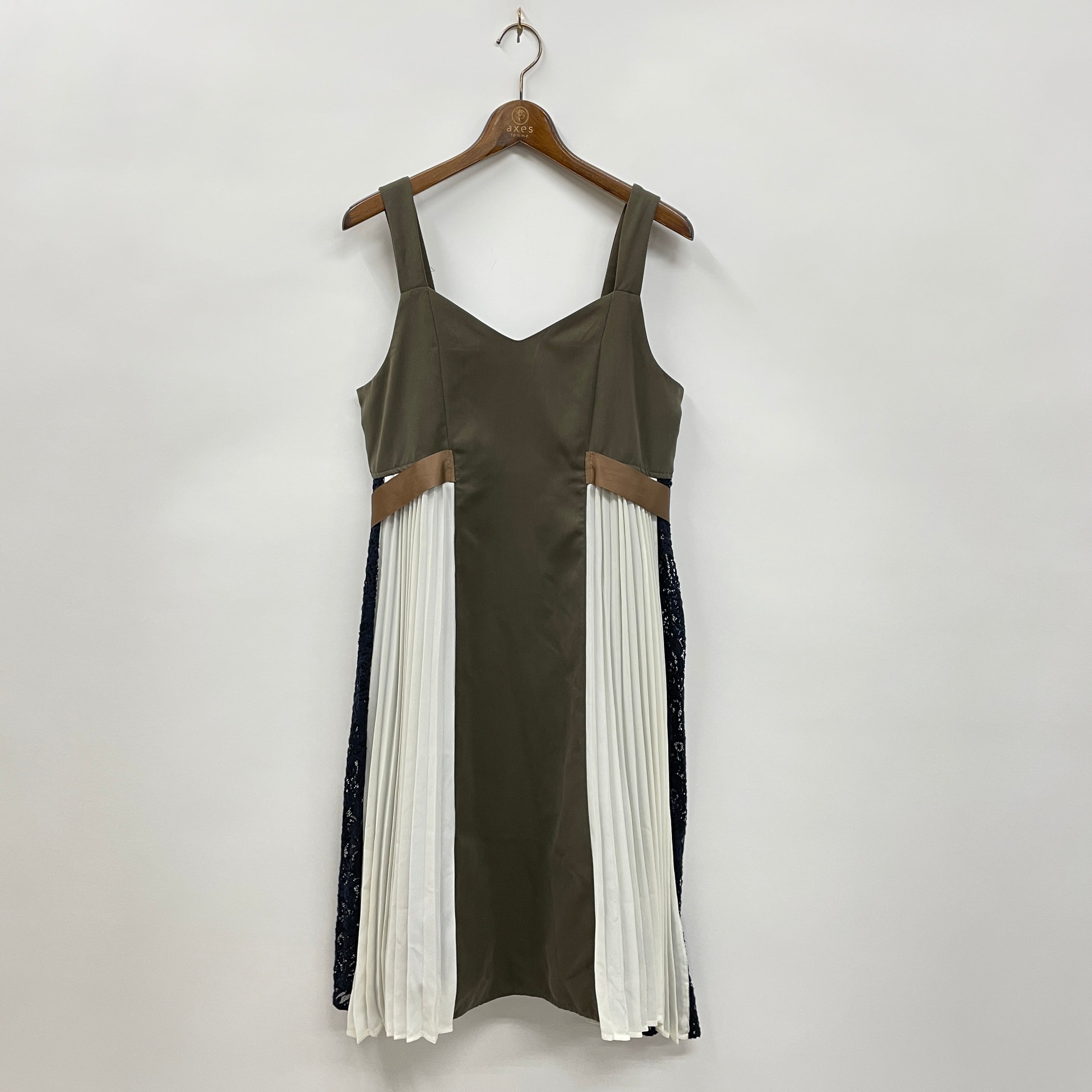 サイドにプリーツ×レースデザインを施したジャンパースカートです。太めのグログランリボンがアクセント、サイドの配色使いが可愛いポイントです。ピーチスキン調の素材を使用しておりキレイなシルエットを作り上げます。レースインナーやリブ素材のトップスとあわせるとトレンドライクな着こなしに、襟付きブラウスを上品な雰囲気に仕上がります。
