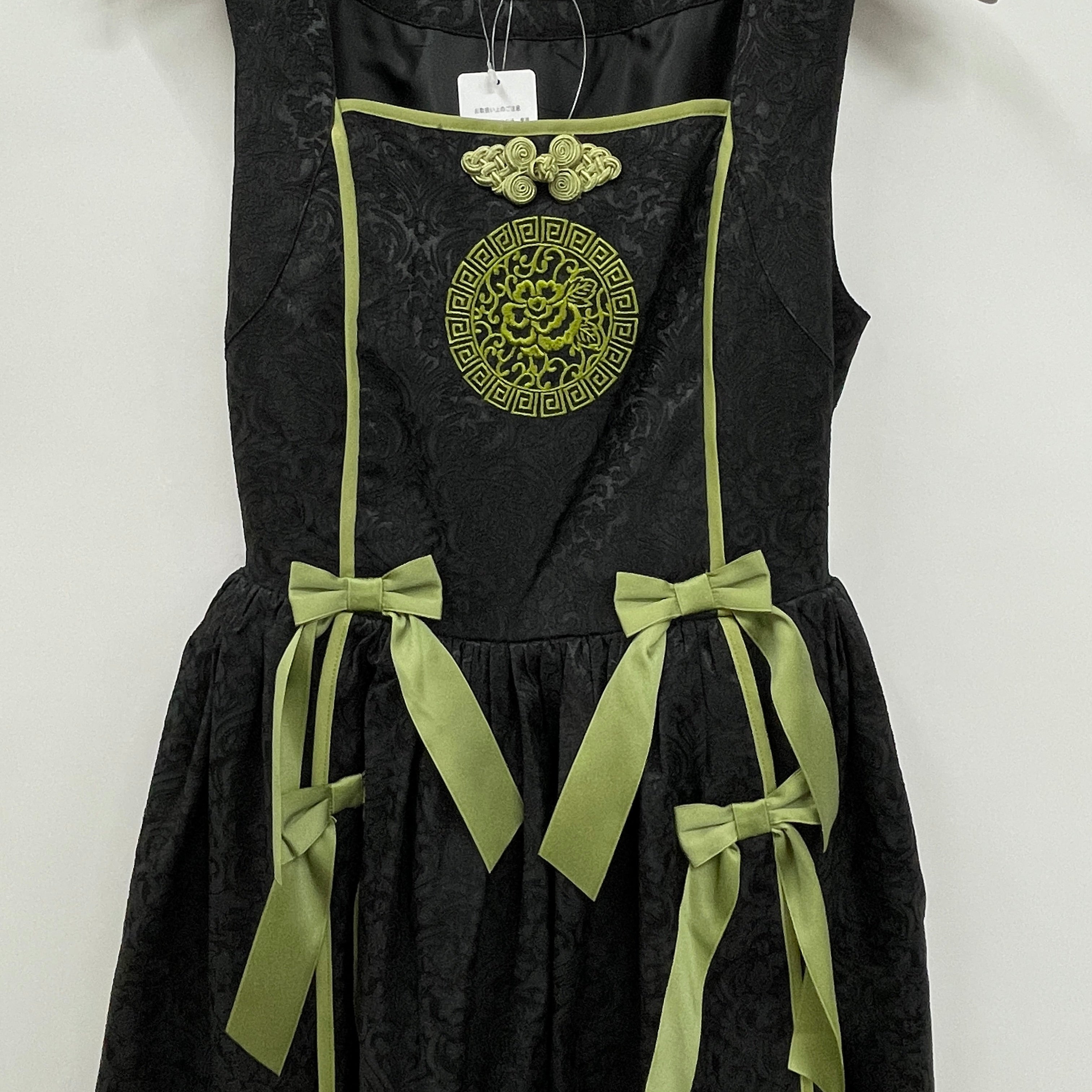 刺繍やチャイナ釦が沢山あしらわれた豪華なジャンパースカートです。ワンピースよりロング丈で落ち着いた印象で着用できます。