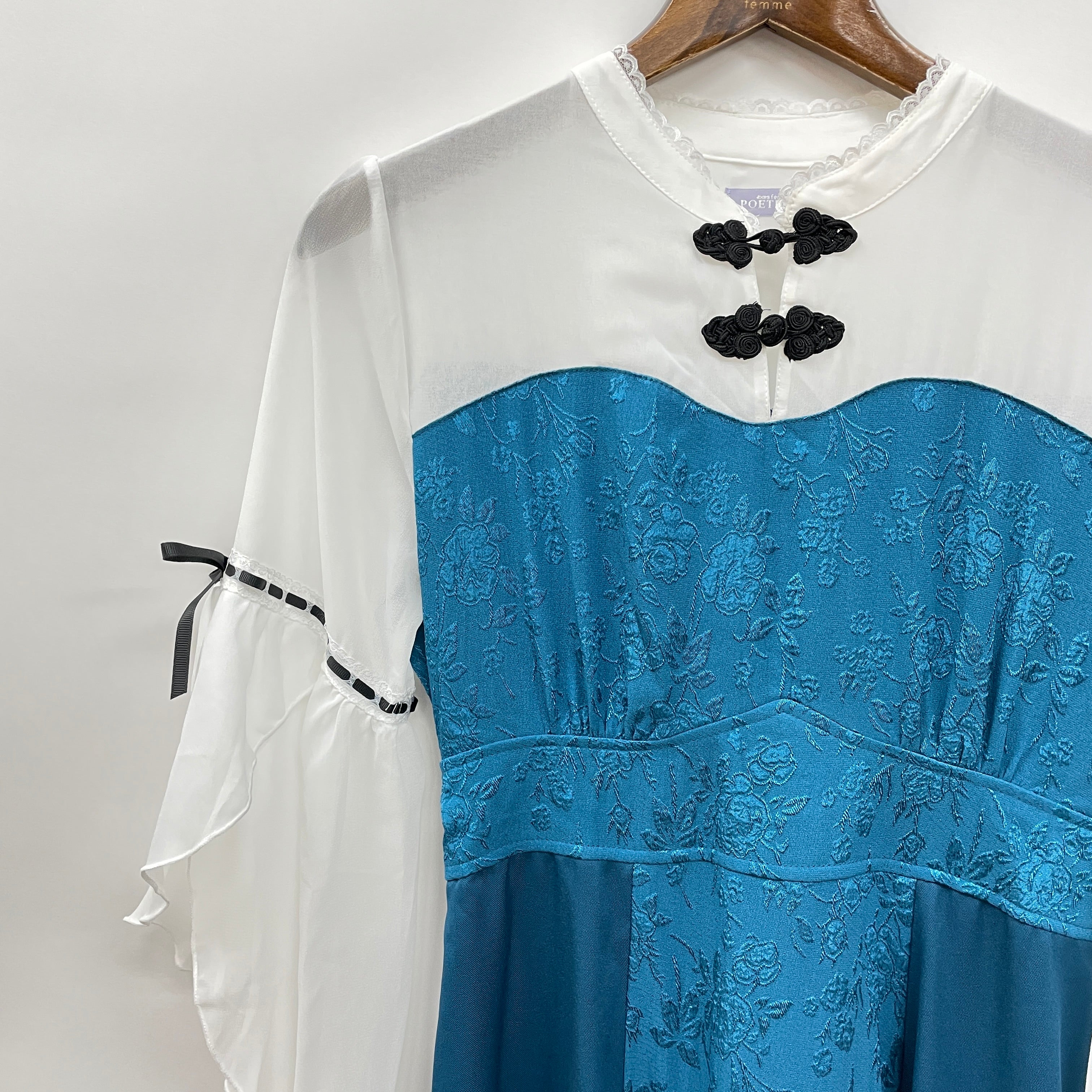チャイナボタンフレア袖OP