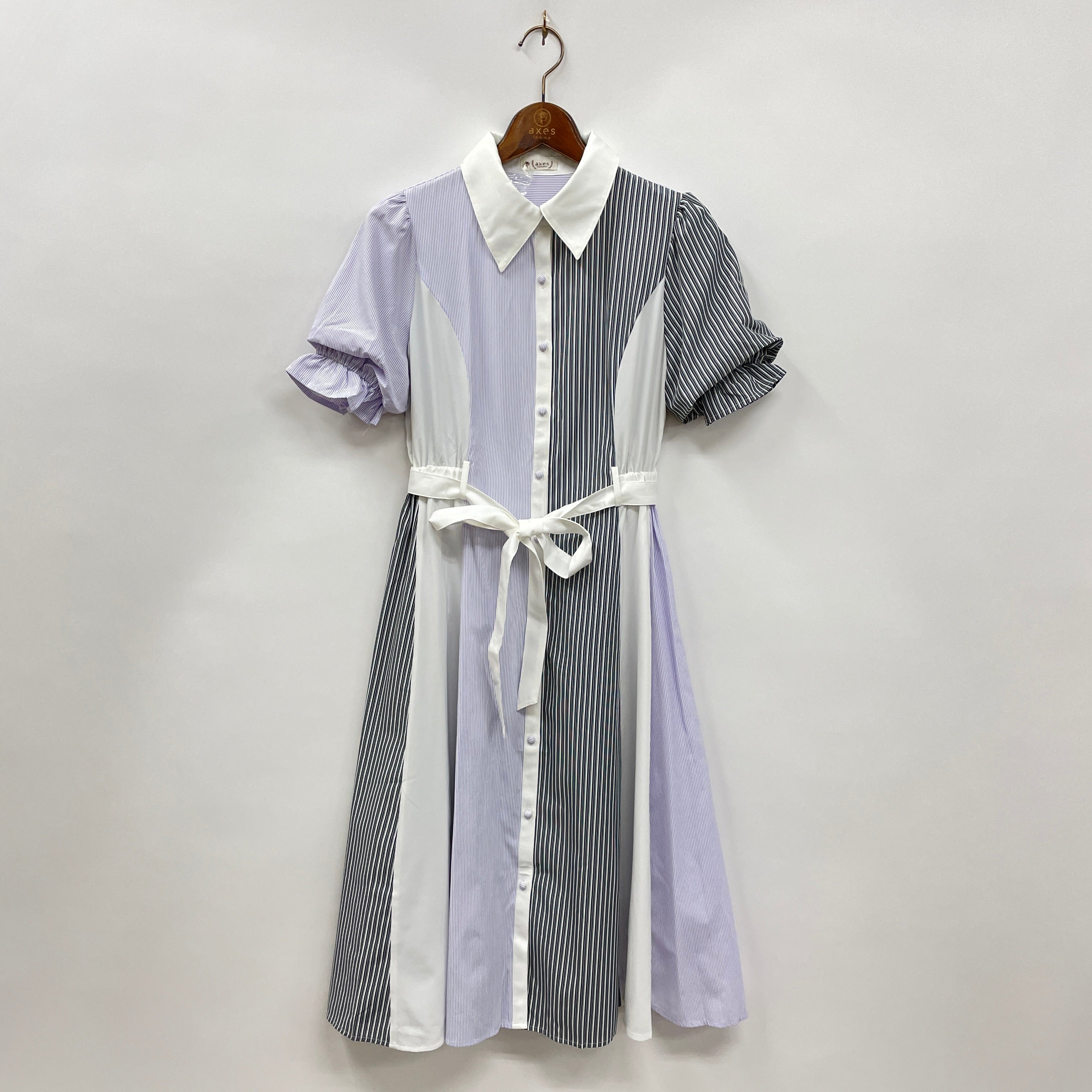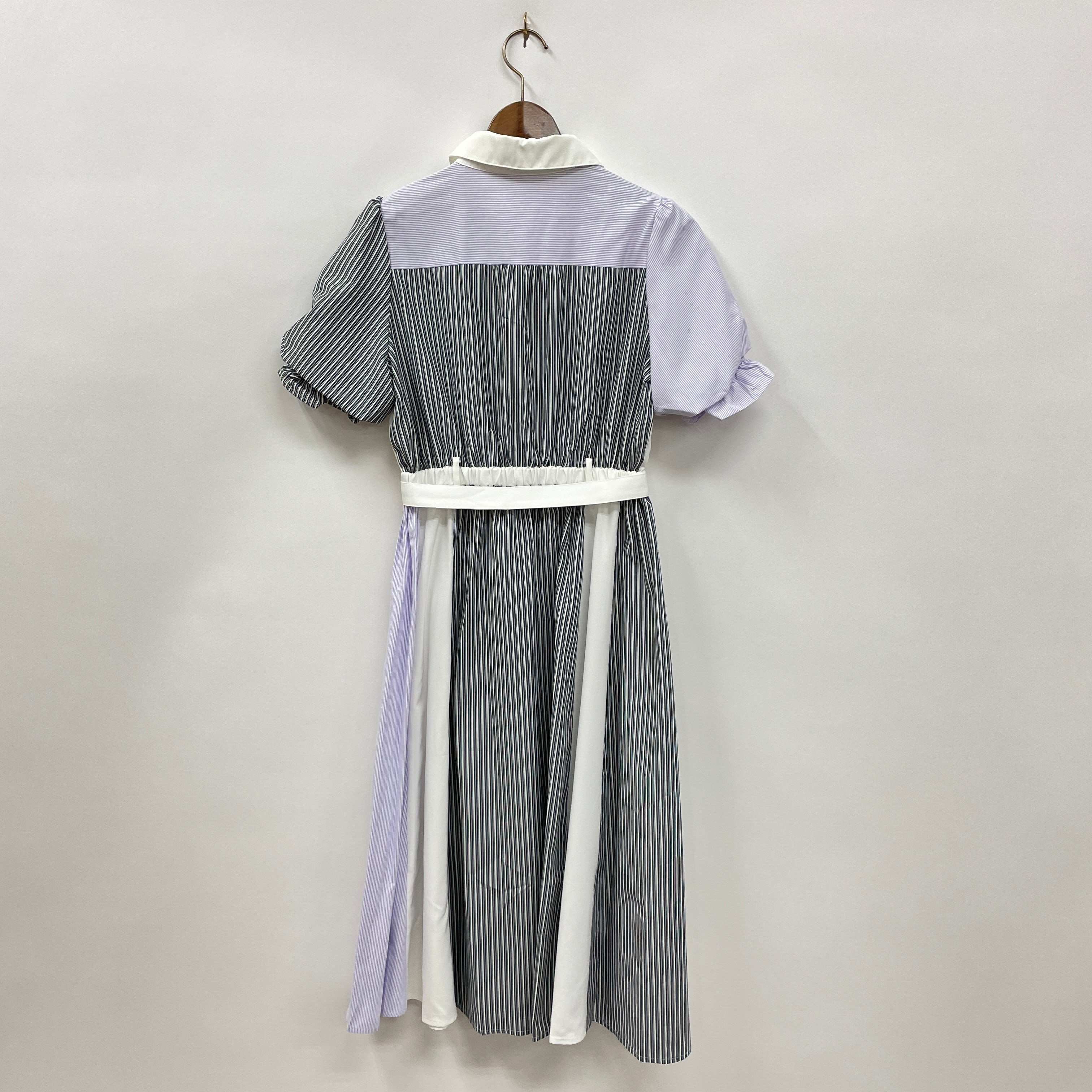 ストライプ×ストライプの配色シャツワンピースです。