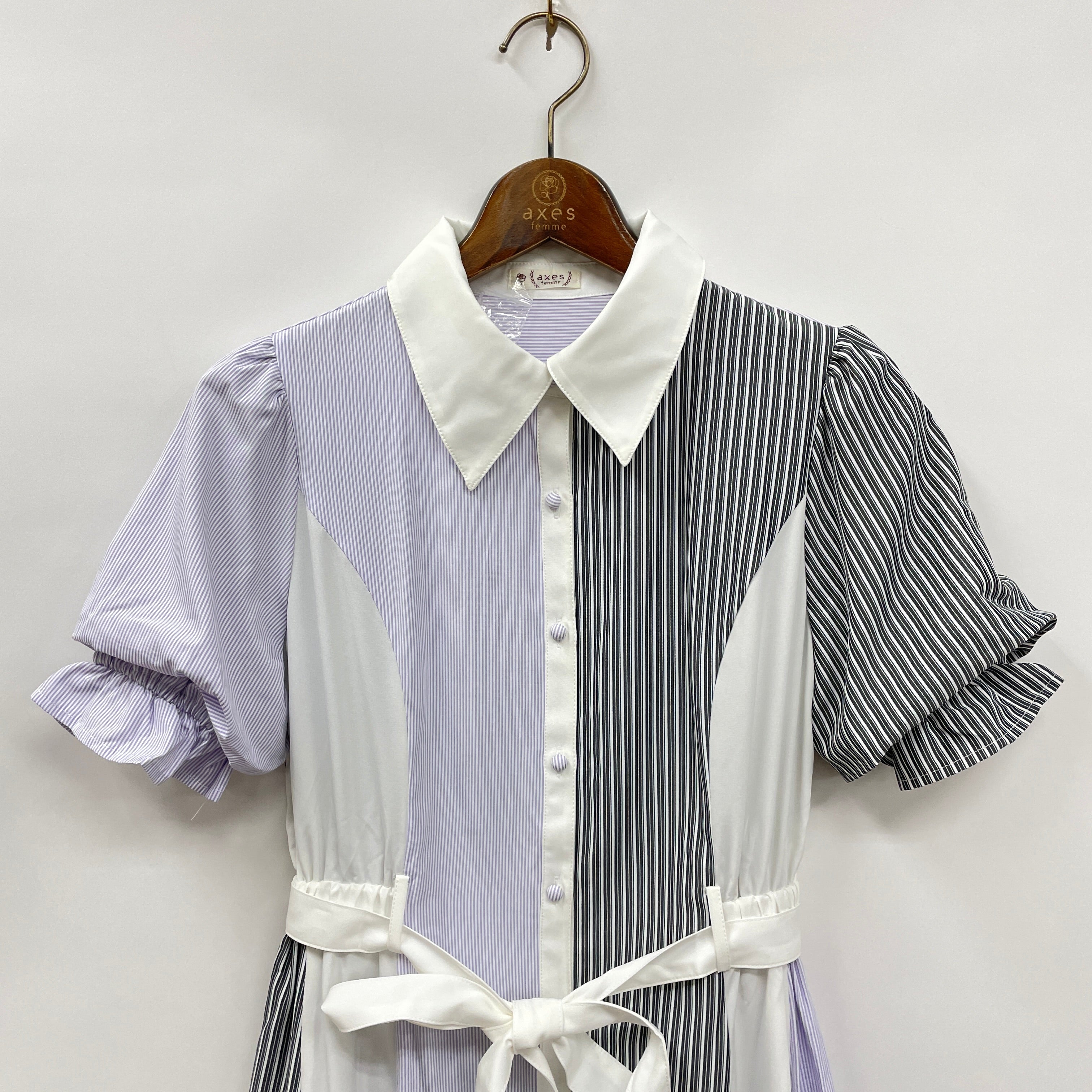 ストライプ切替配色シャツOP