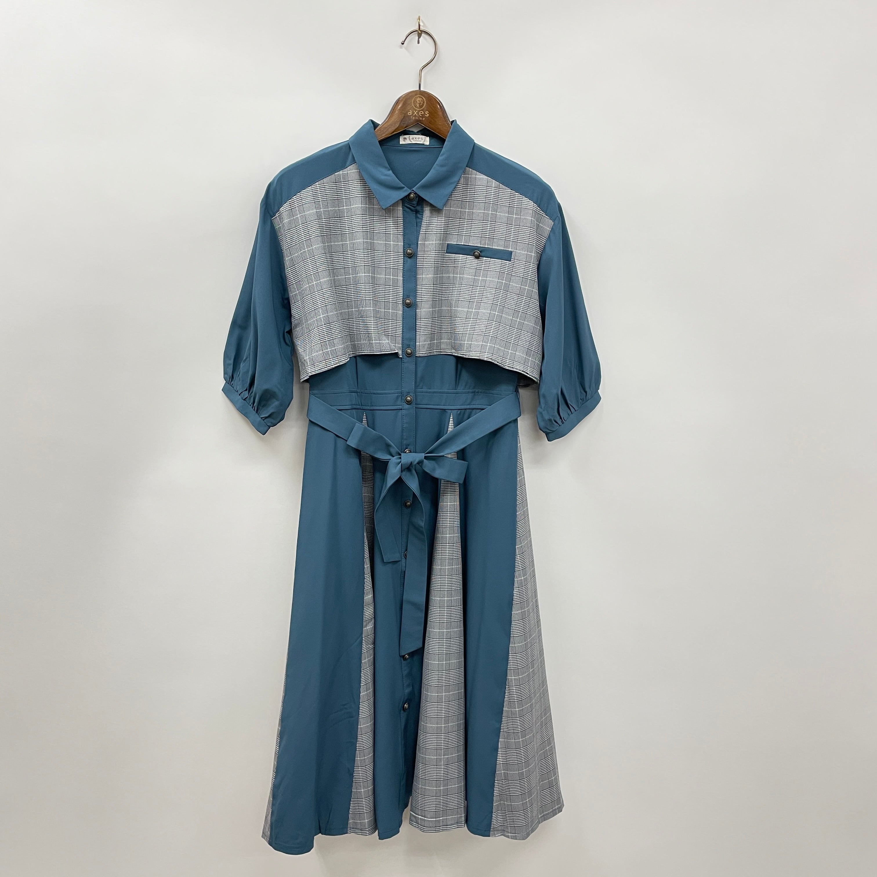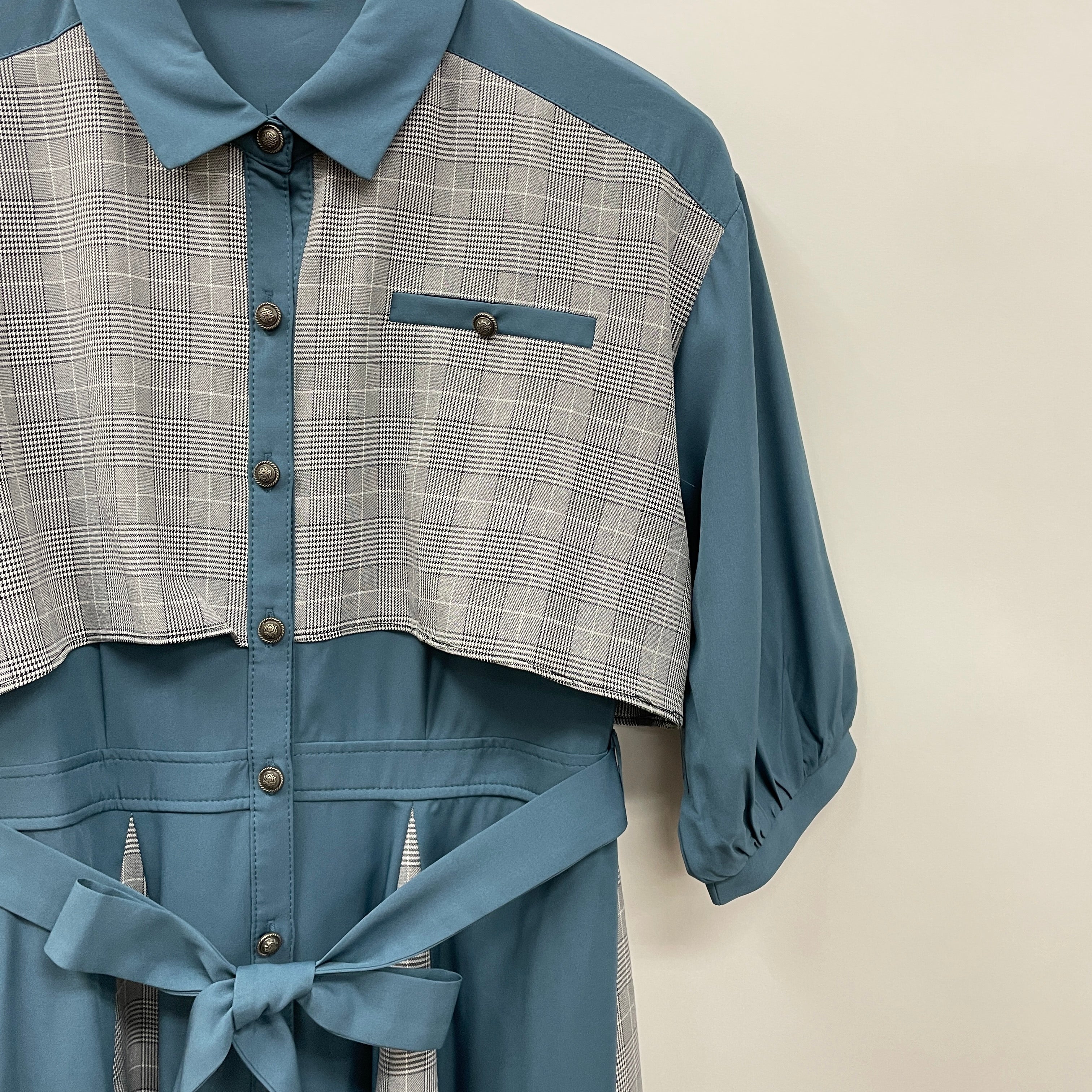 チェックと無地の切り替えがポイントです。春夏シーズンに着やすいさらっとした素材を使用しています。