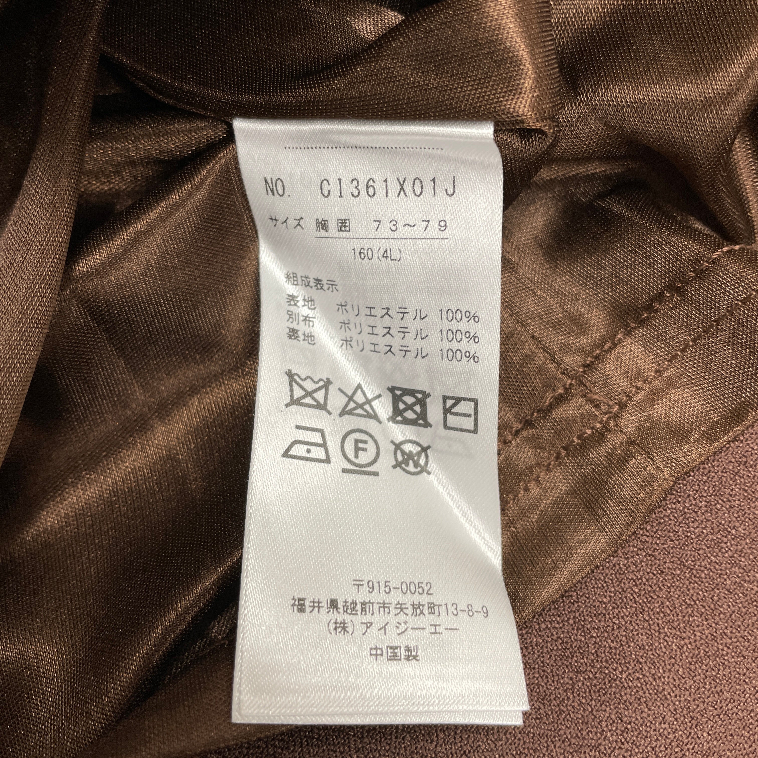 | サイズ | 着丈 | バスト | 肩幅 | ウエスト |