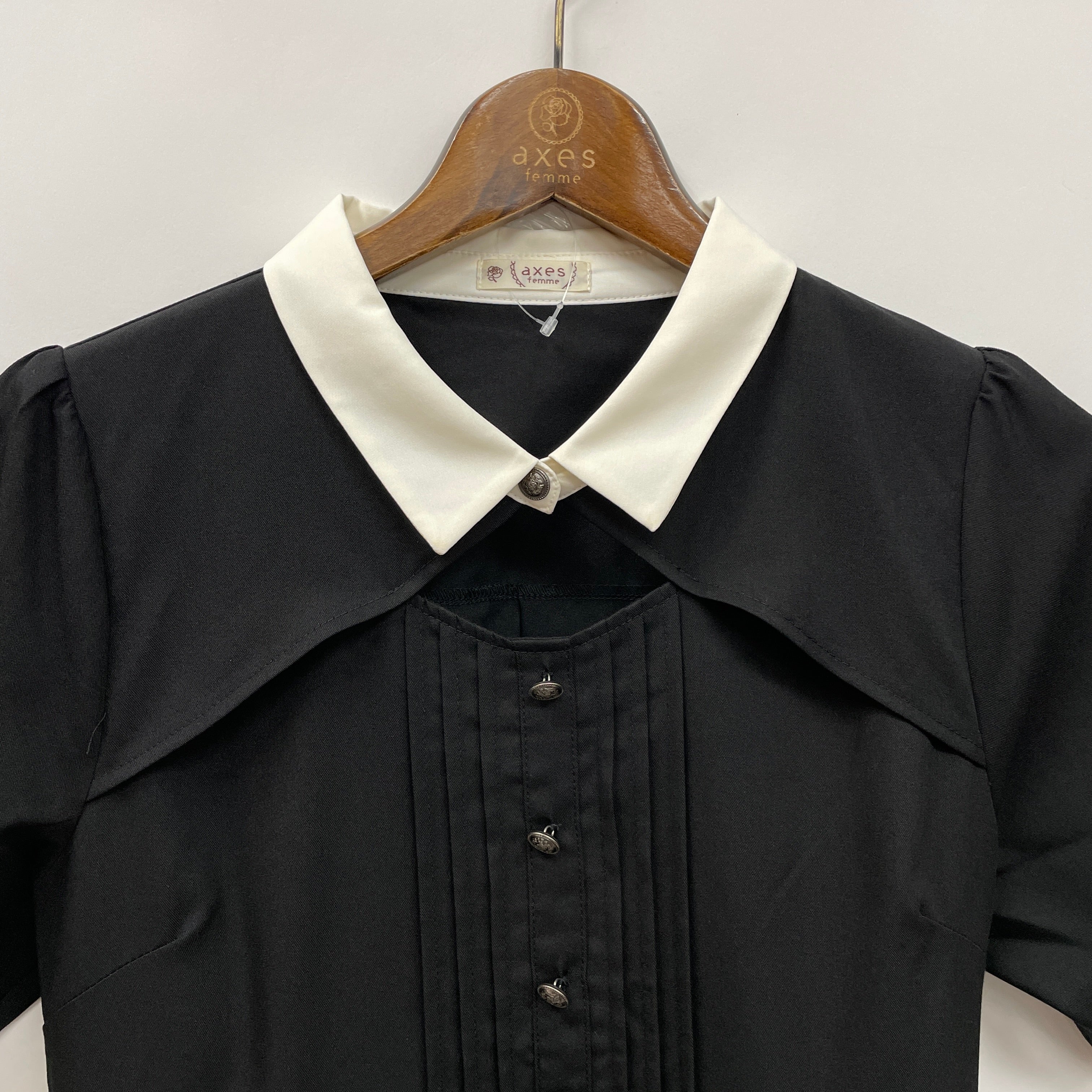 配色の襟付き×胸元のカッティングデザインがポイント。