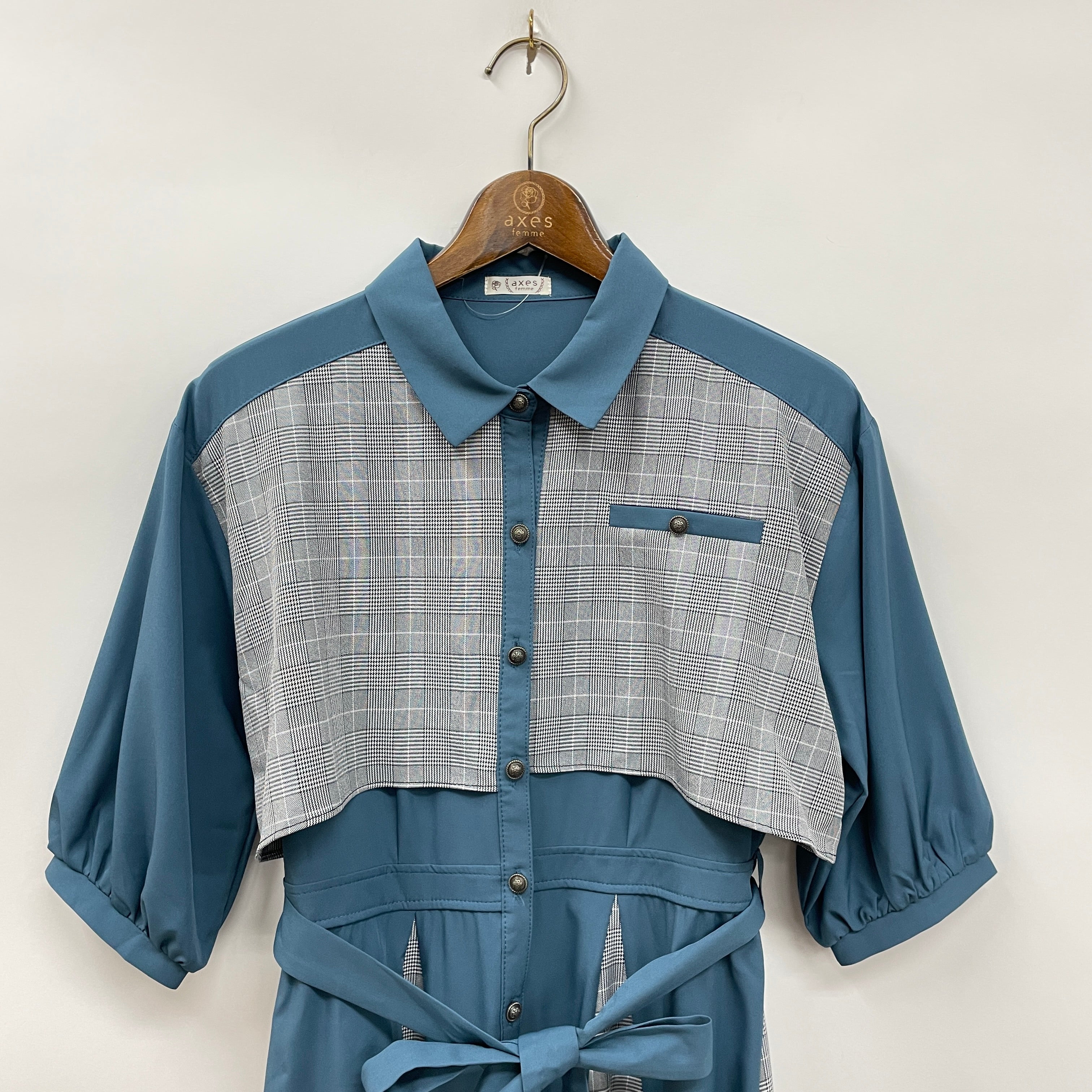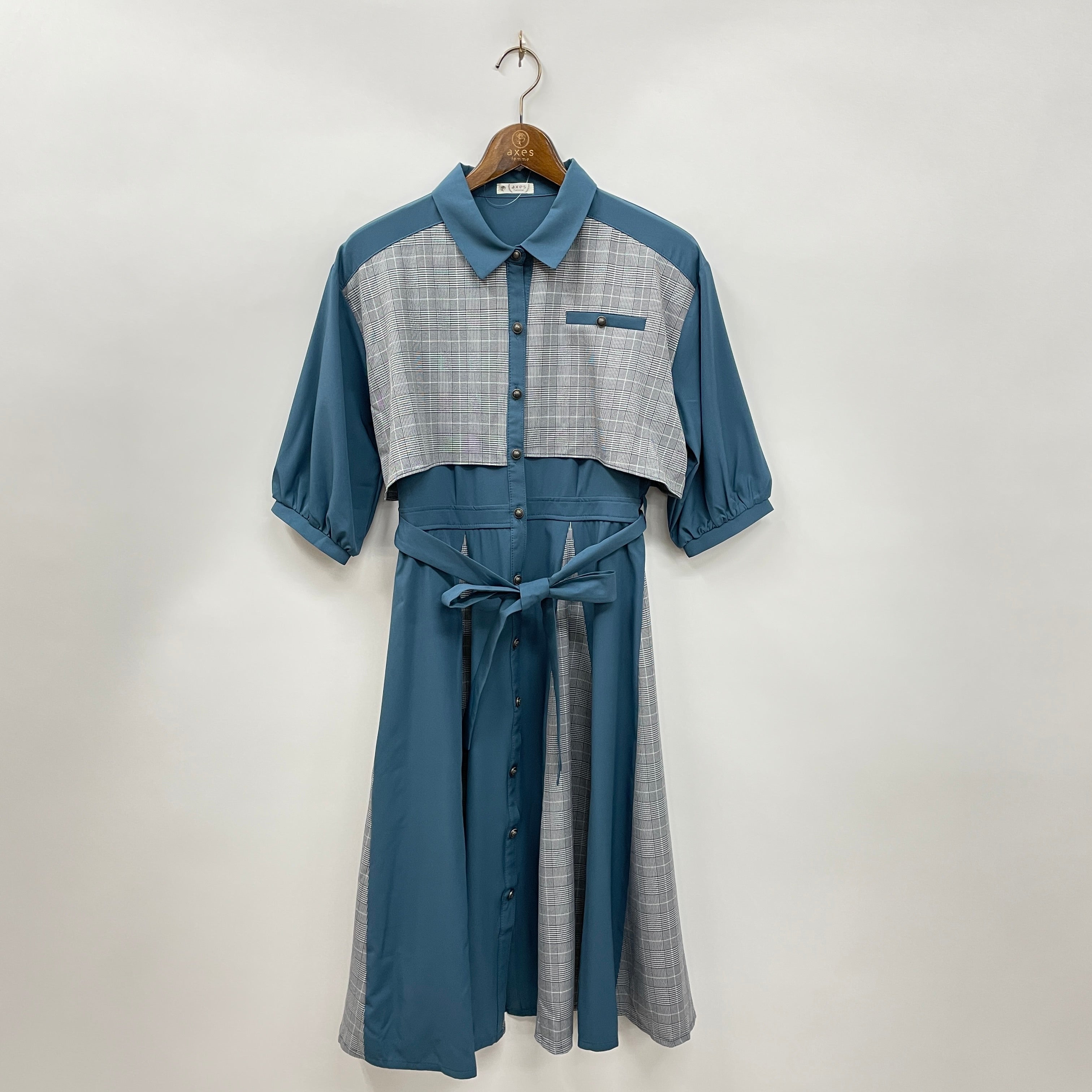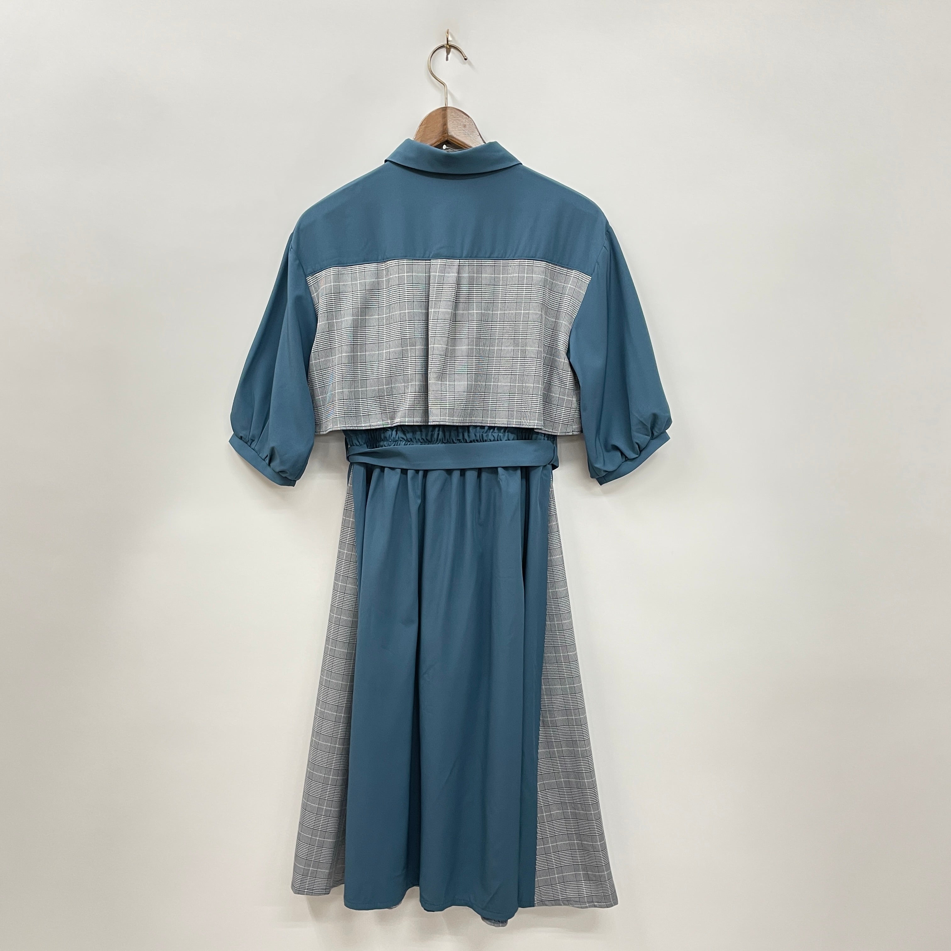 チェックと無地の切り替えがポイントです。春夏シーズンに着やすいさらっとした素材を使用しています。