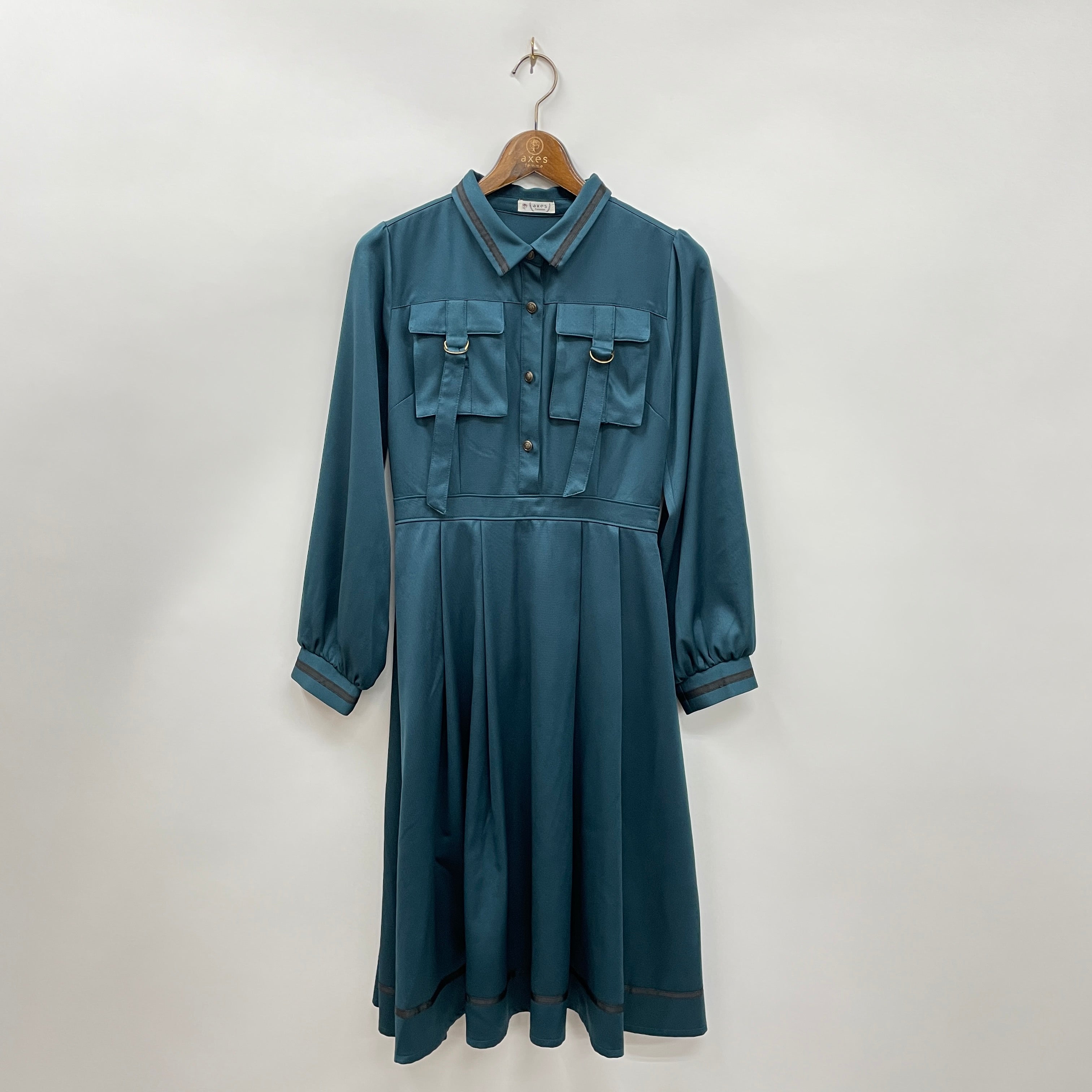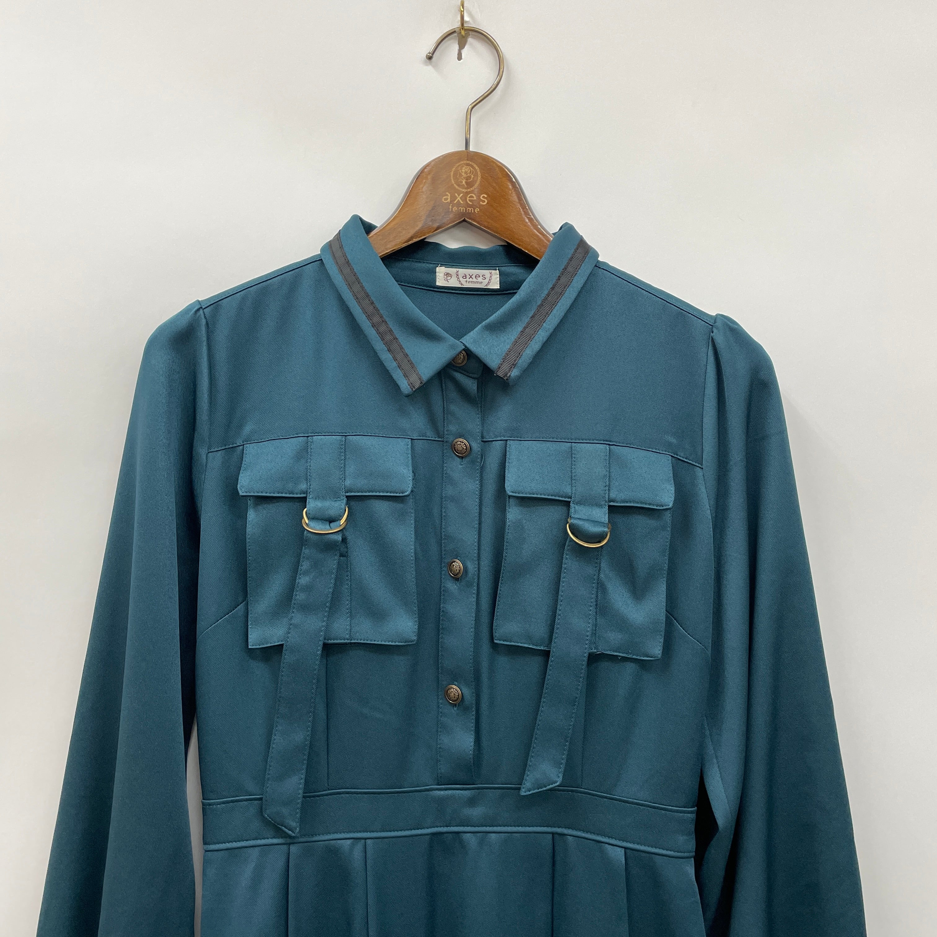 フロントのカーゴポケットデザインがポイントの、ミリタリーテイストのワンピースです。