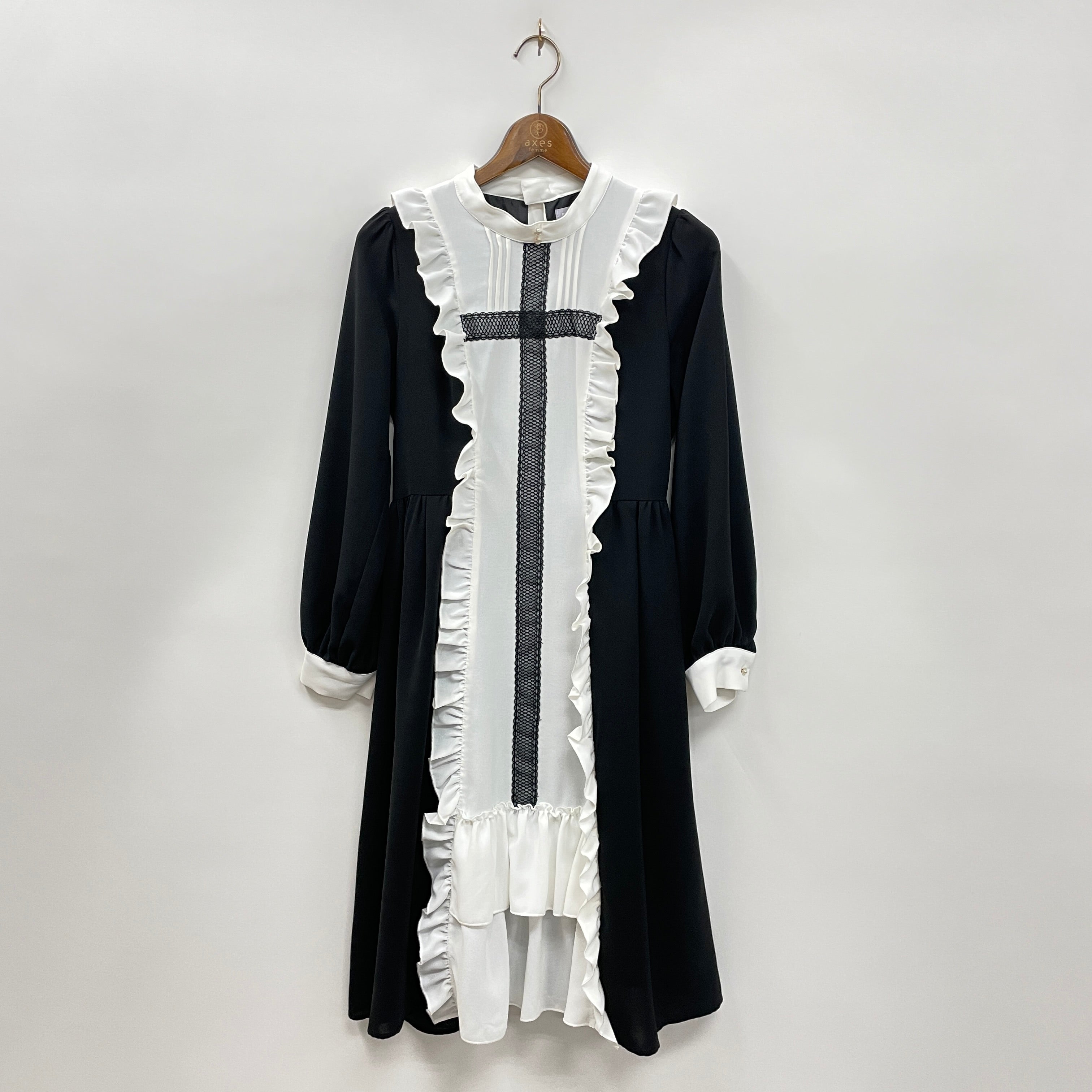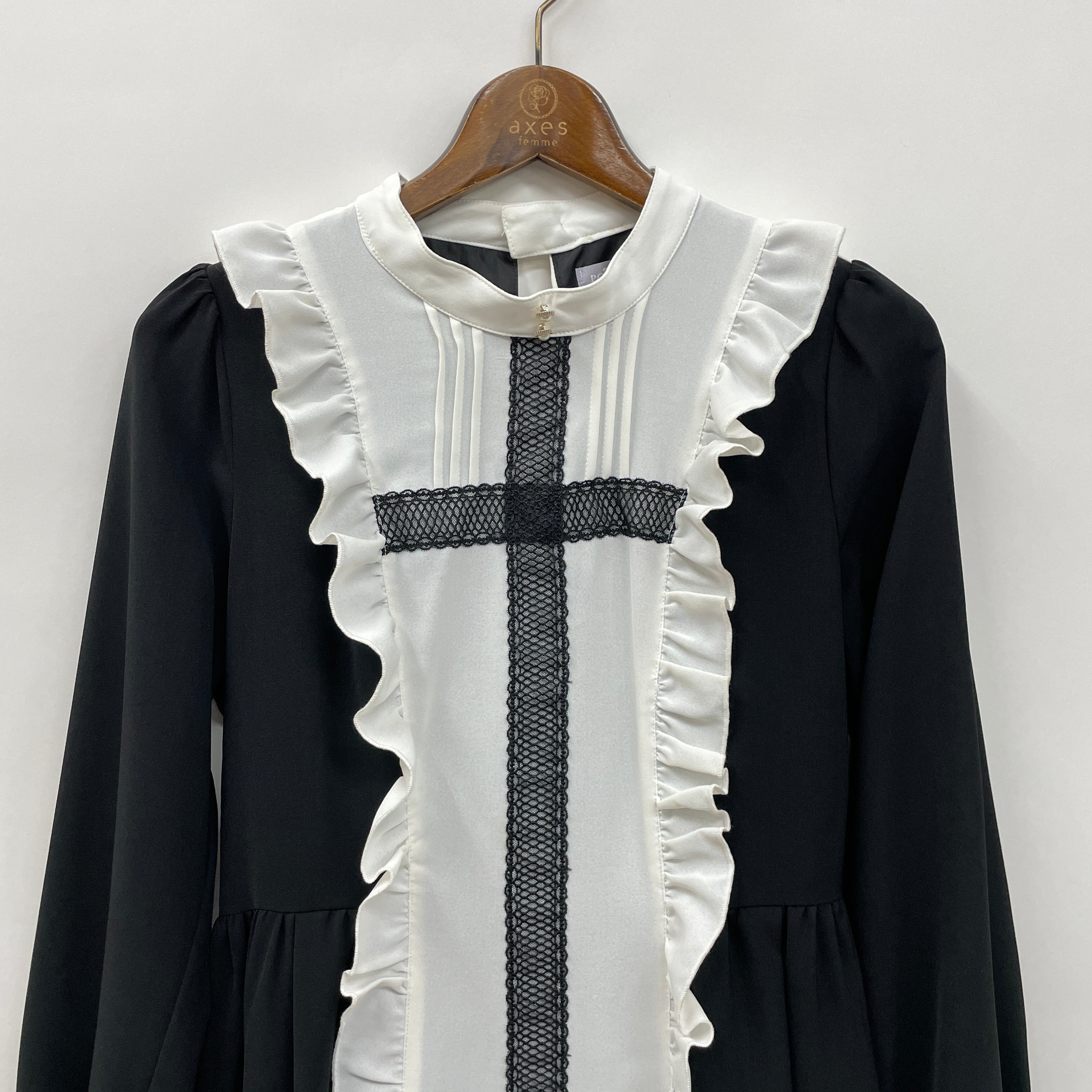 修道服をイメージしたワンピースにレースをクロスにあしらったアイテムです。