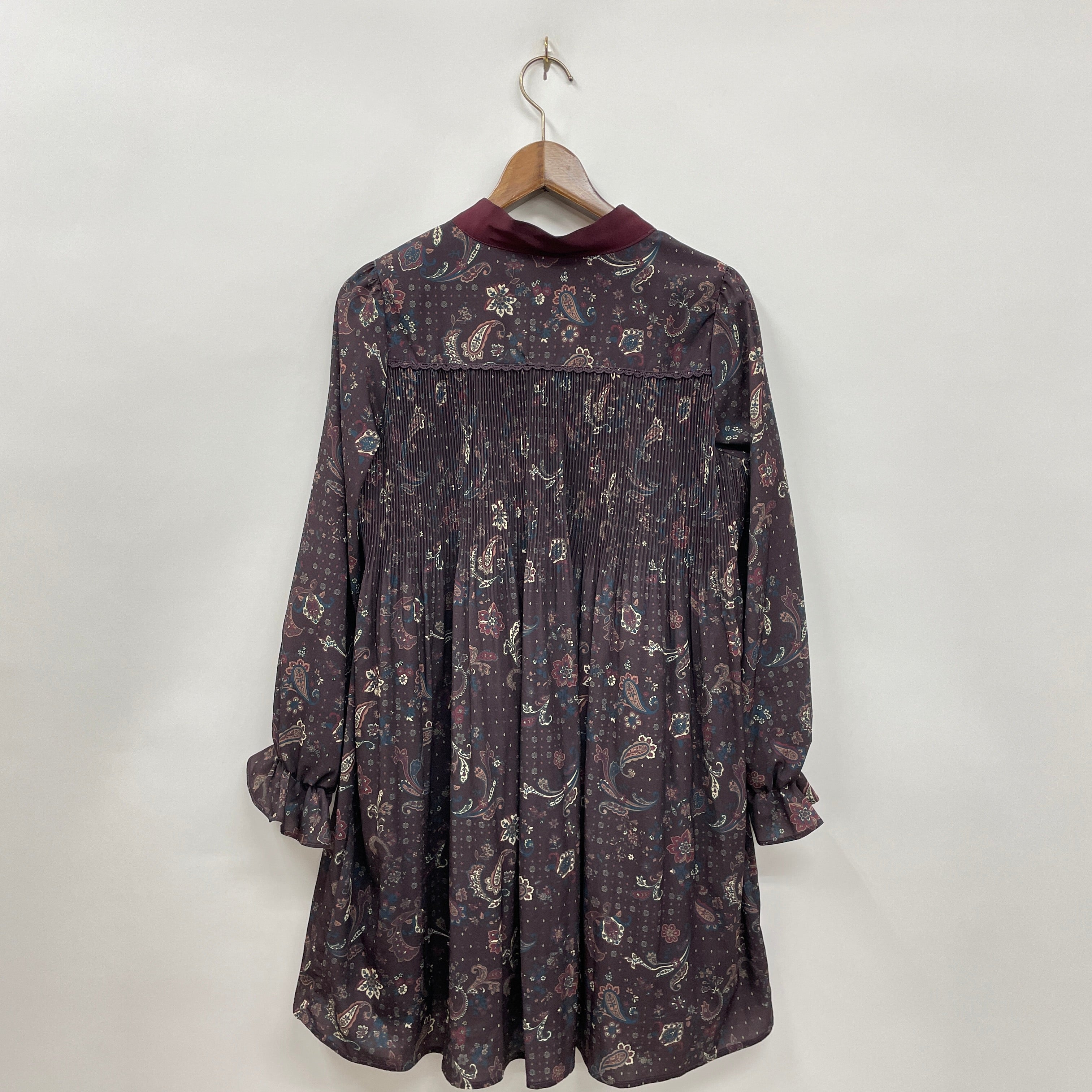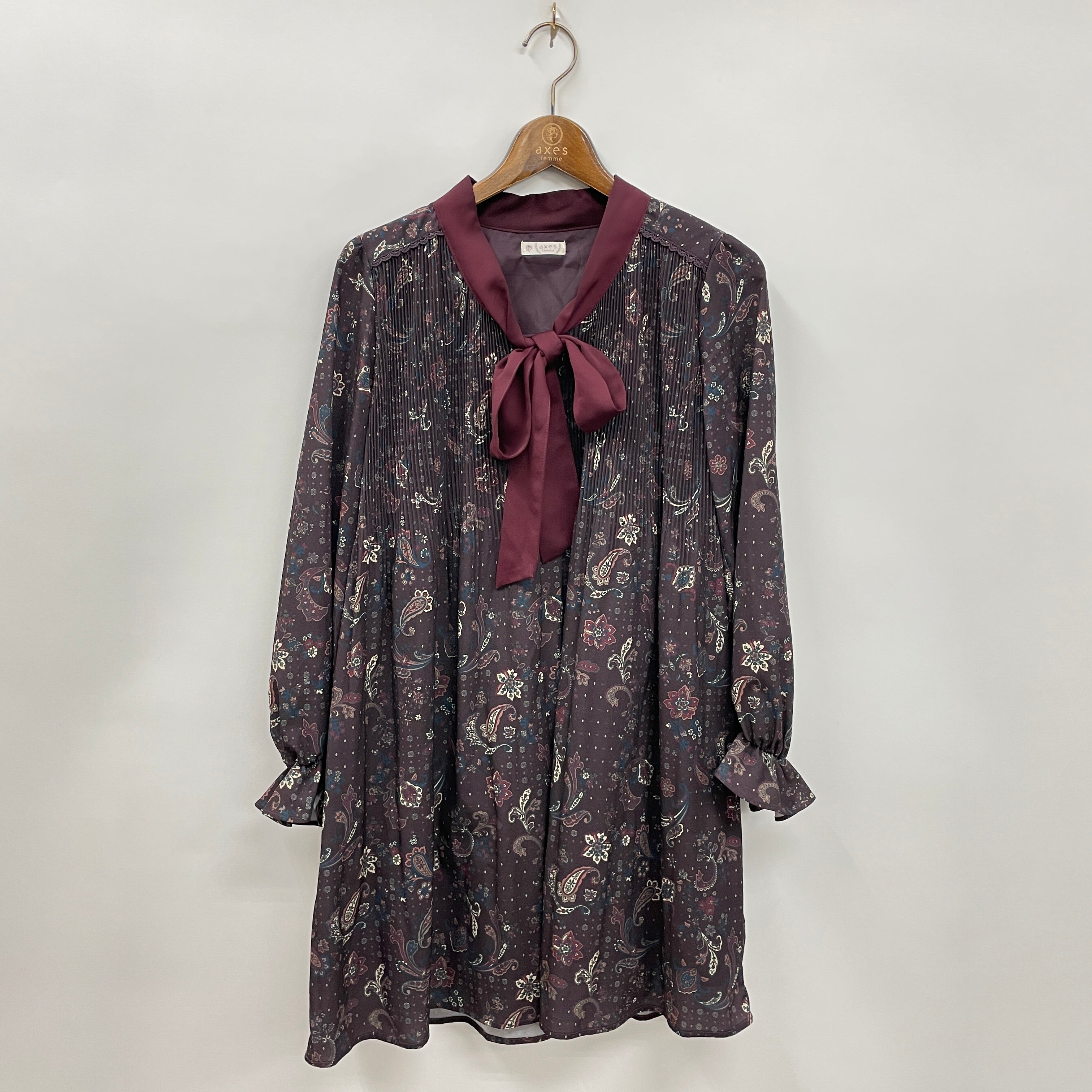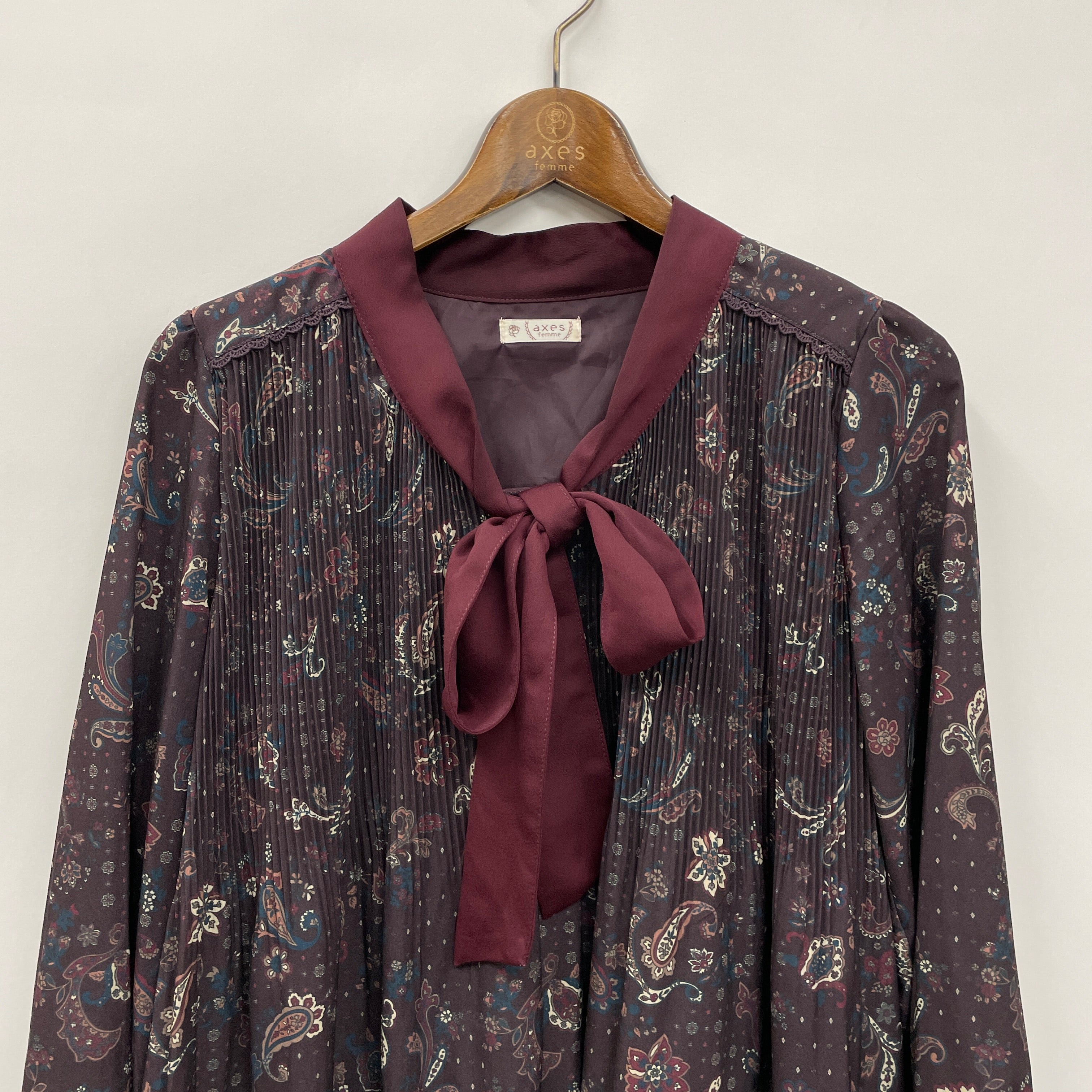 ボータイがポイントのチュニックです。レトロな配色のペイズリー柄がプリントされた身頃にはプリーツ加工がかかっています。パンツあわせがおすすめのアイテムです。