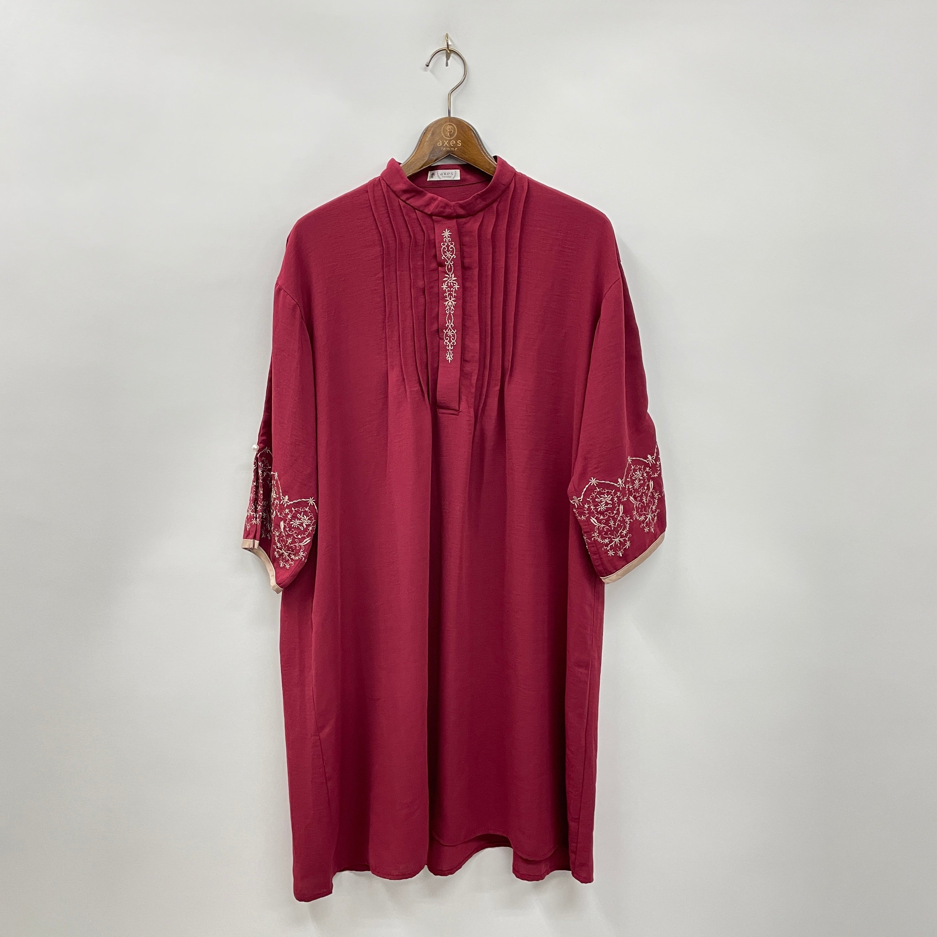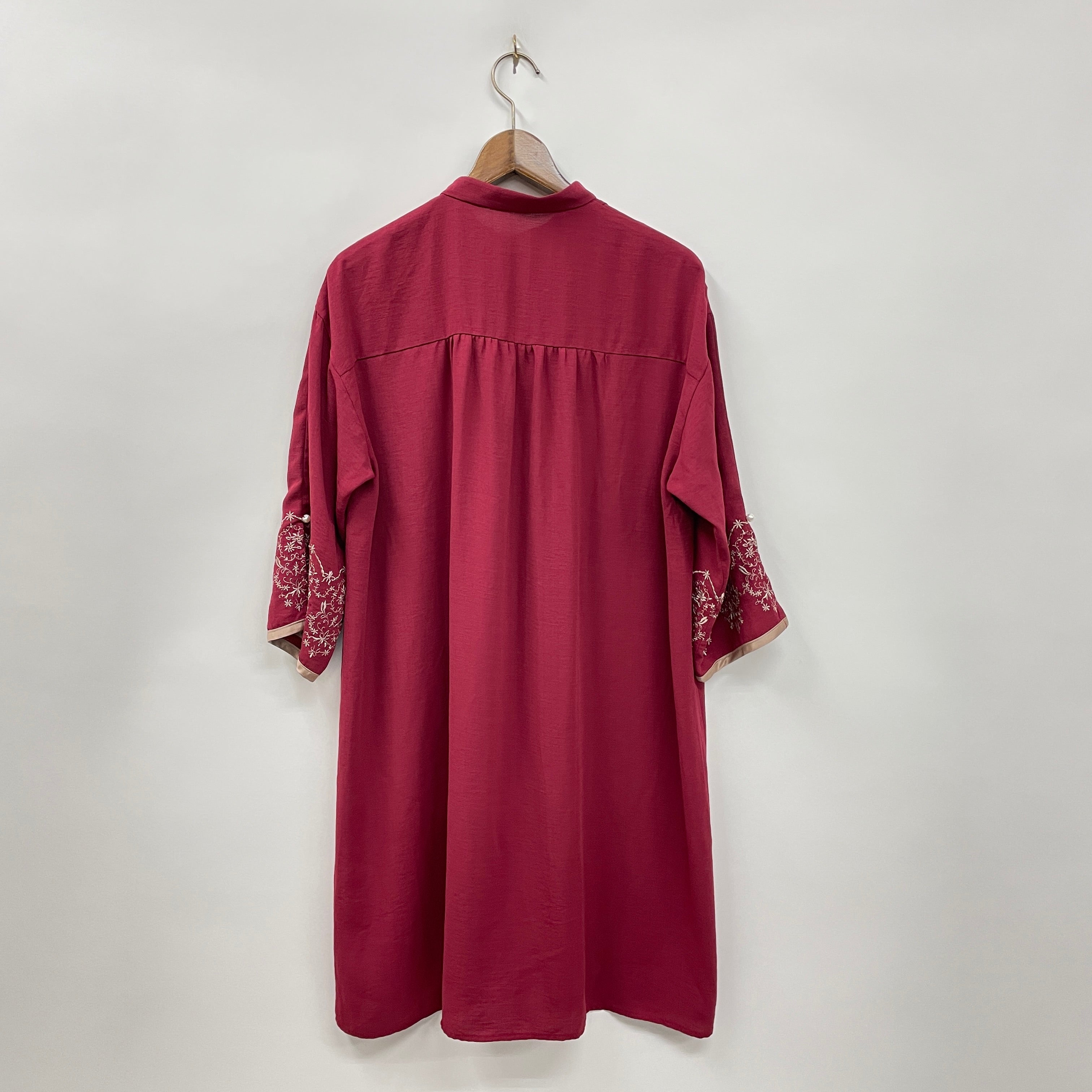 エスニック風な刺繍やスリット使いがポイントのシャツワンピースです。