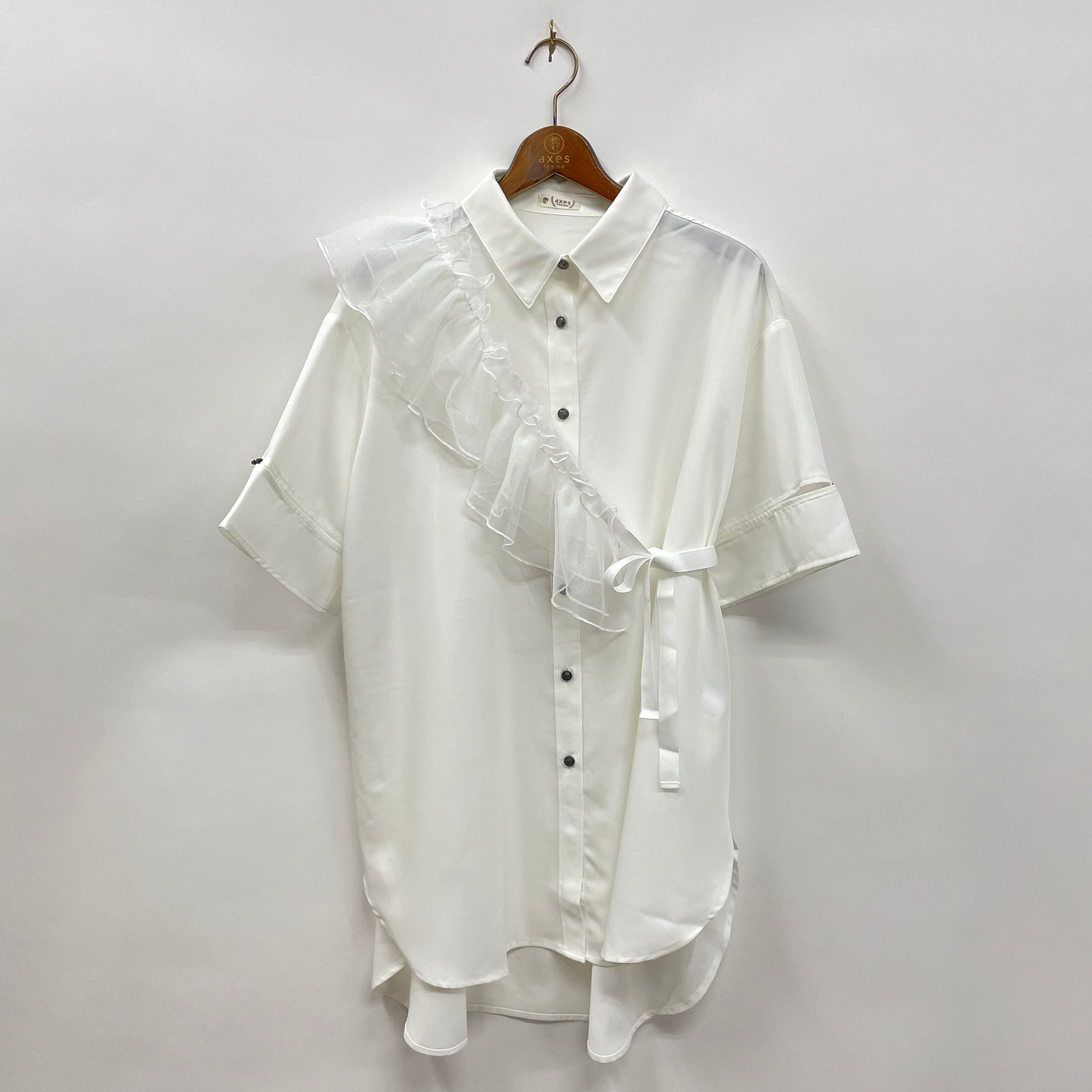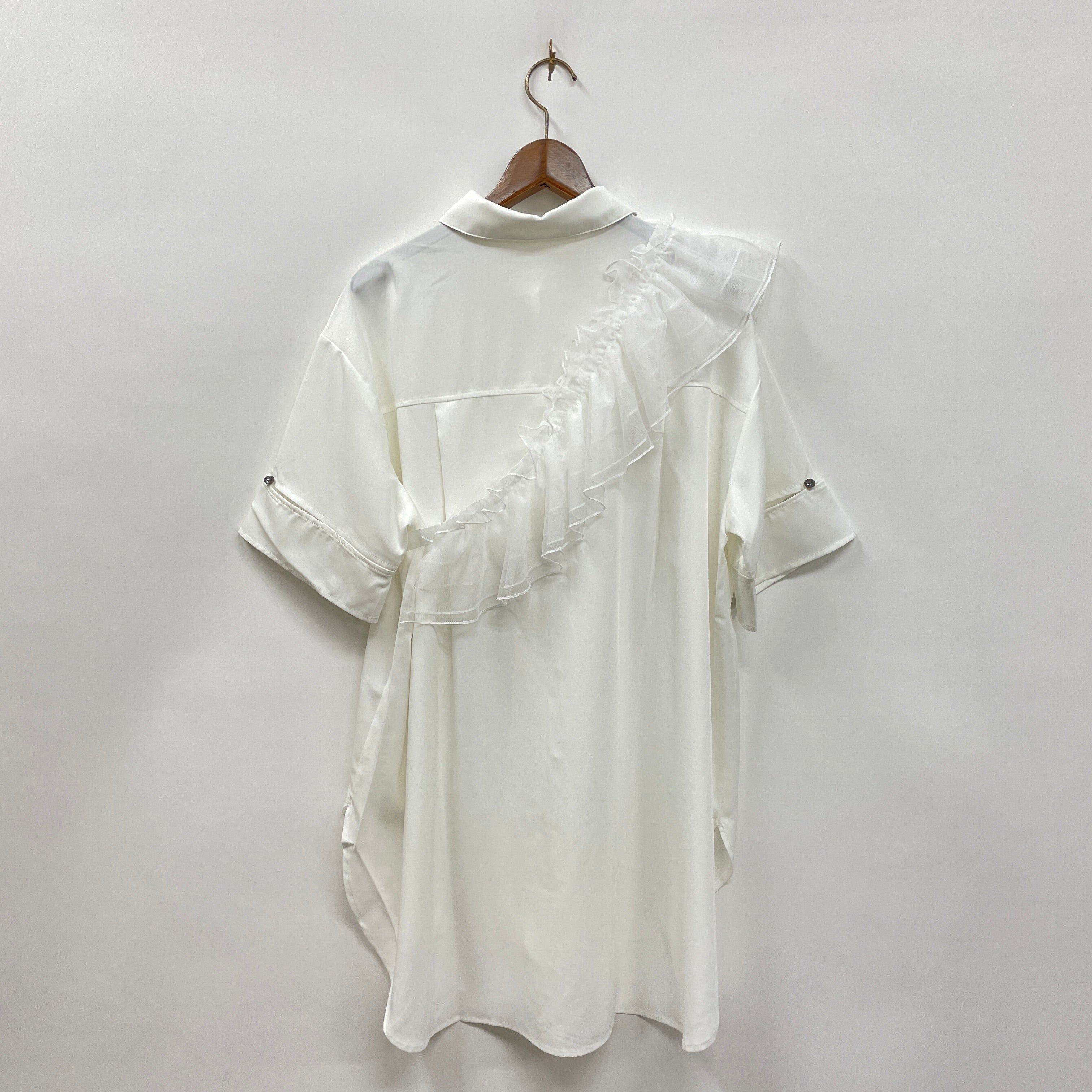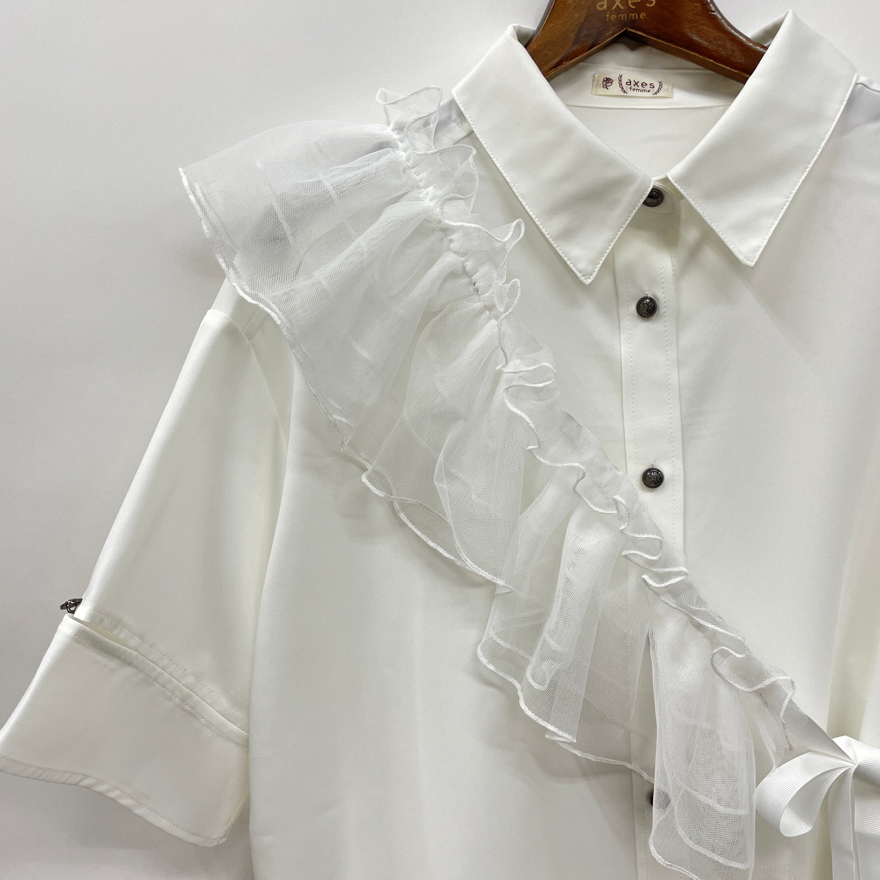 チュールフリルカラー付シャツ