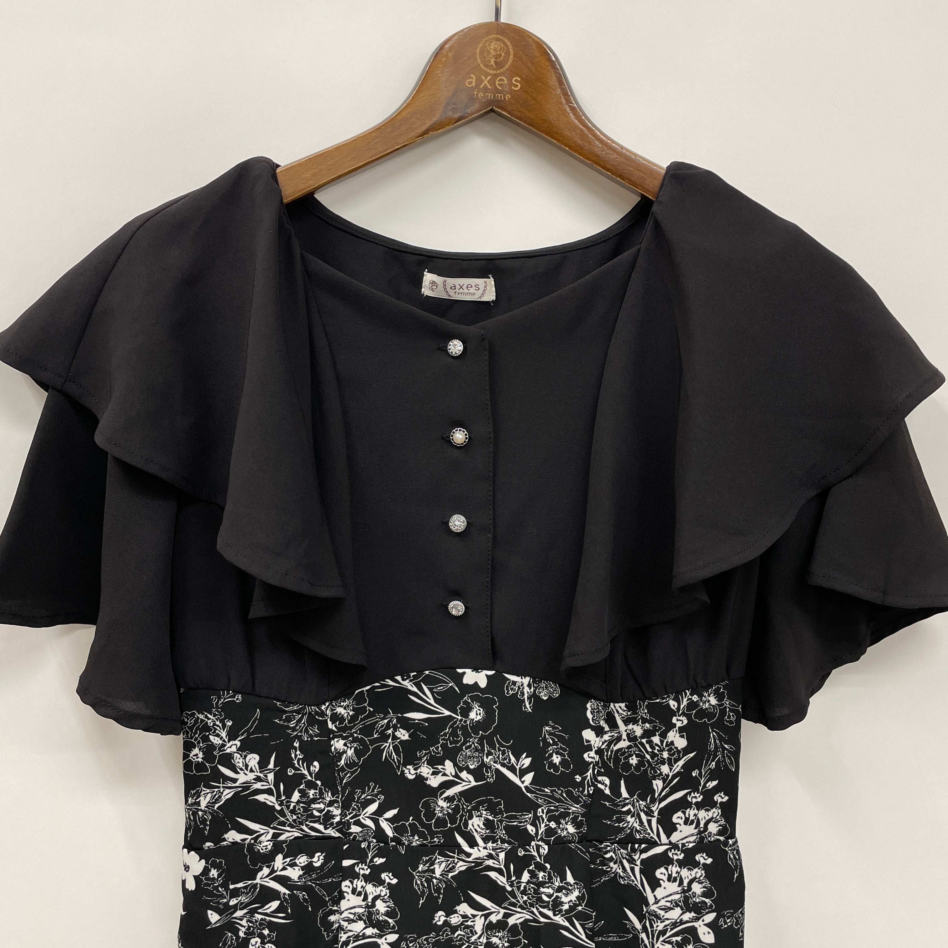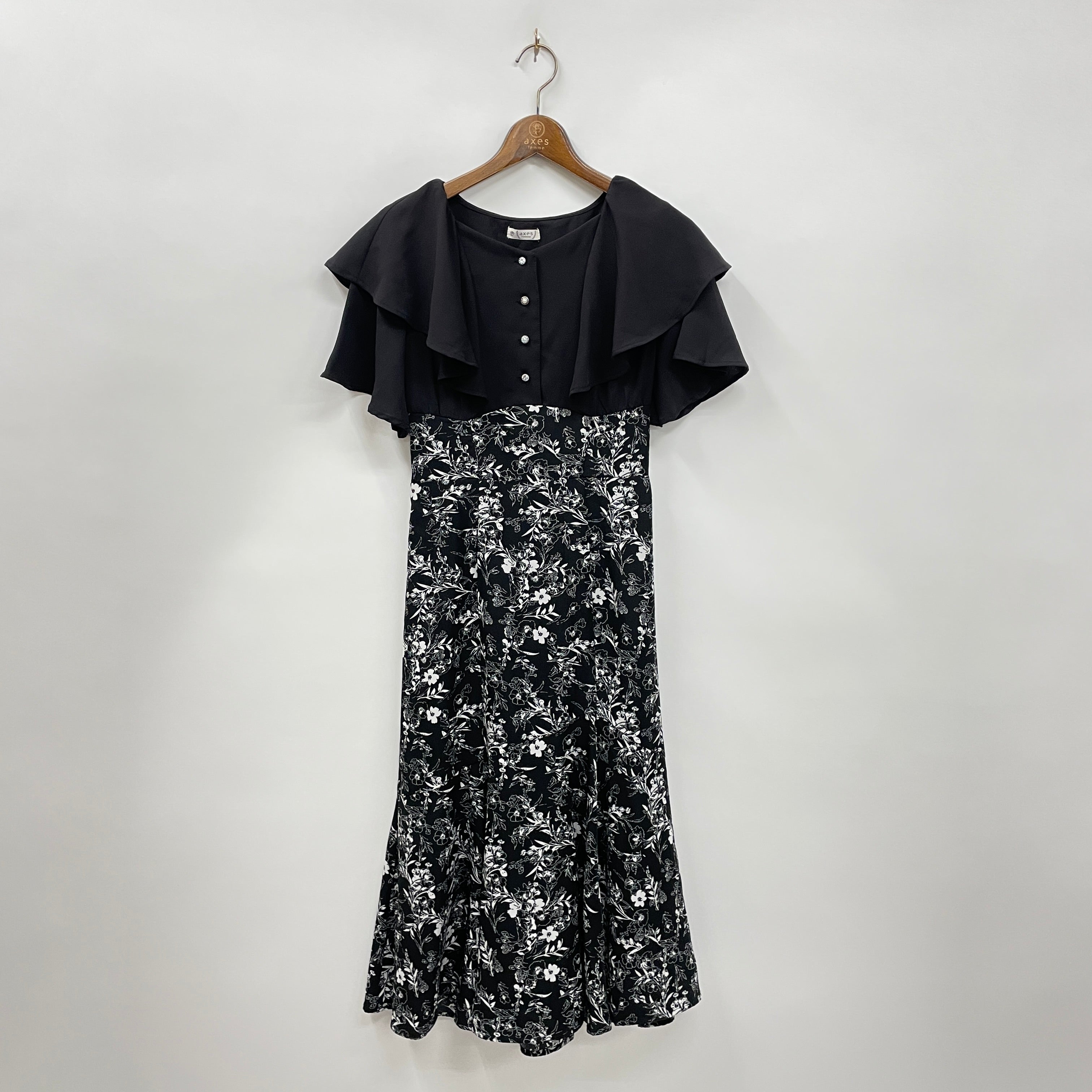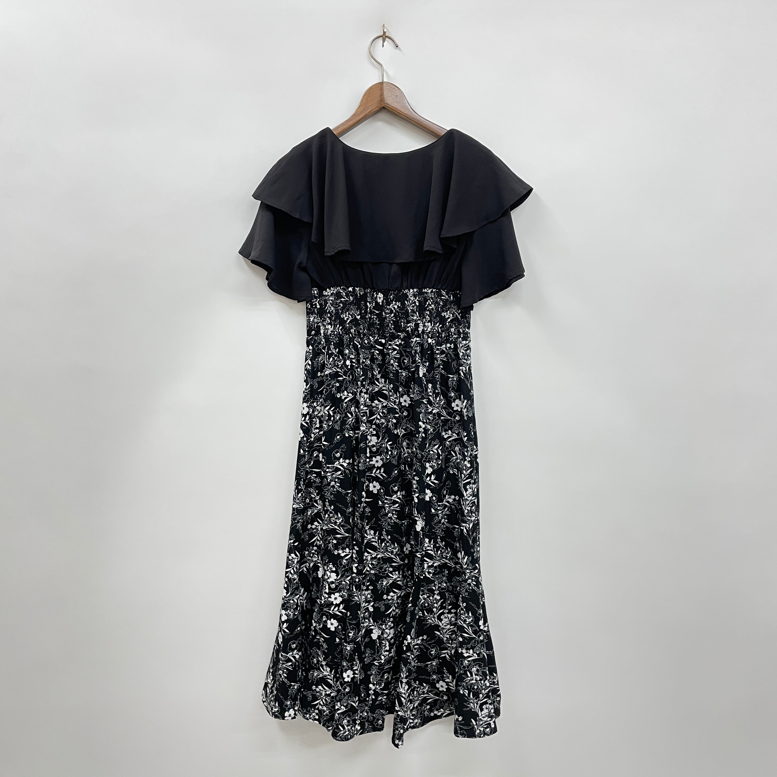 無地×シンプル花柄合わせのドッキングワンピースです。