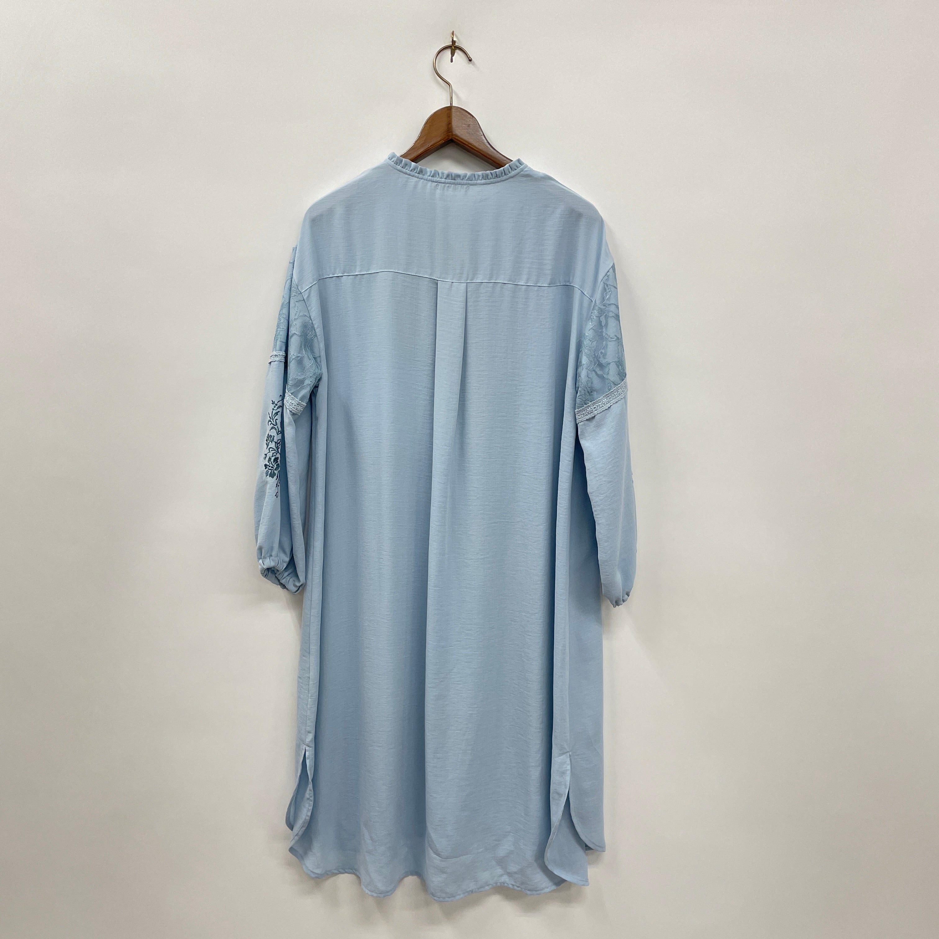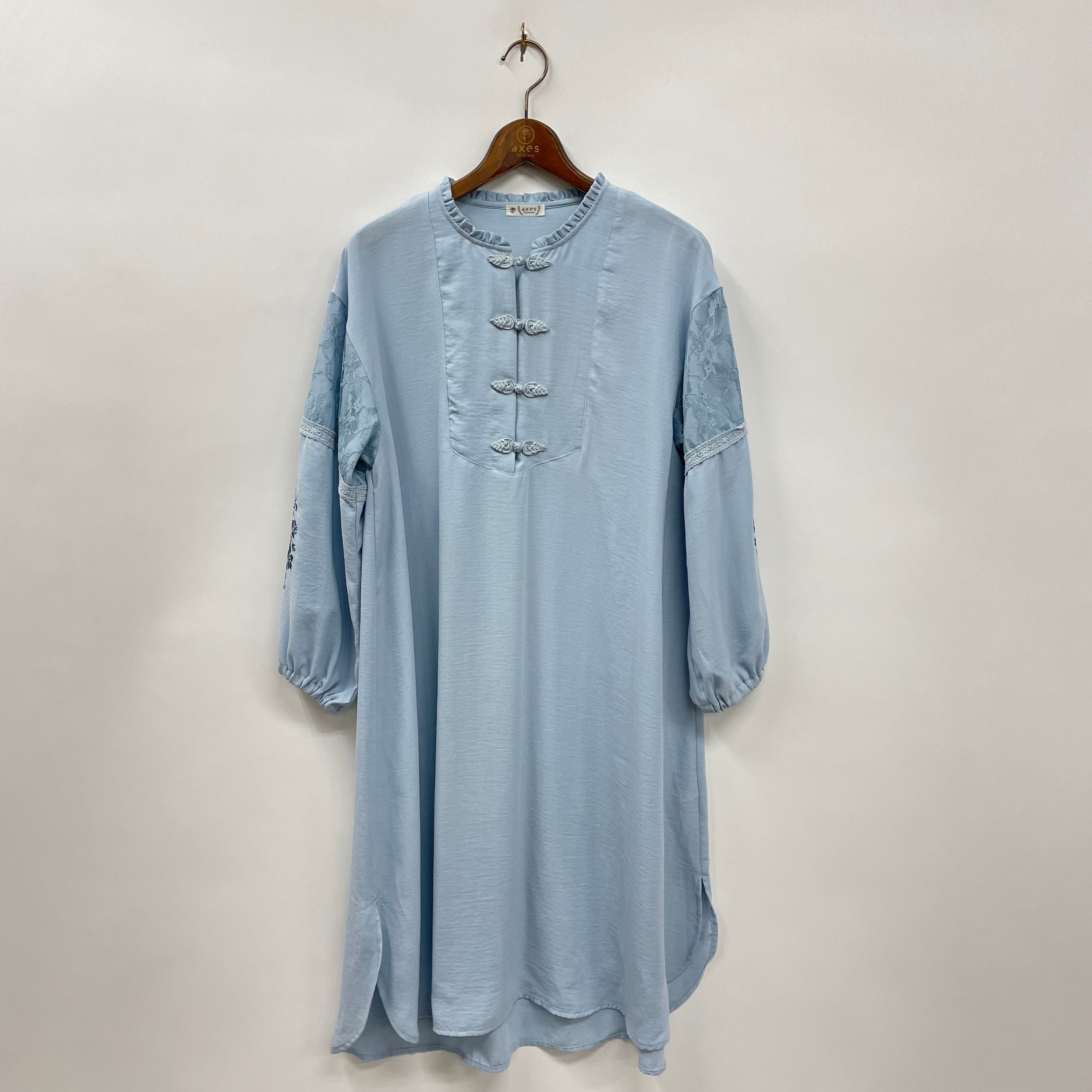 華やかな袖刺繍とチャイナ釦デザインがポイントのワンピースです。