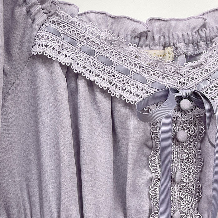 レースやティアードデザインをあしらったエンパイアドレスの様なロマンティックなワンピースです。