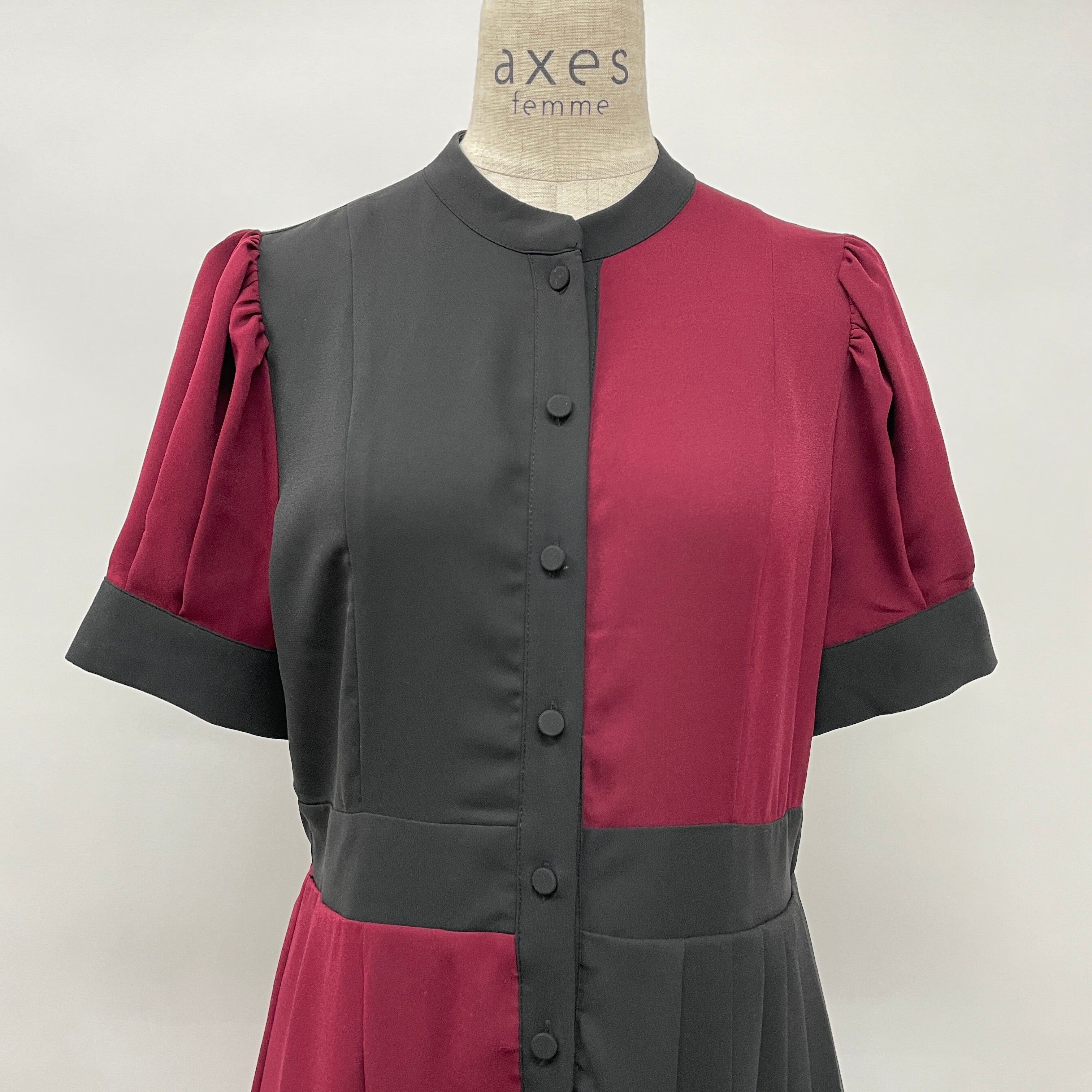 はっきりとしたバイカラーがポイントになったワンピースです。