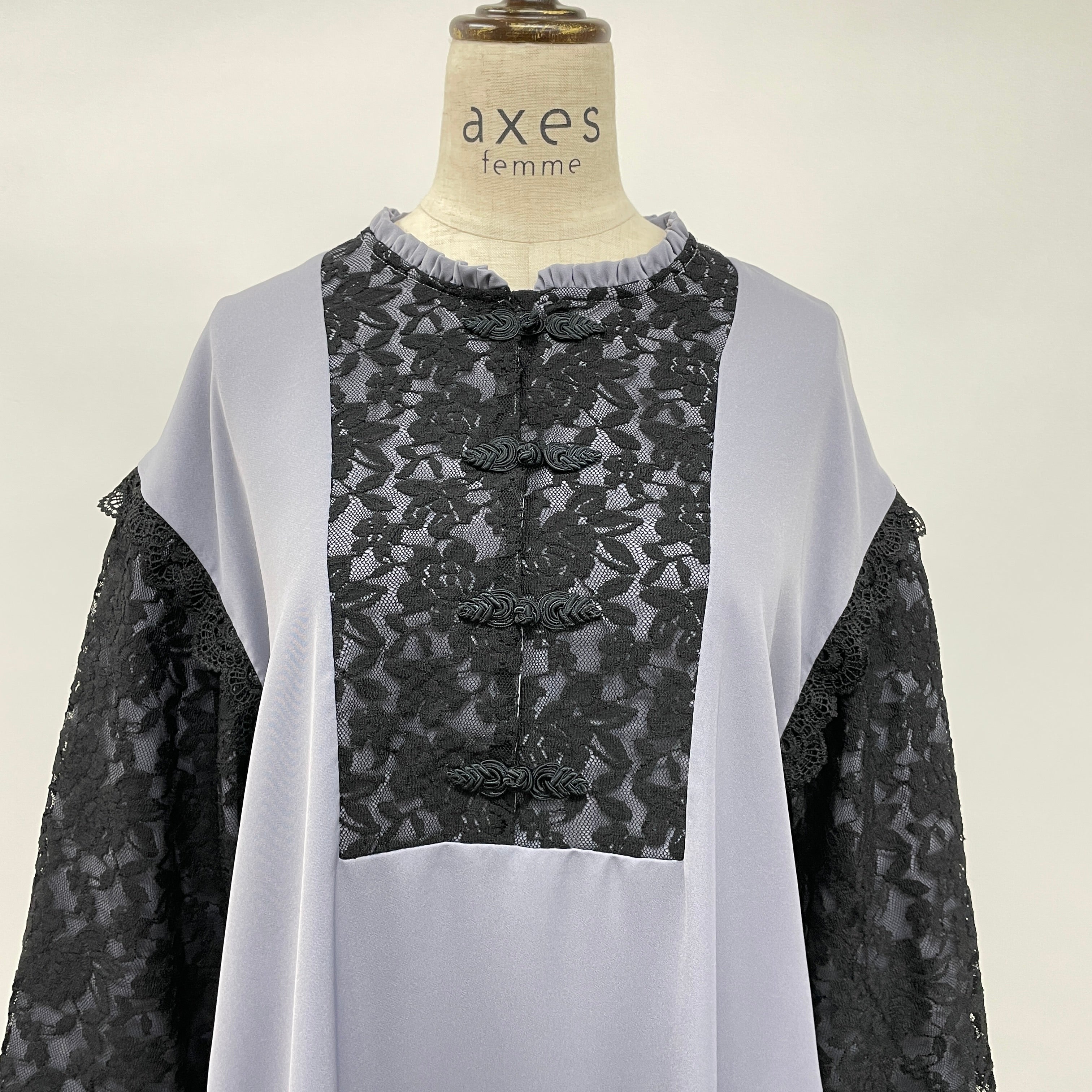 ただ楽ちんなだけではなく、バランスを引き締めるため、配色に黒レースをフロントと袖に重ね、大人っぽくシックな印象に。