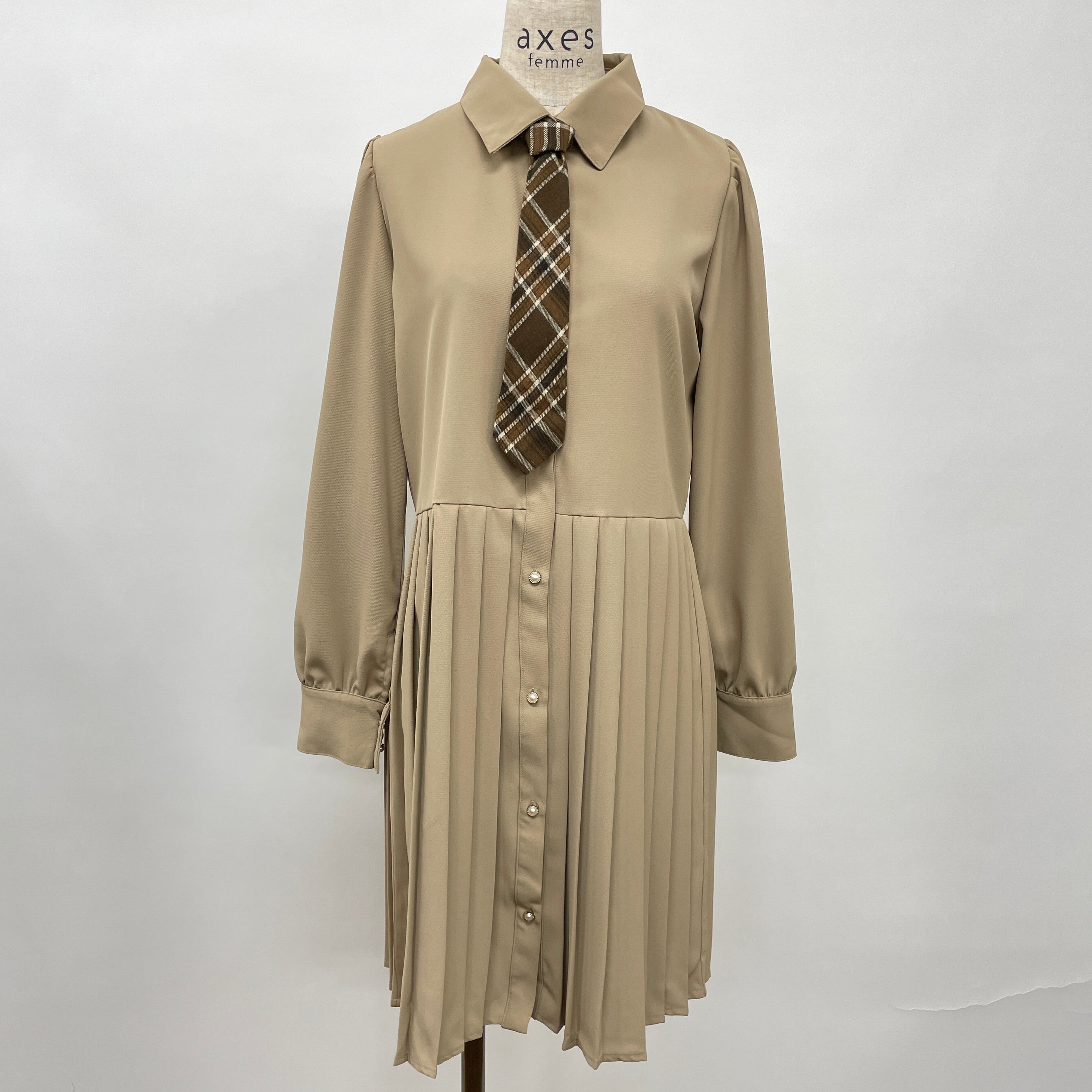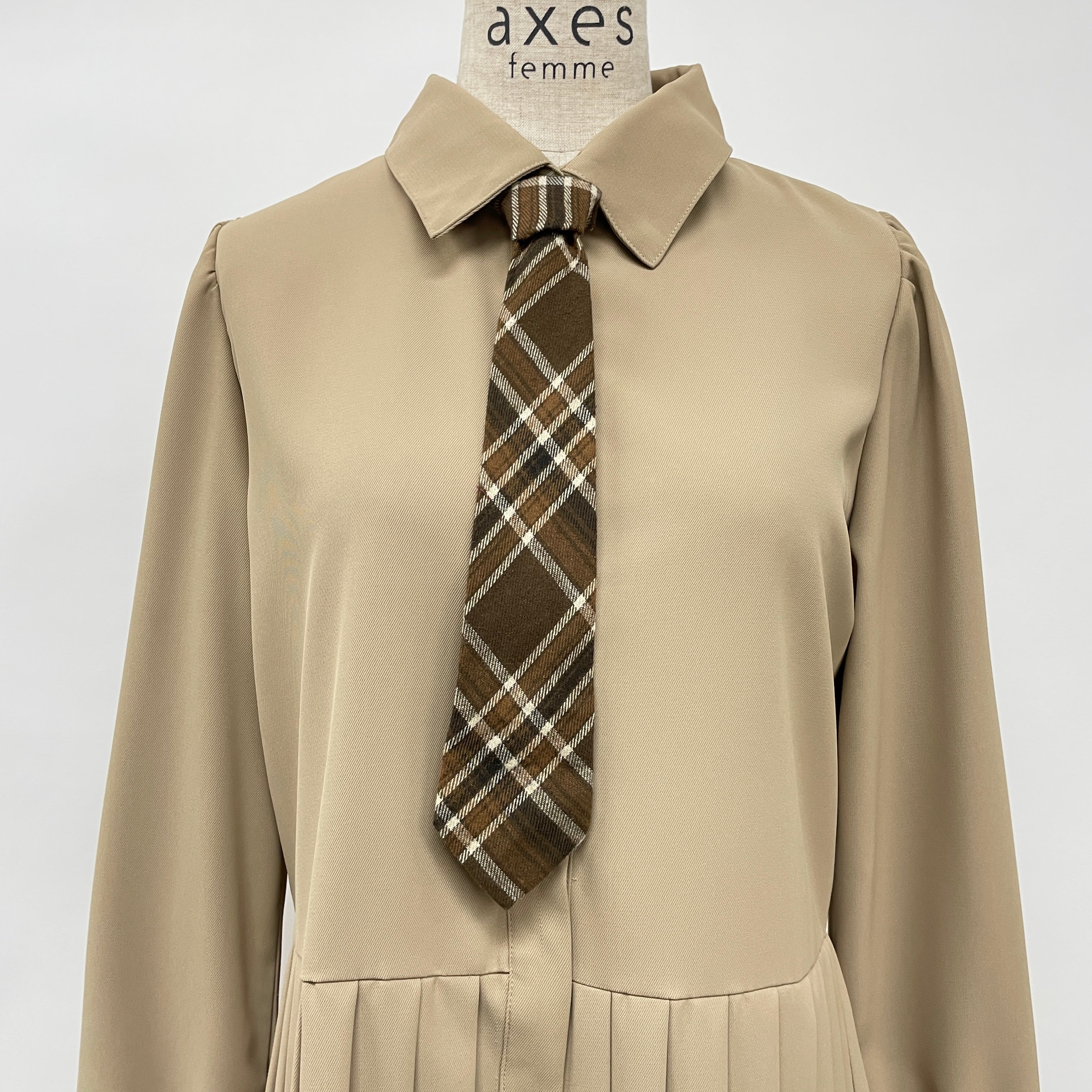 釦で簡単に取り外しが出来るチェック柄ネクタイがポイントのワンピースです。