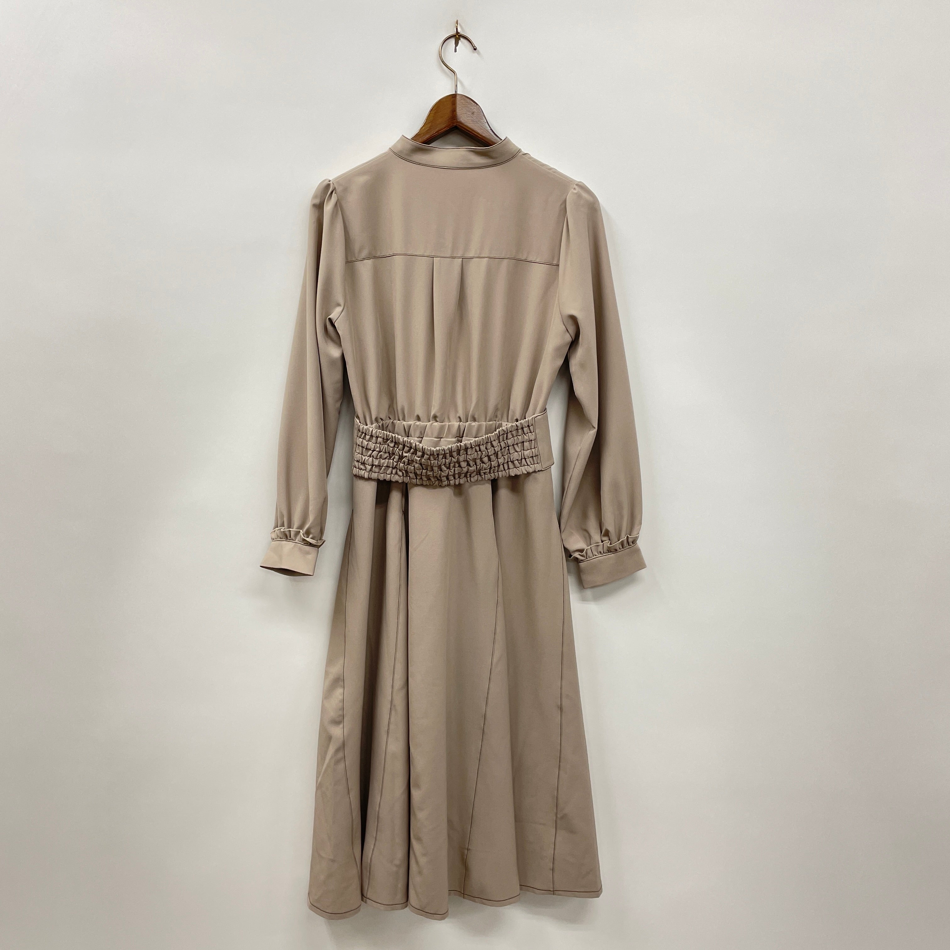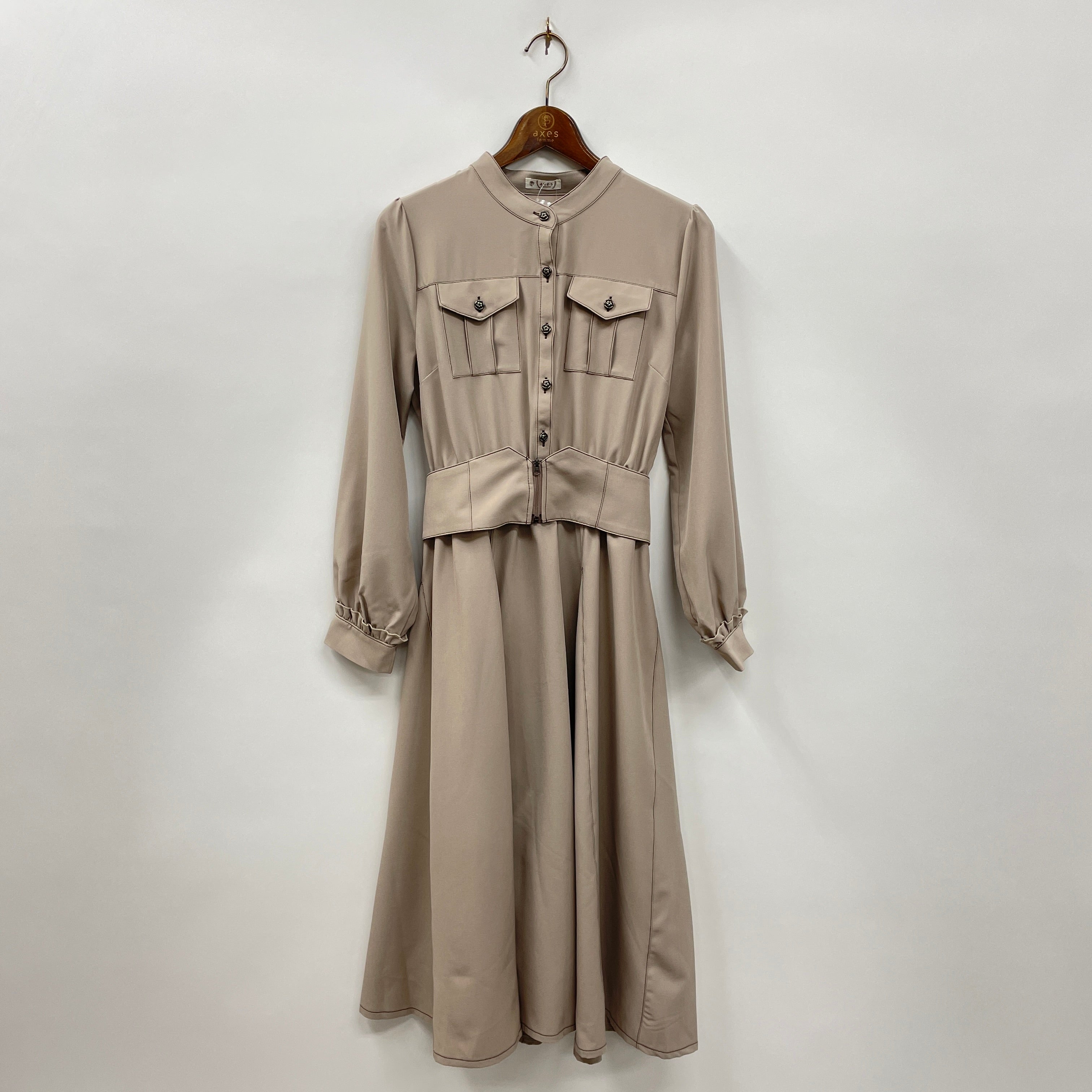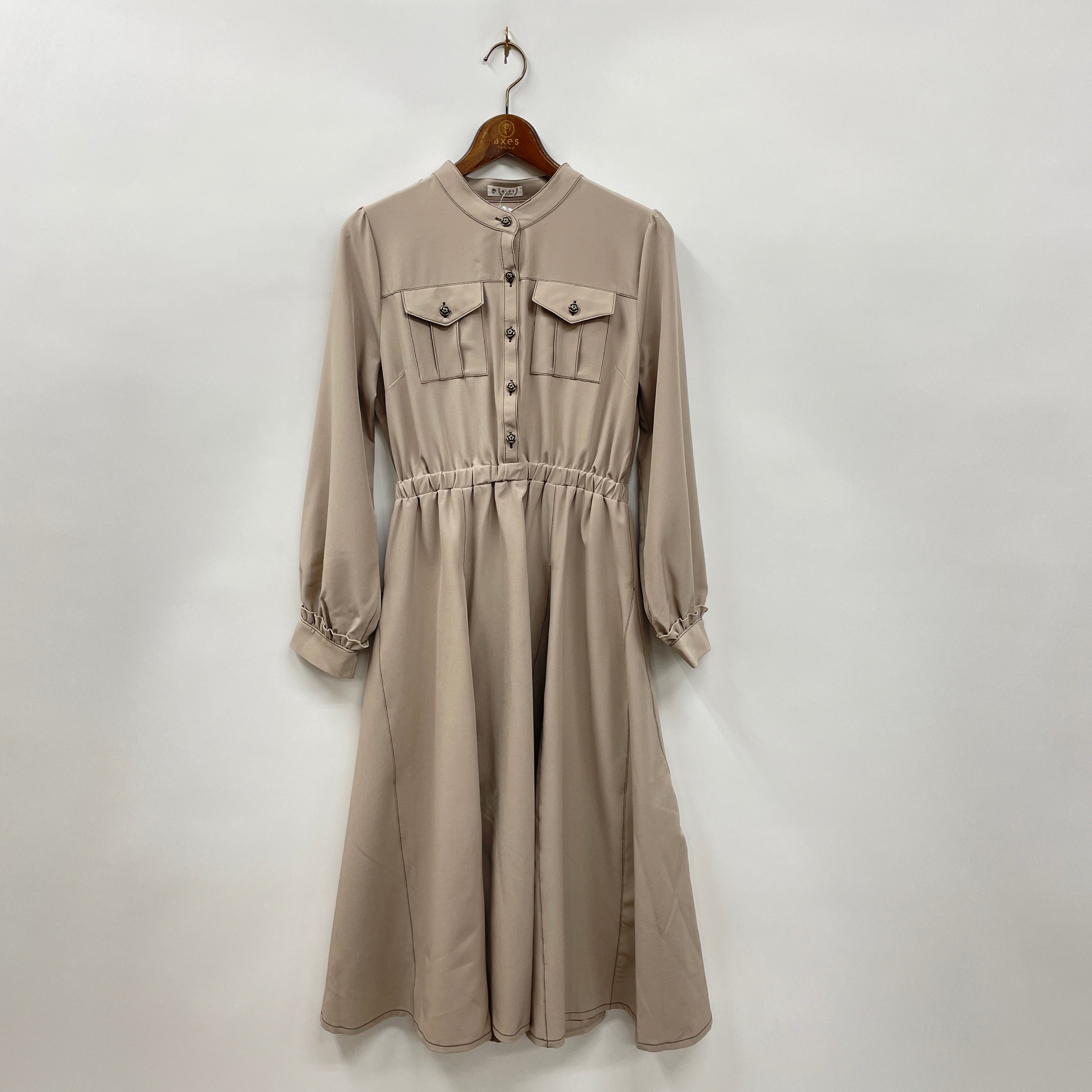 ハイネックデザインでかっちりとした印象に、スカート部分は裾に広がるシルエットに切替が入り自然なフレア感がきれいに出ます。