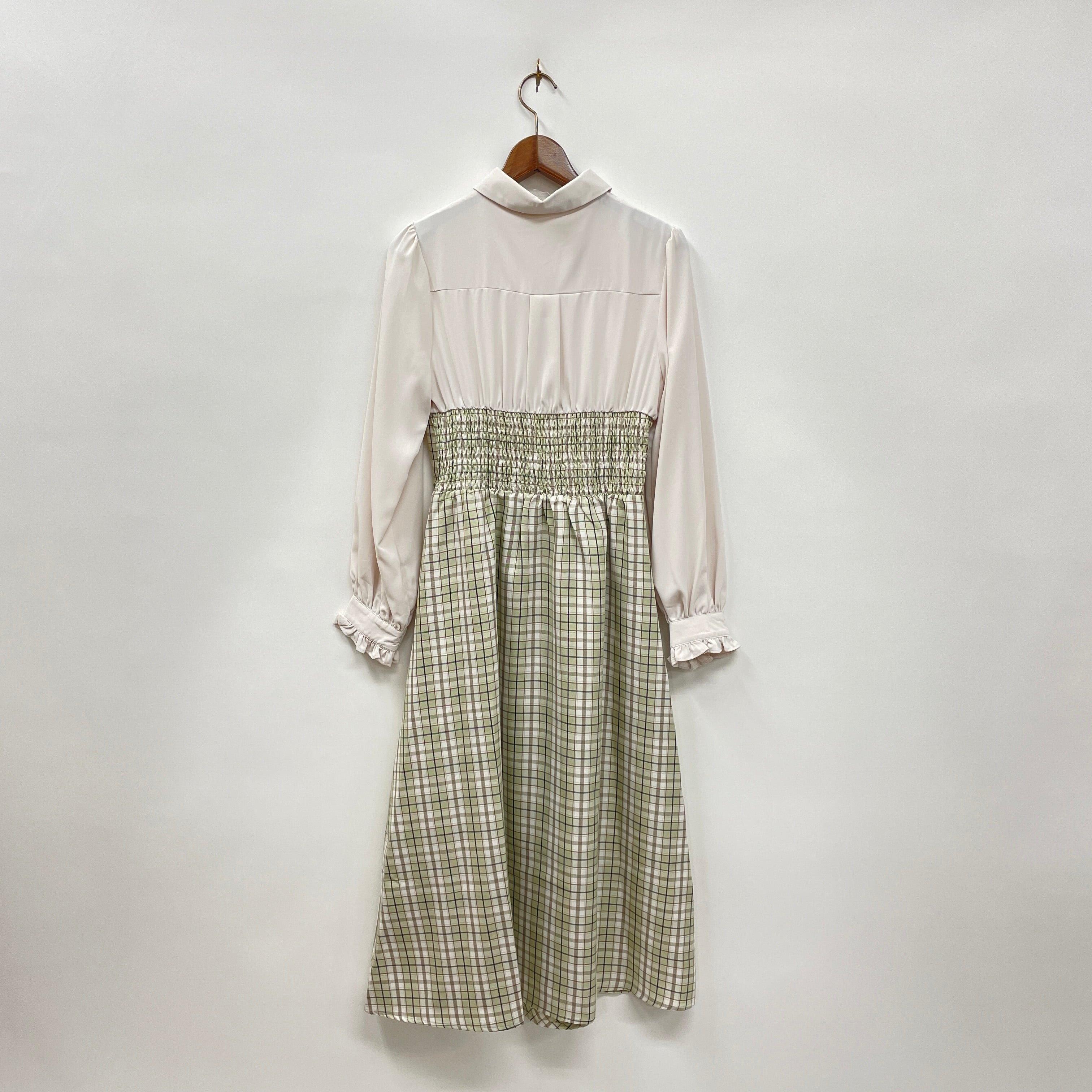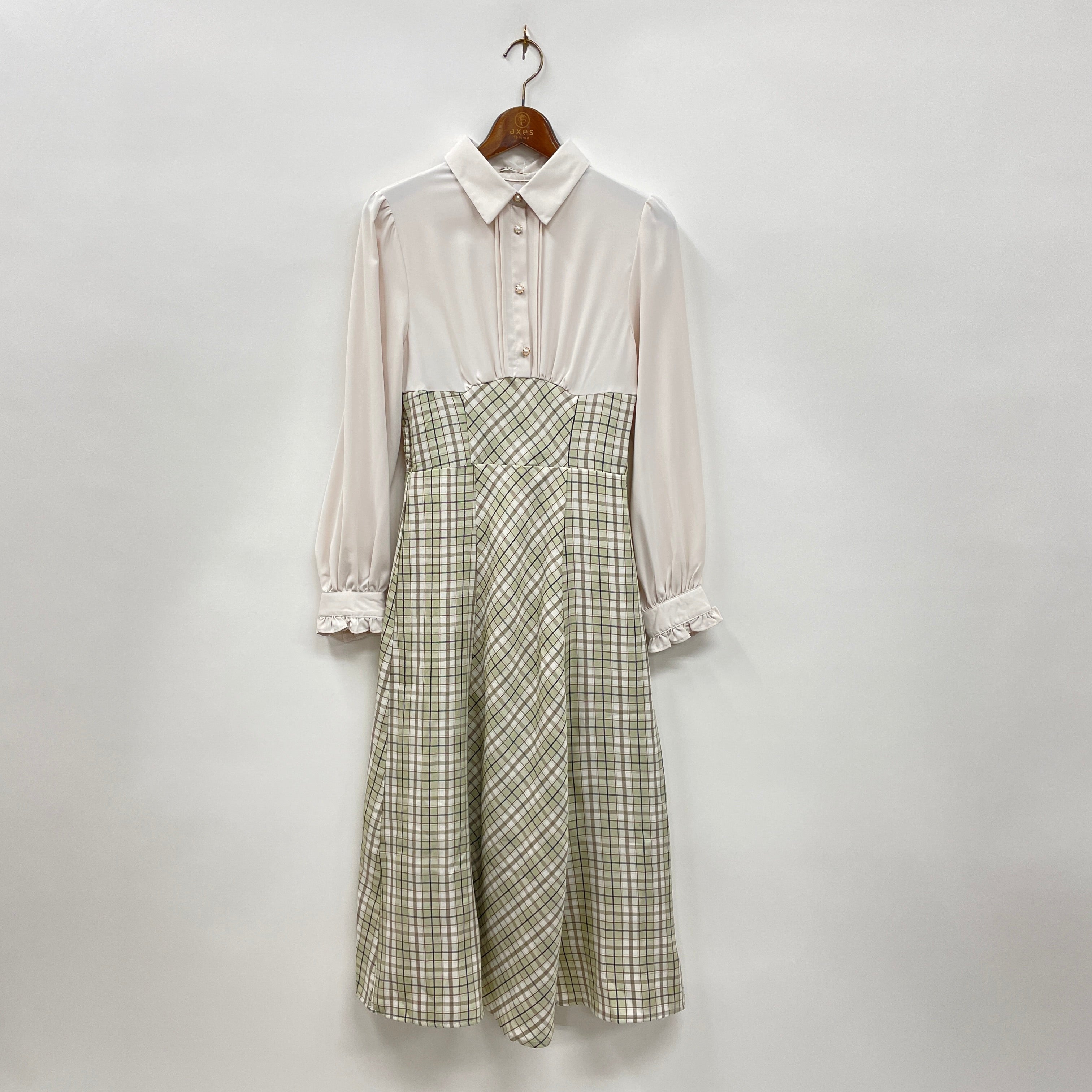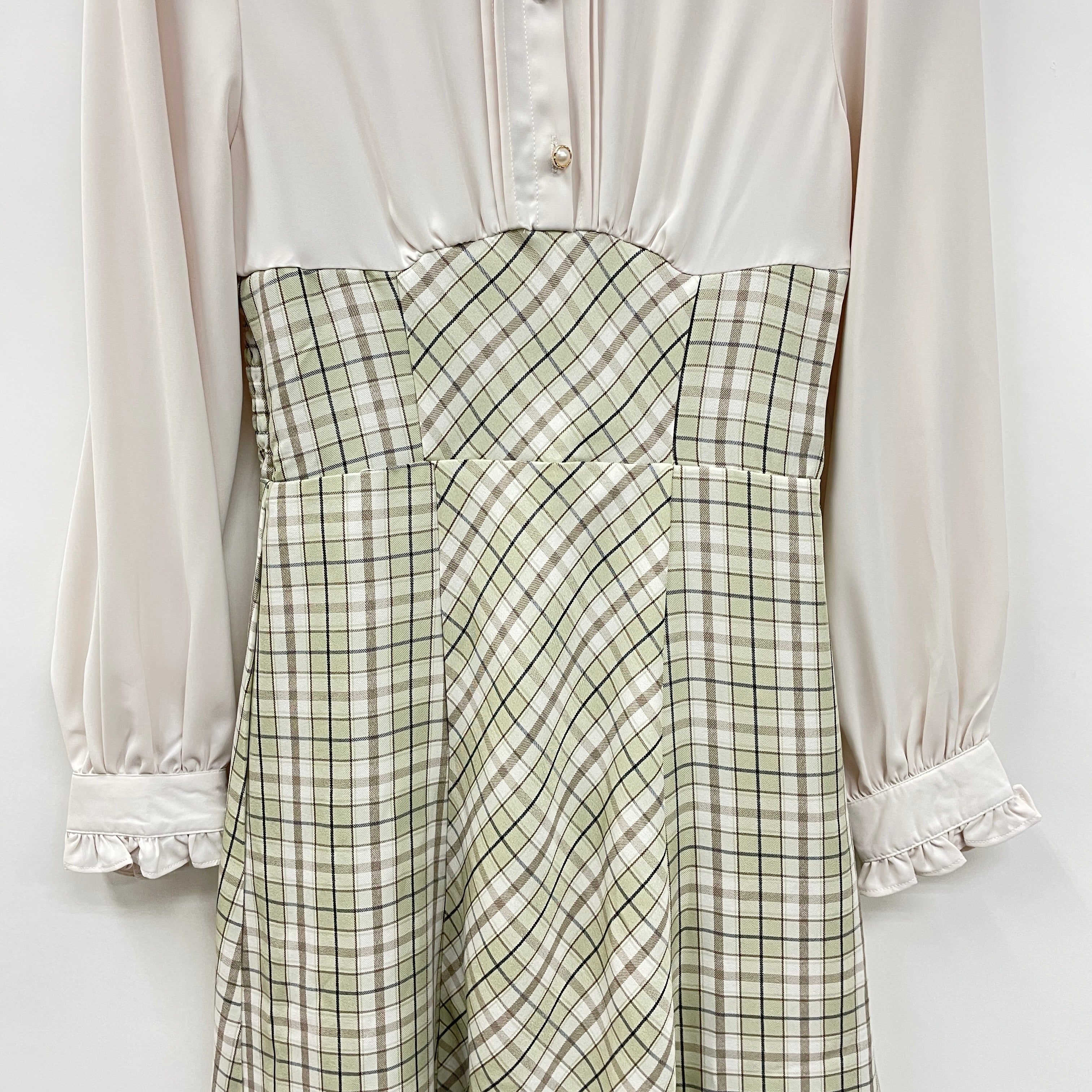 清楚なブラウス&チェック柄スカートのドッキングワンピースです。
