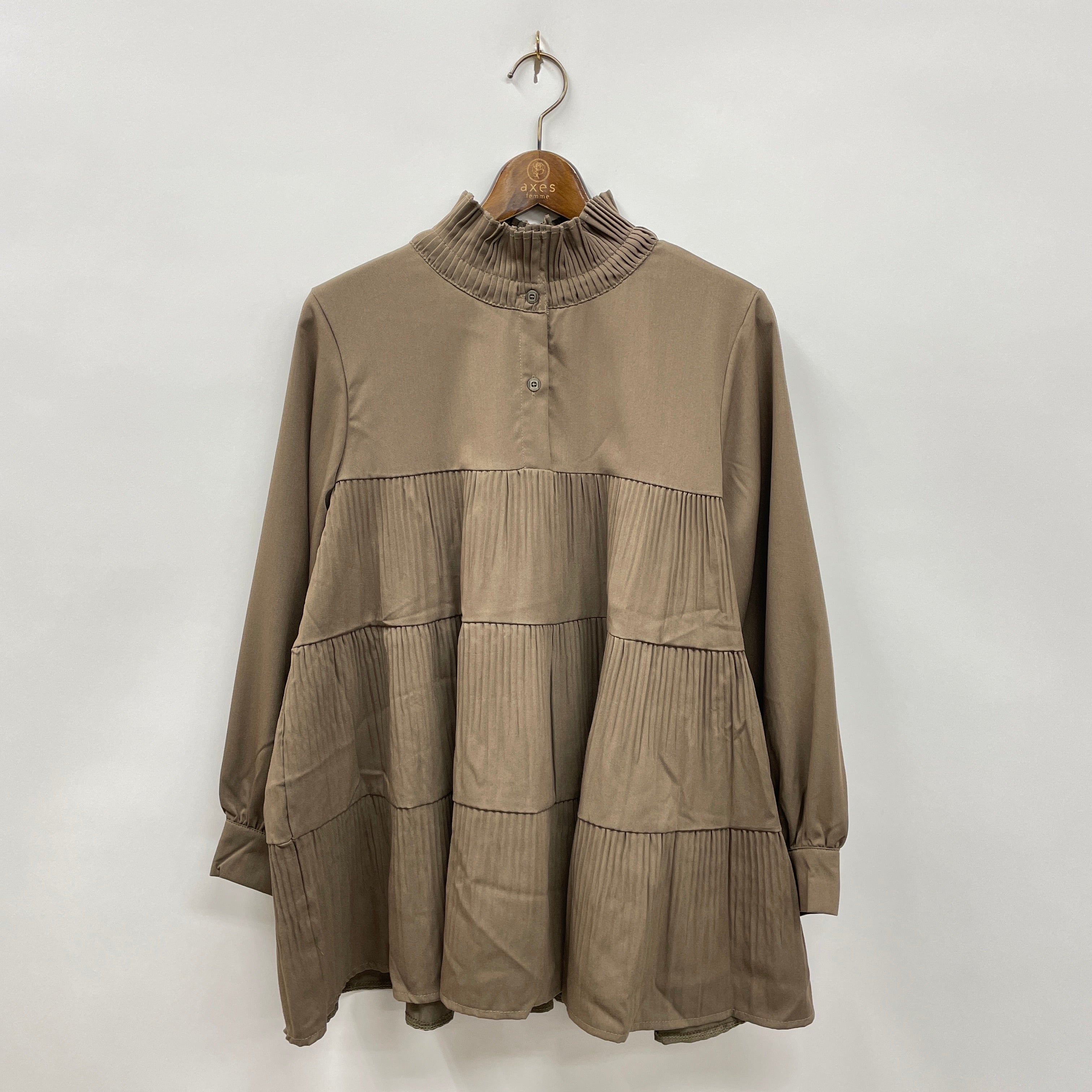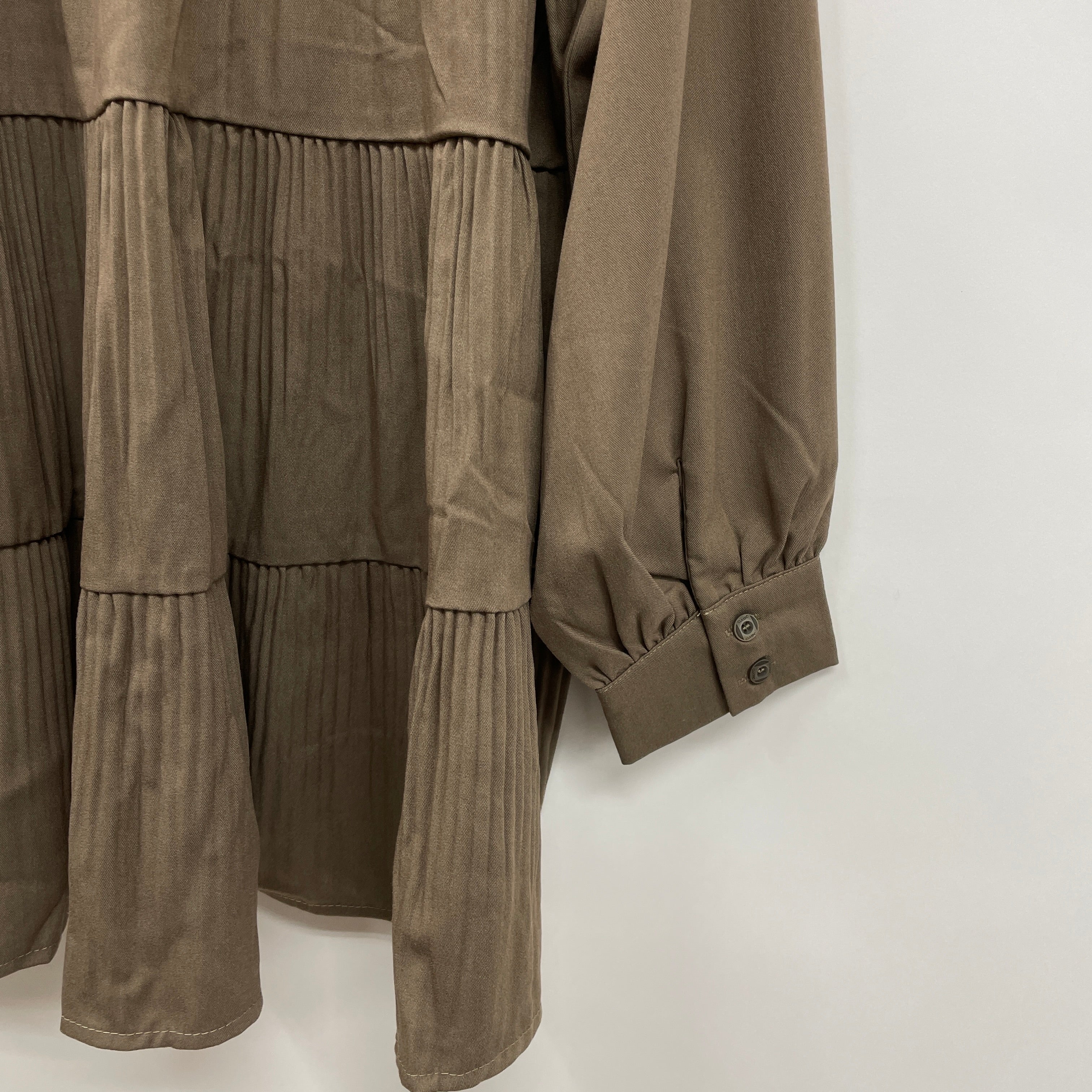 ティアードのデザインが女性らしいチュニックです。広がりすぎないシルエットで、パギンスと合わせたカジュアルな着こなしもおすすめです。」