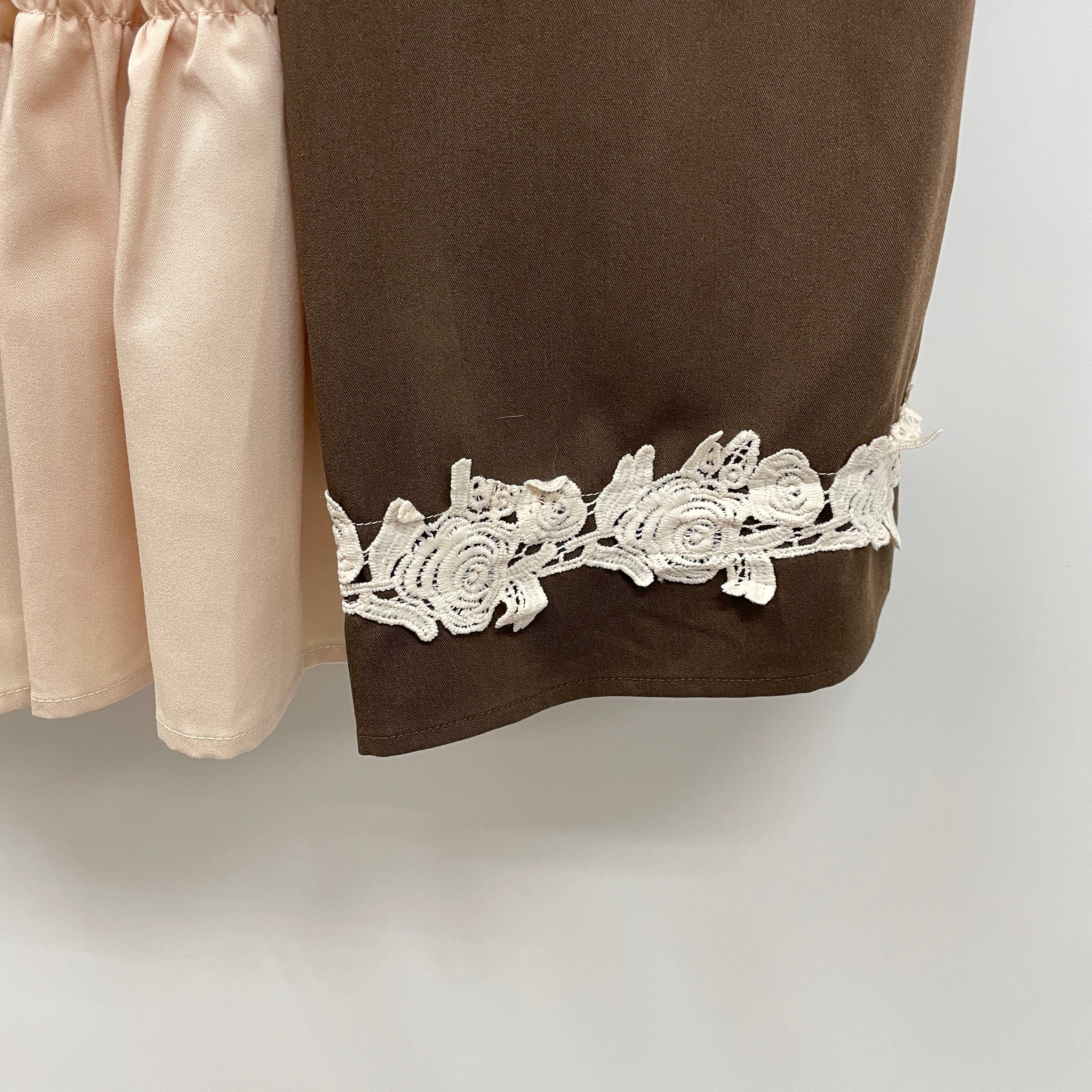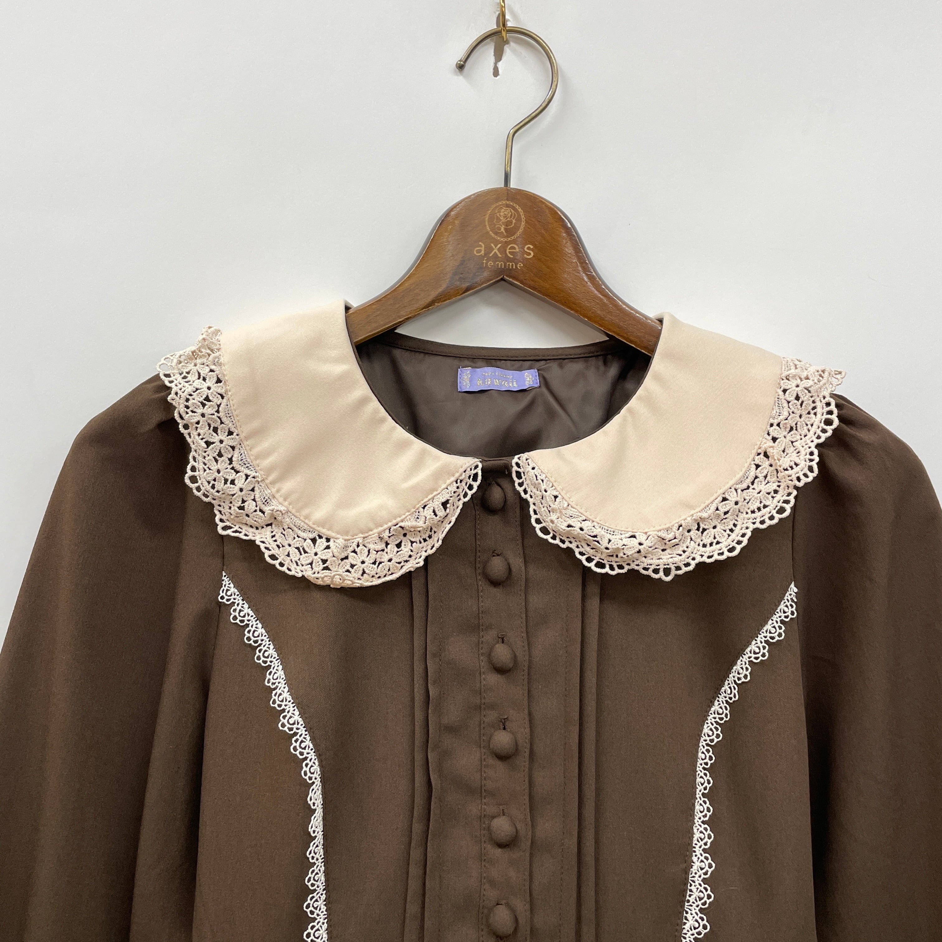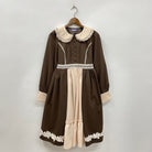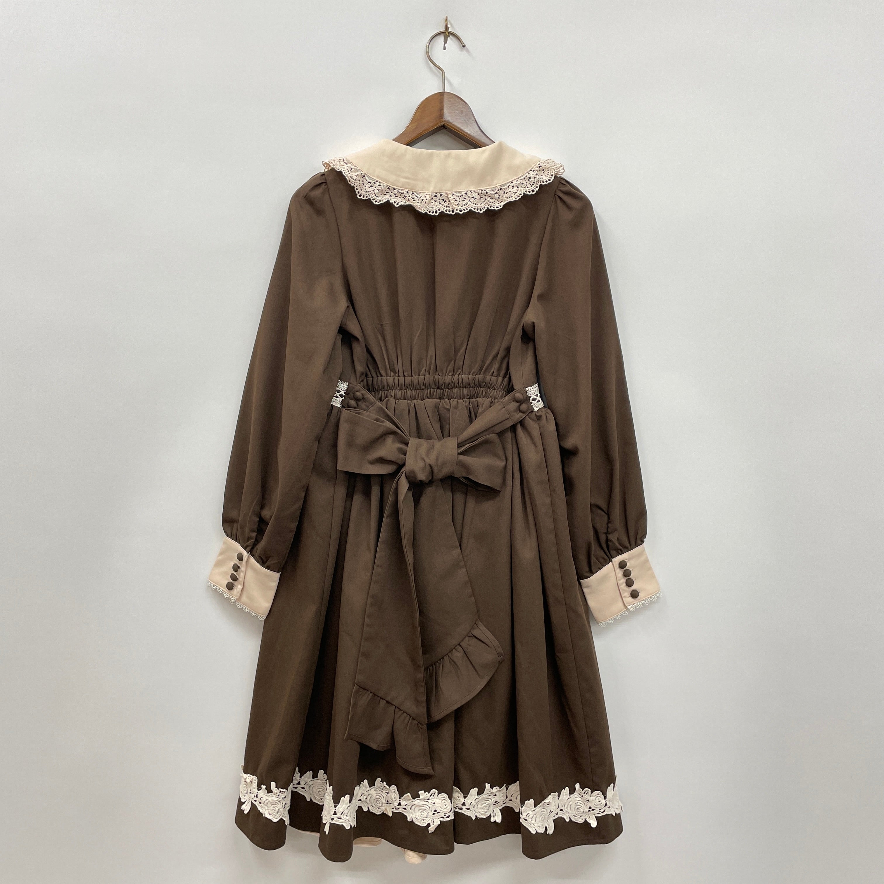 童話に出てくるような女の子が着ているお洋服をイメージしたワンピースです。大きな丸衿、スカートの裾の大きな薔薇のケミカルレースなど可愛いディティールが詰まった特別な一着。お揃いのケープとあわせても◎kawaiiの定番商品であるミディフリルペチスカートと合わせても可愛く着こなせます。