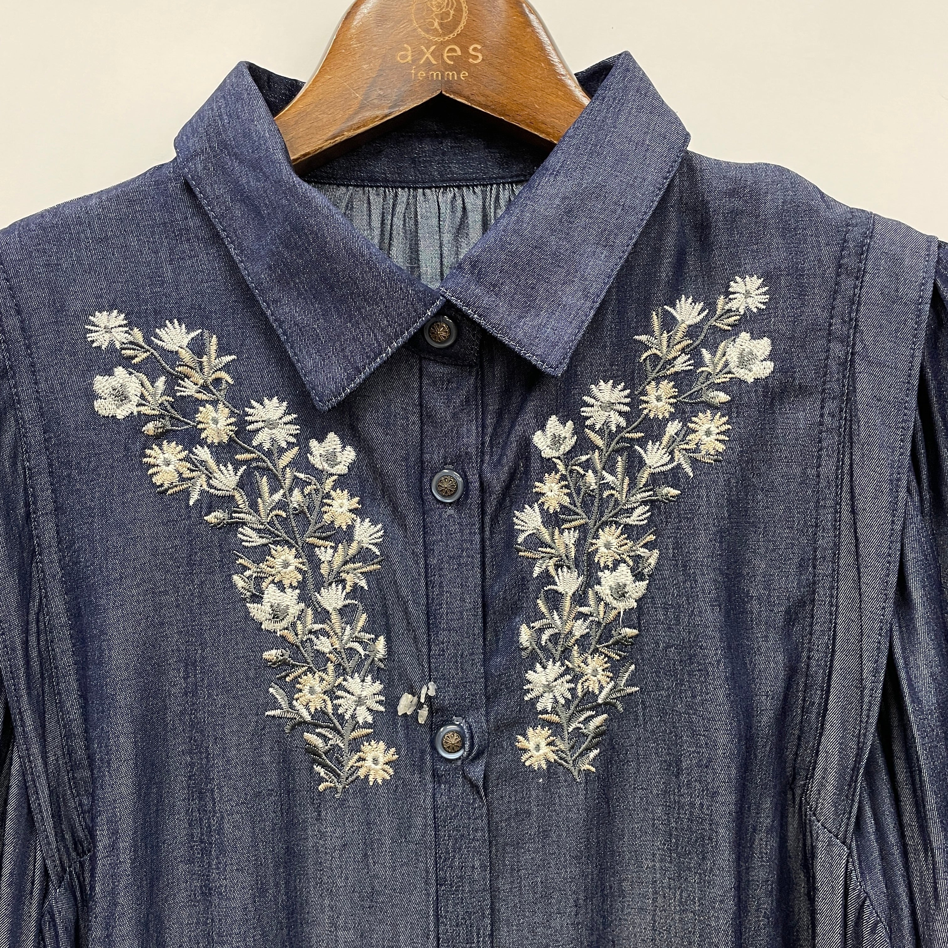 花刺繍ボリューム袖シャツOP