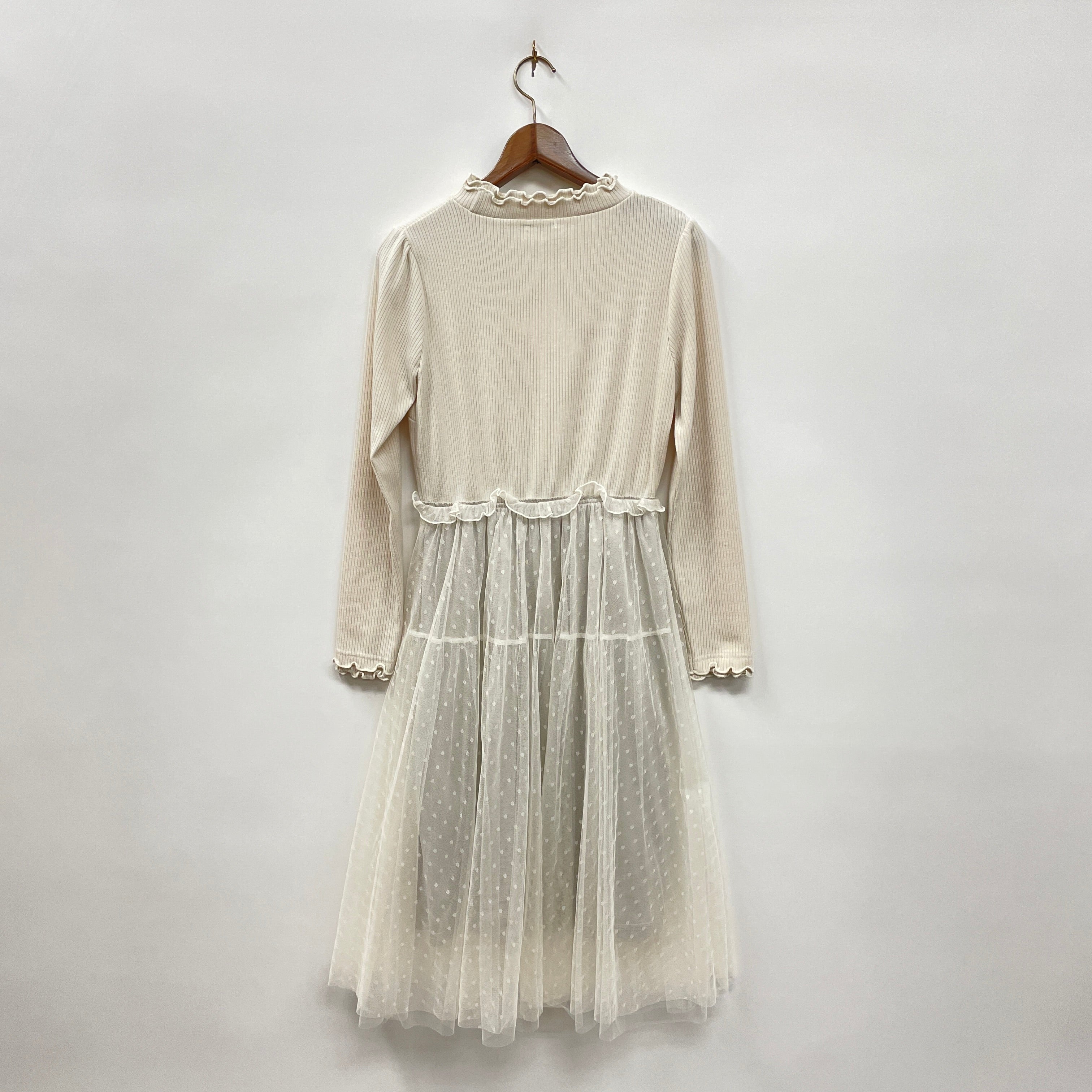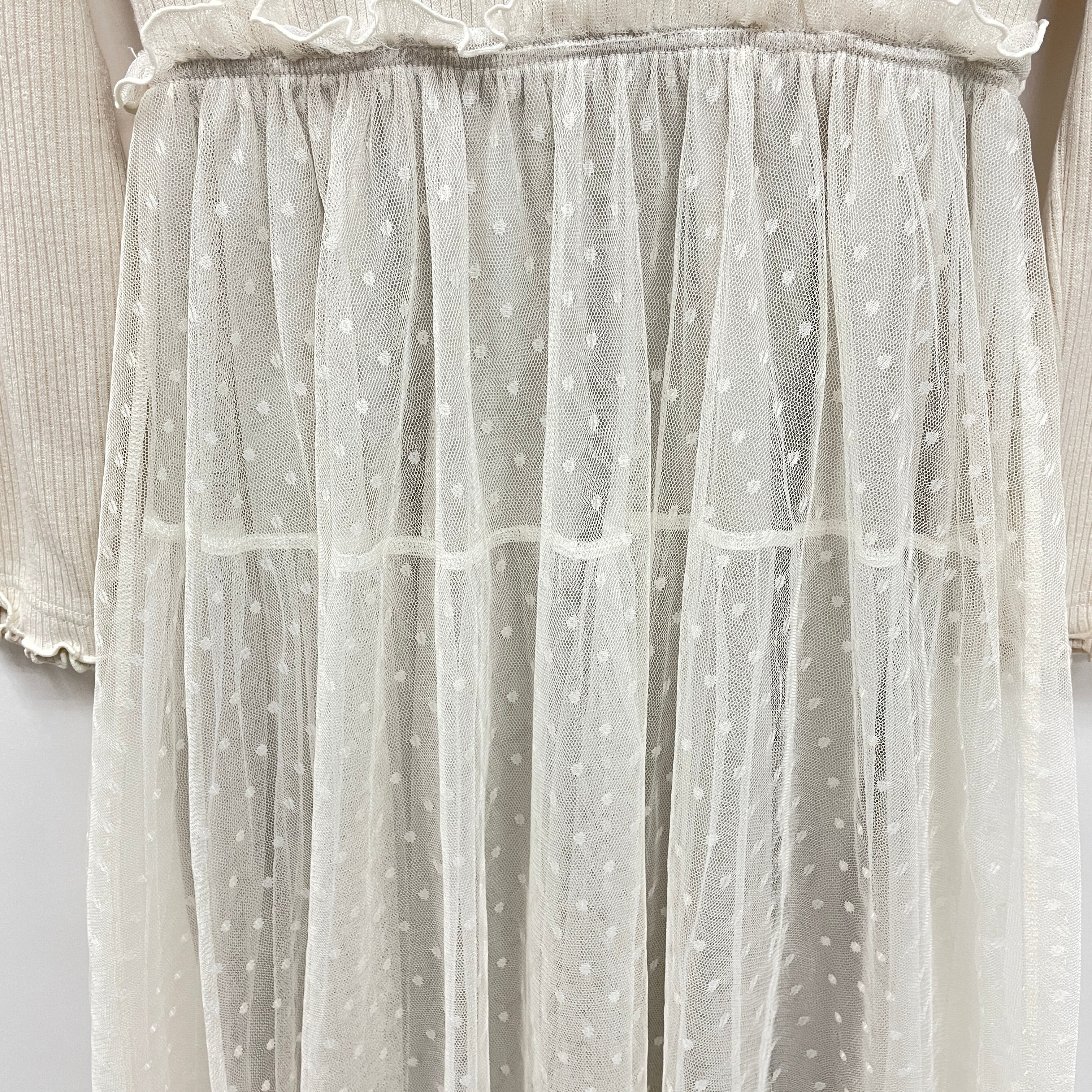 リブカットソーのトップスとドットチュールスカートがドッキング♪