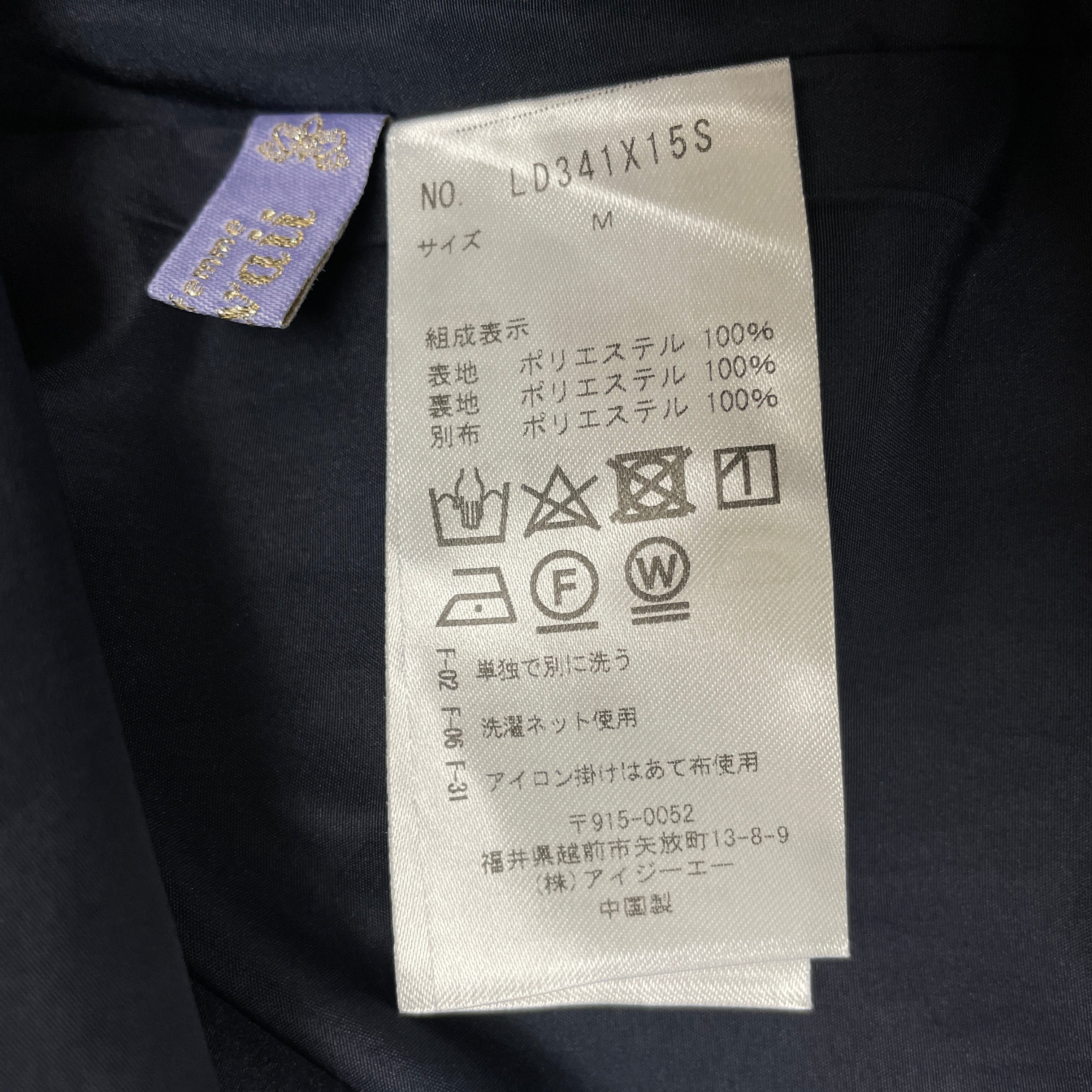 | サイズ | 着丈 | バスト | 肩幅 | ウエスト |