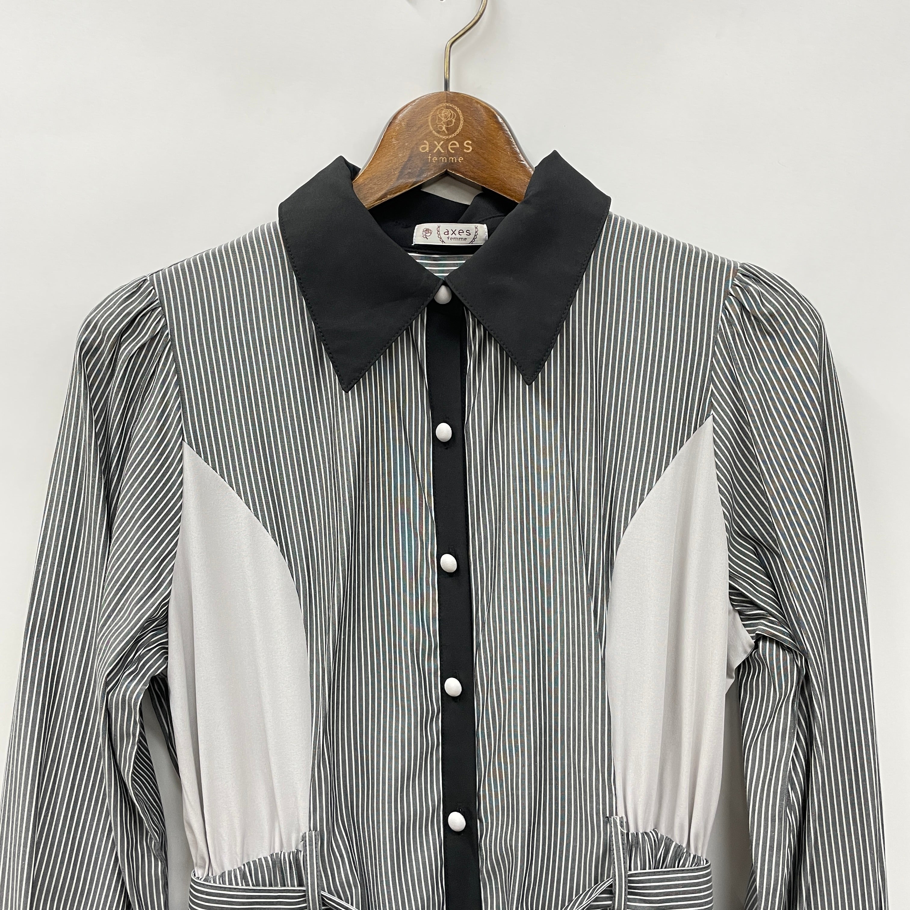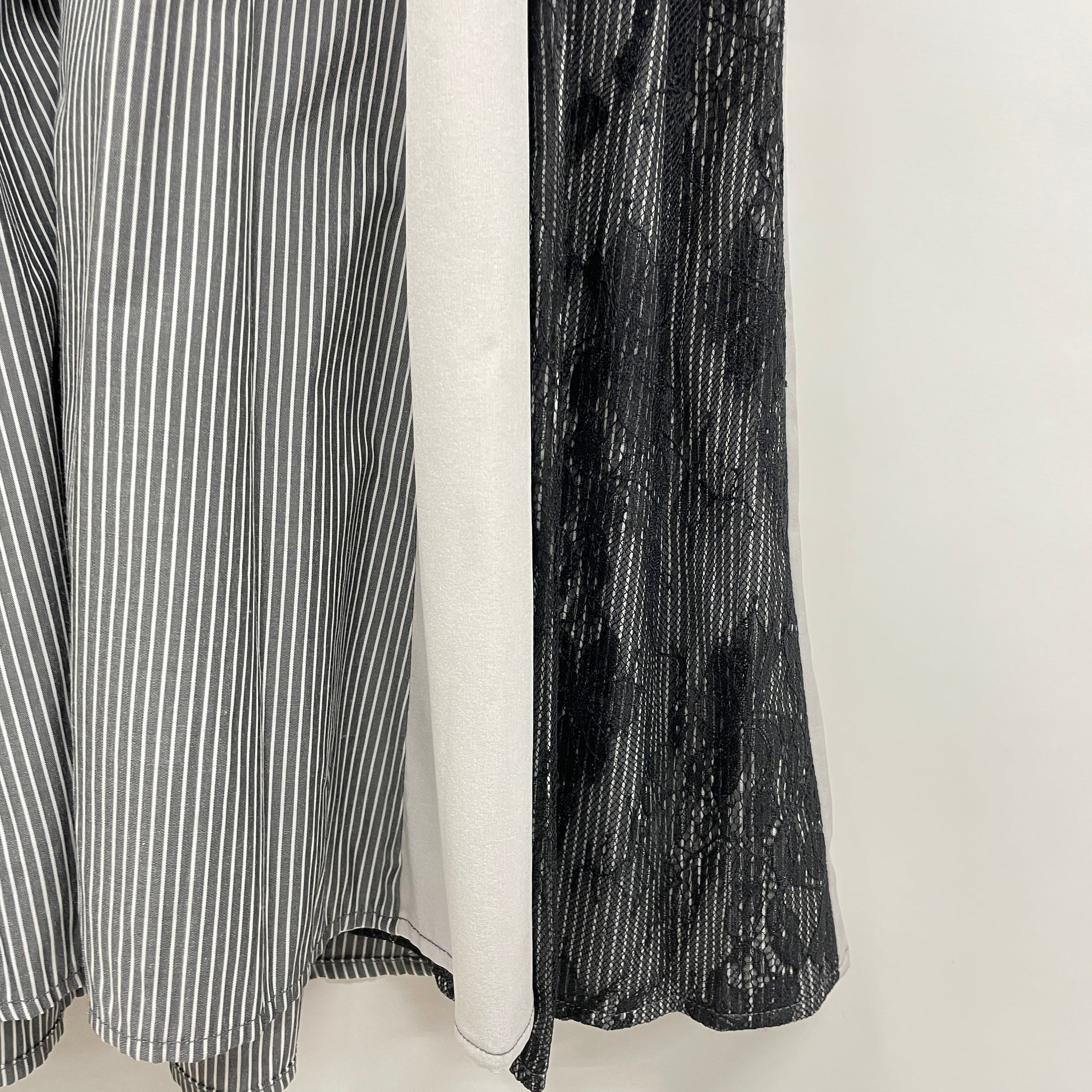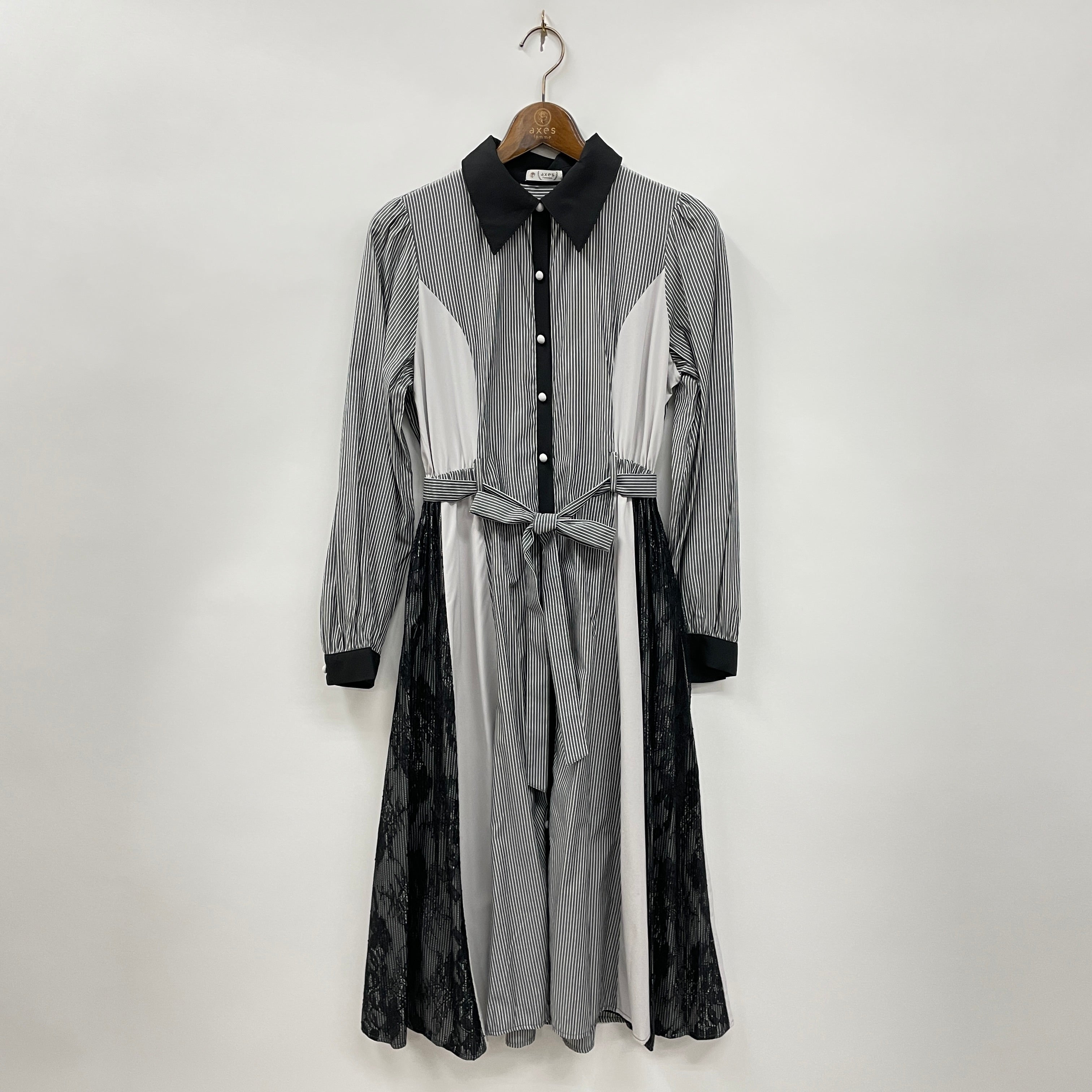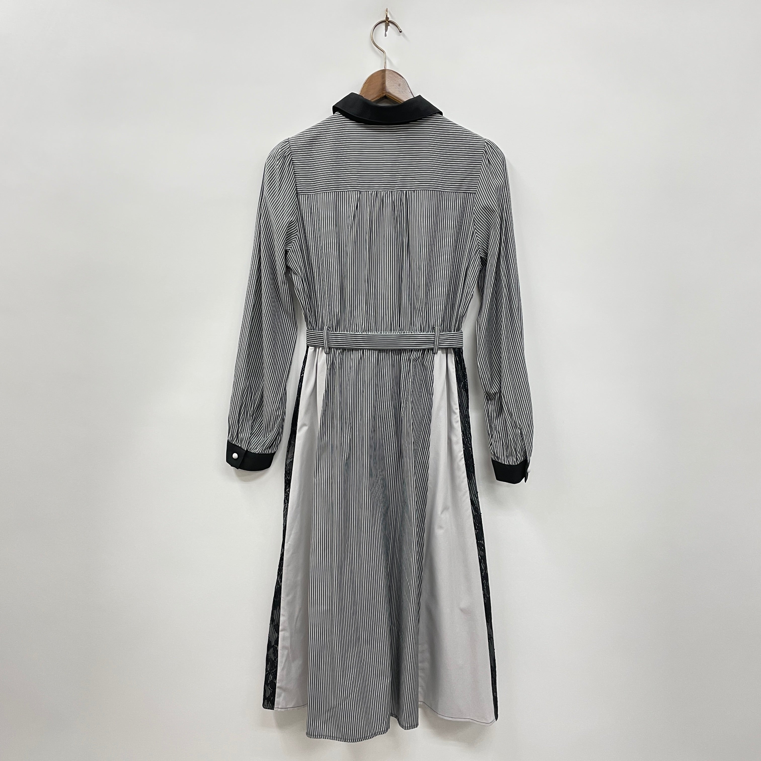 ストライプ×無地×レースの配色がポイントのシャツワンピースです。