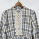 釦まわりの仕様と、配色チュールレースの重ねたクラシカルな雰囲気でaxes femmeらしい1枚。