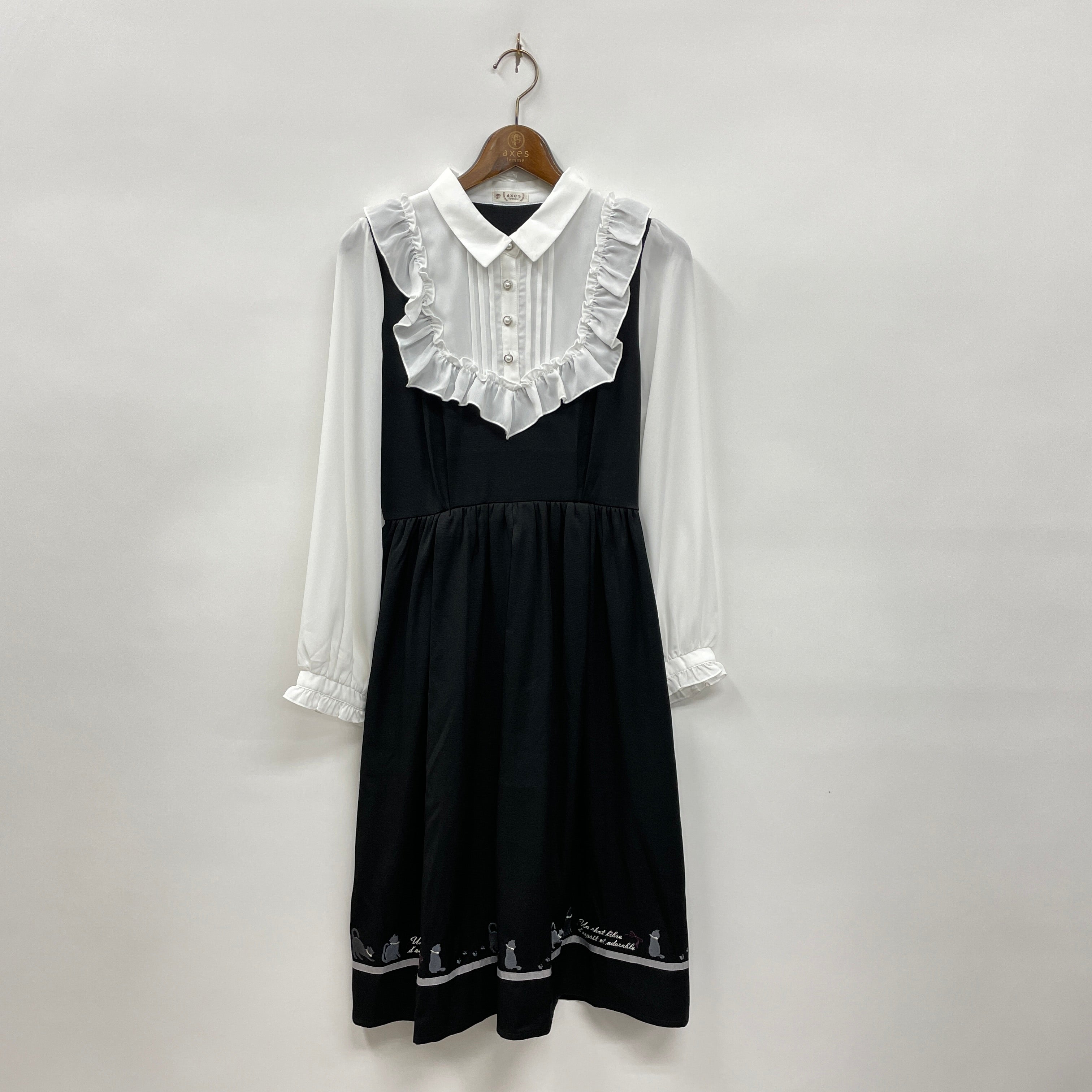 裾にネコの刺繍をぐるりとあしらったワンピースです。