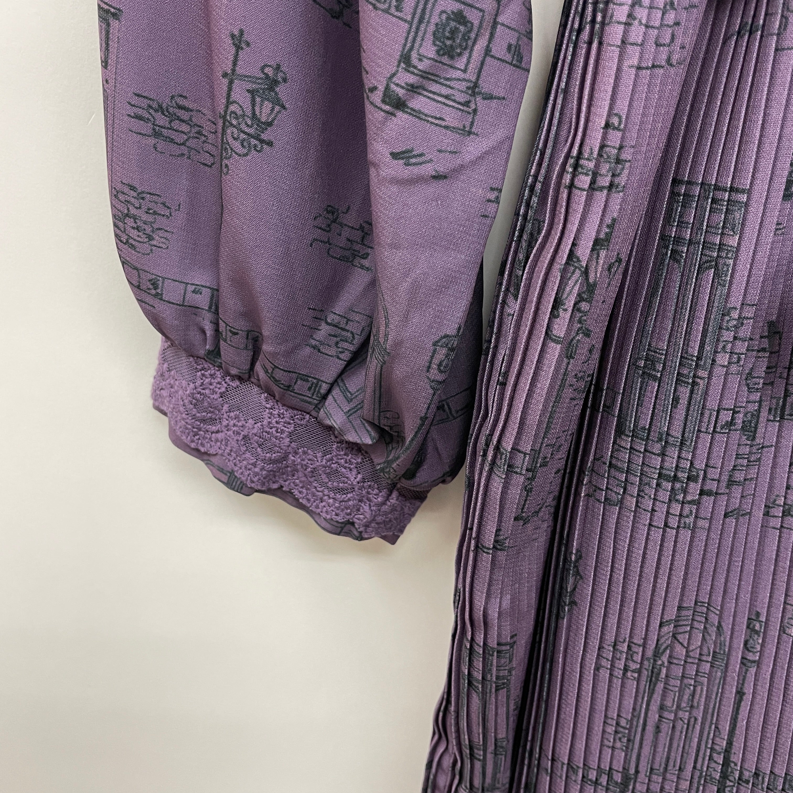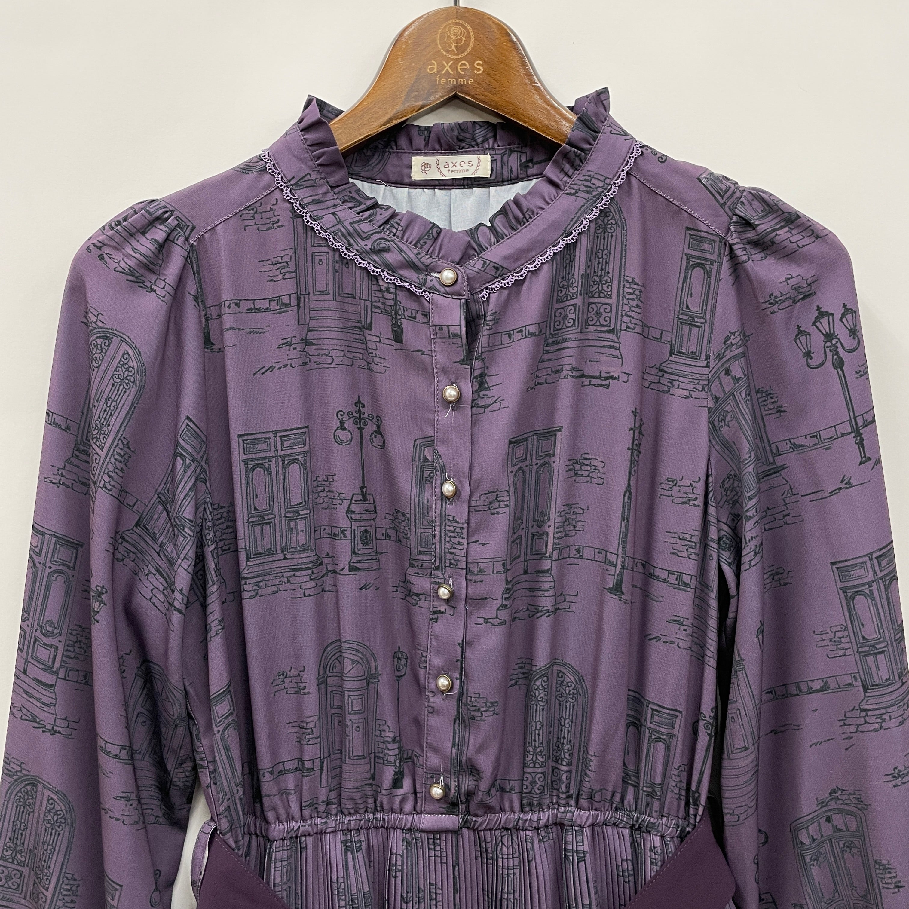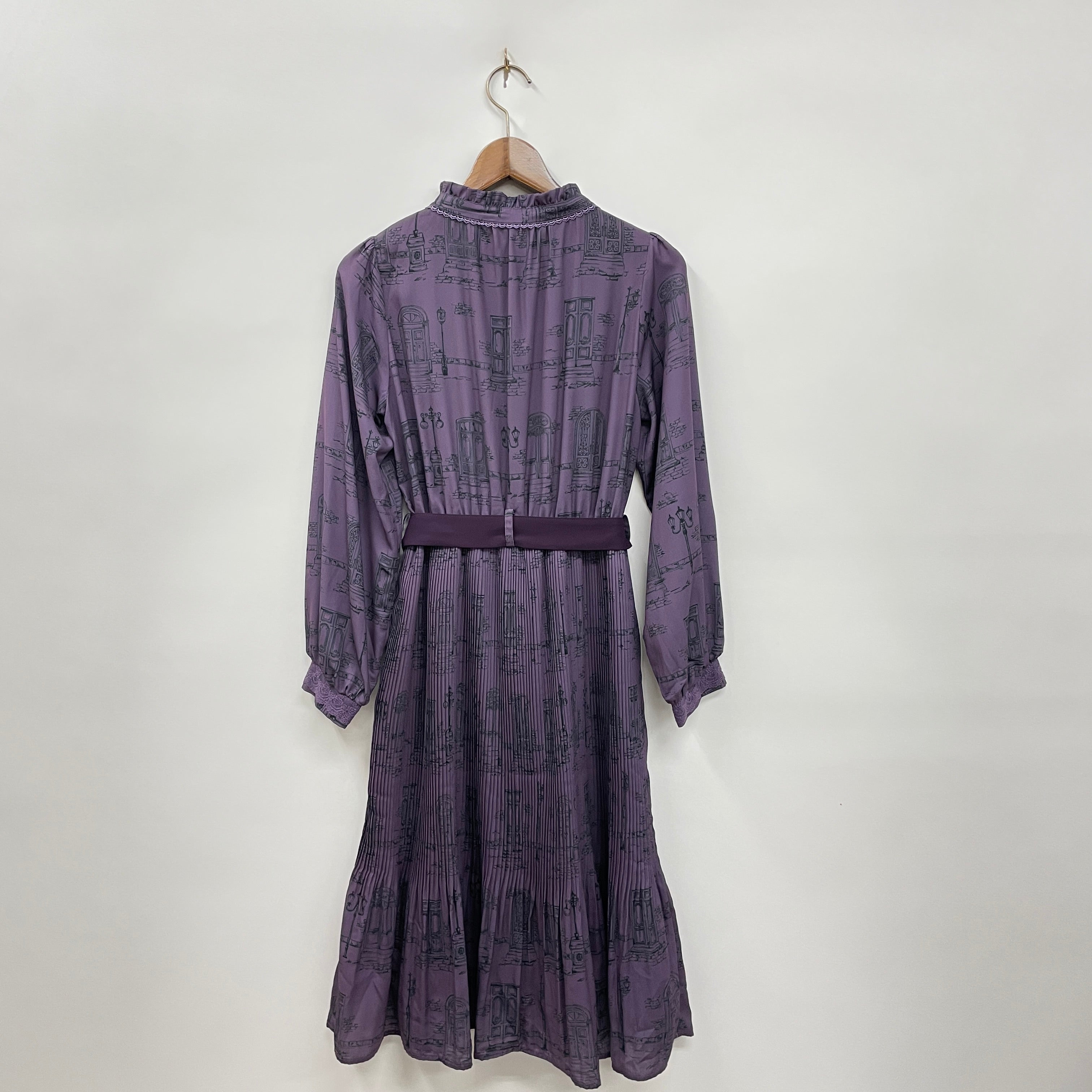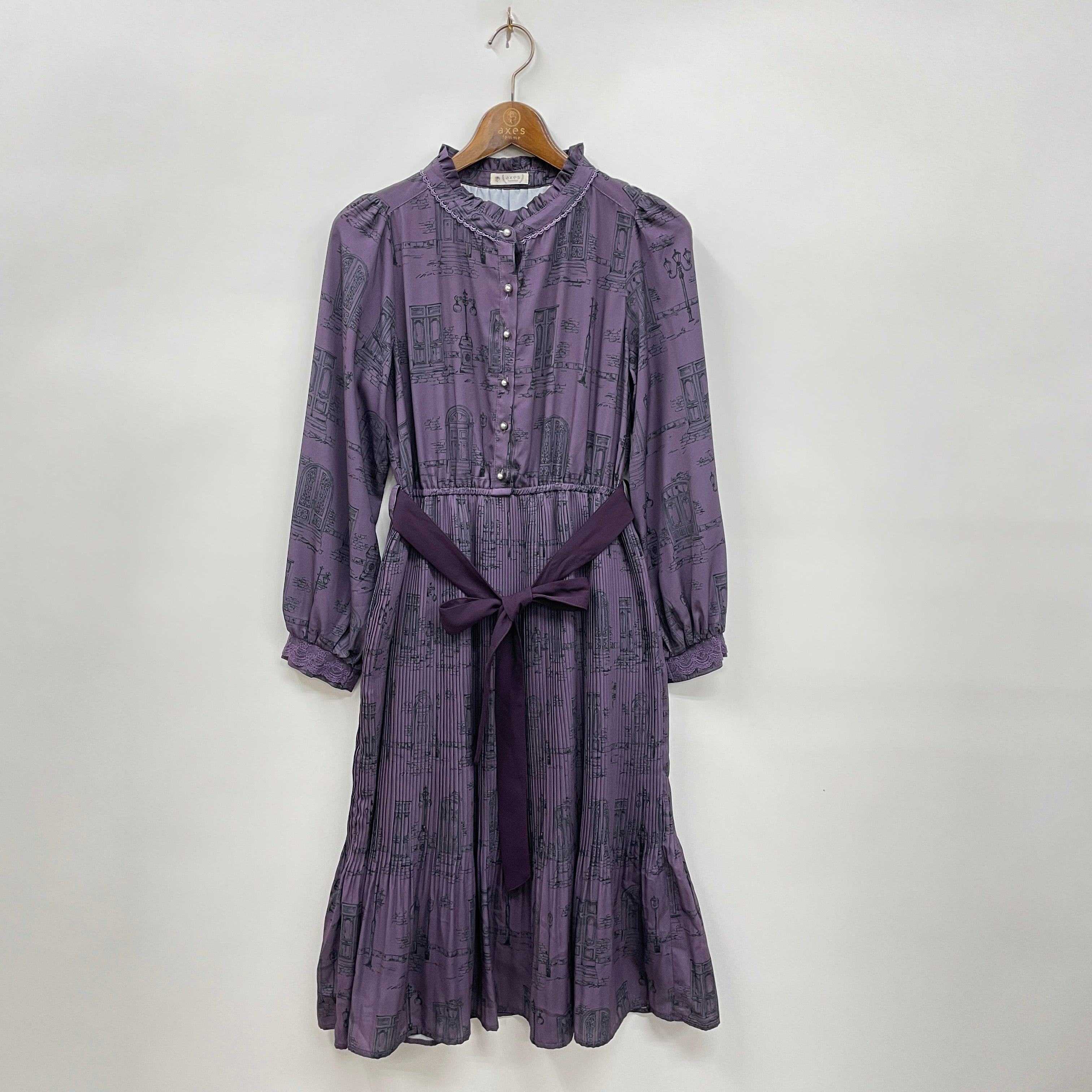 ヨーロッパの古い街並みからインスピレーションを受け、扉・街灯・石畳をオリジナルのプリントに落とし込んだワンピースです。