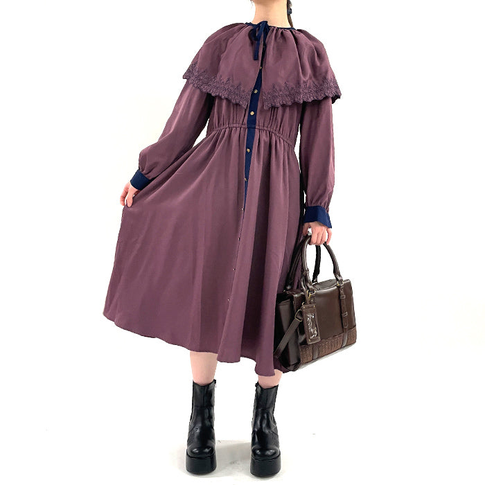 華やかな刺繍をあしらったケープがセットになったワンピースです。