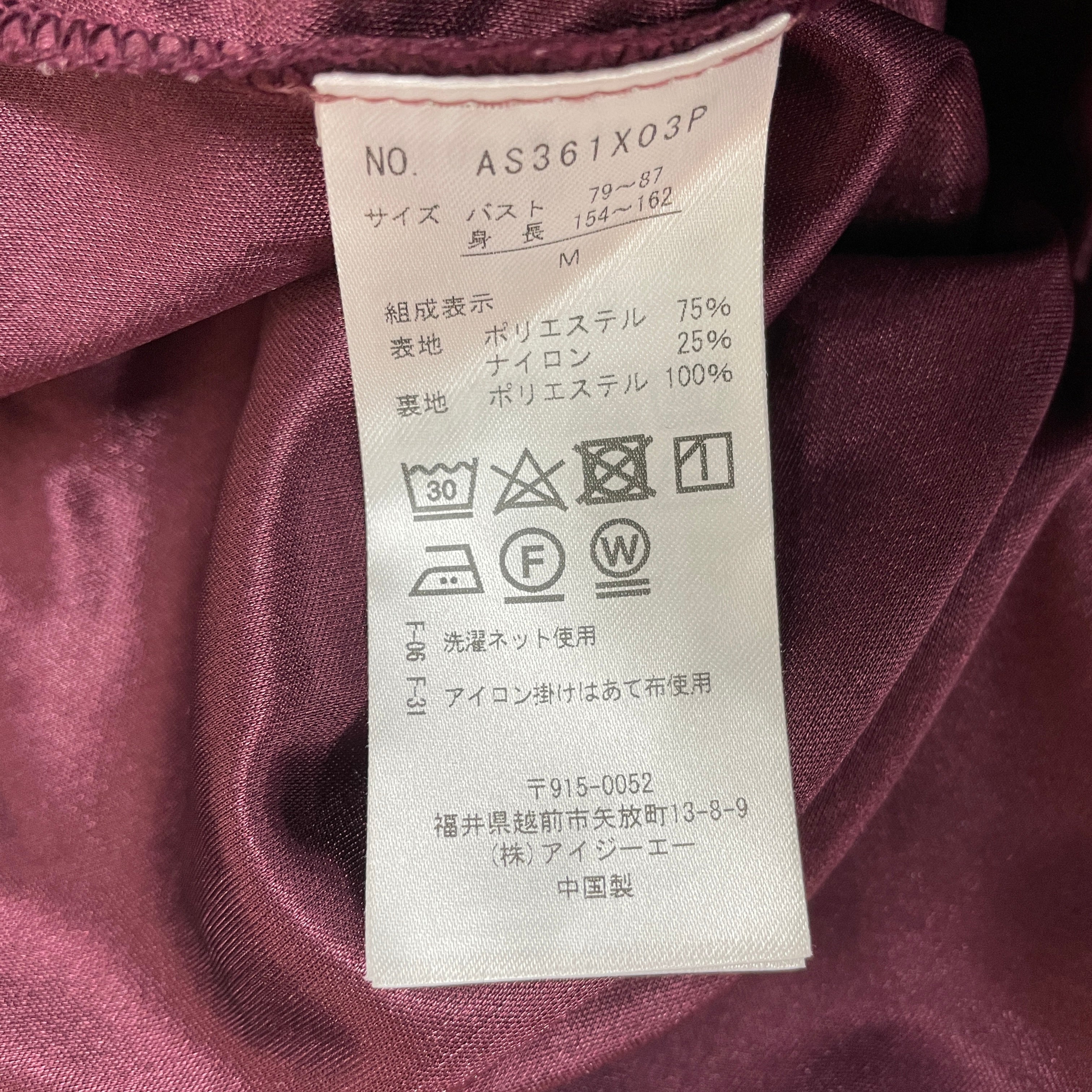 | サイズ | 着丈 | バスト | 肩幅 | ウエスト |