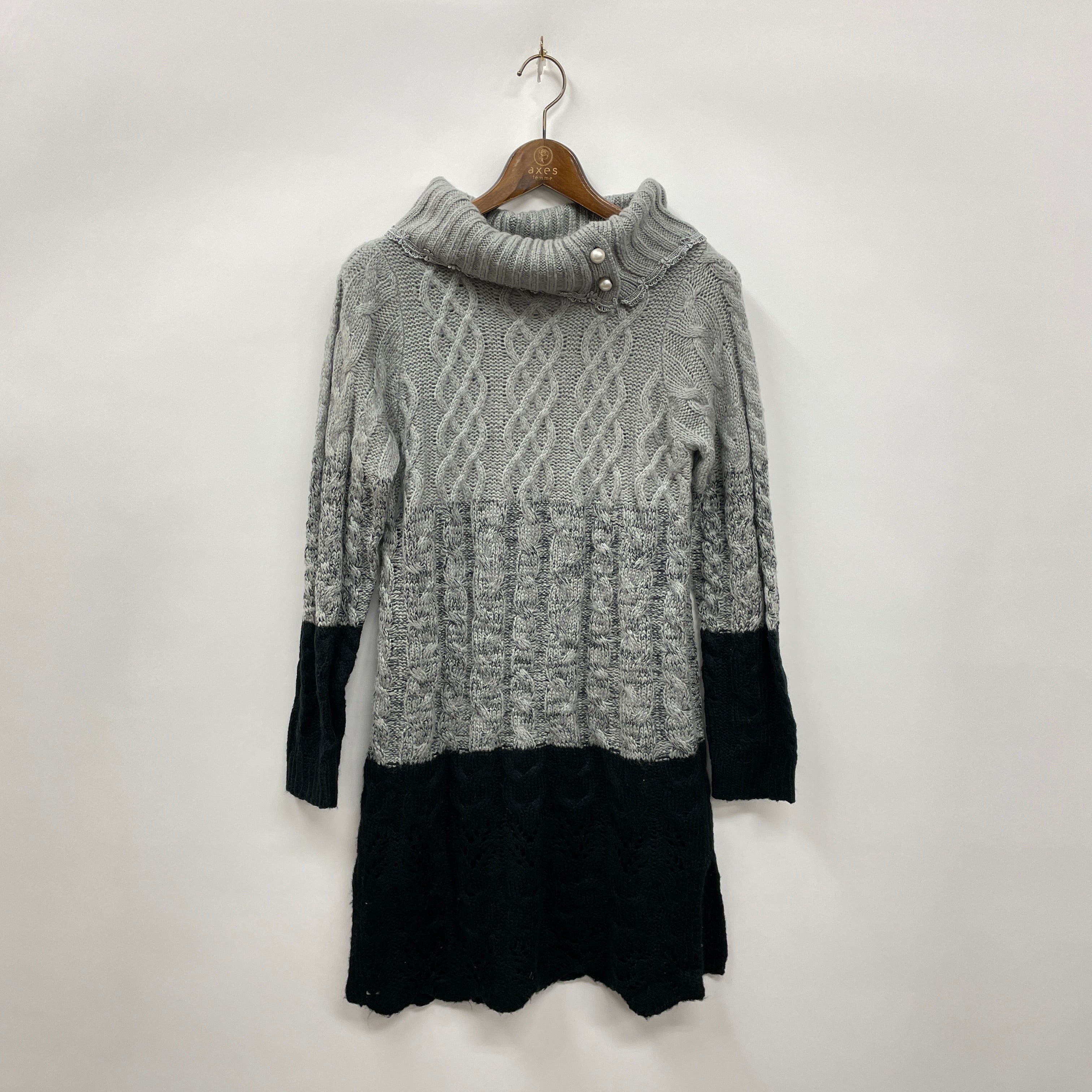 編地の切り替えと糸を合わせ編みして表現したグラデーションがポイントのニットワンピース。ペチスカート・パンツ・ロングスカートなど合わせるボトムスでさまざまな着こなしができる気回し力の高いアイテムです。