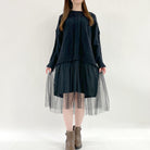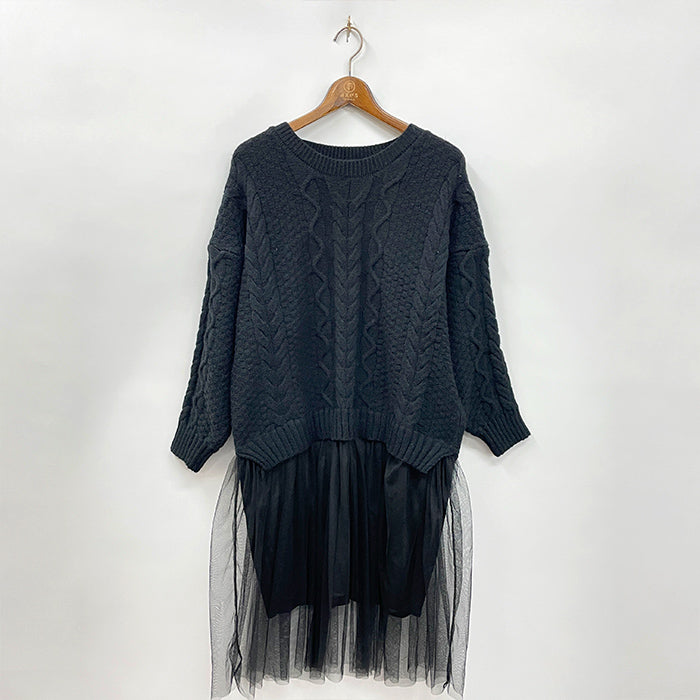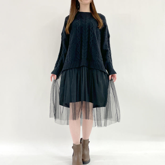 裾チュールニットワンピ