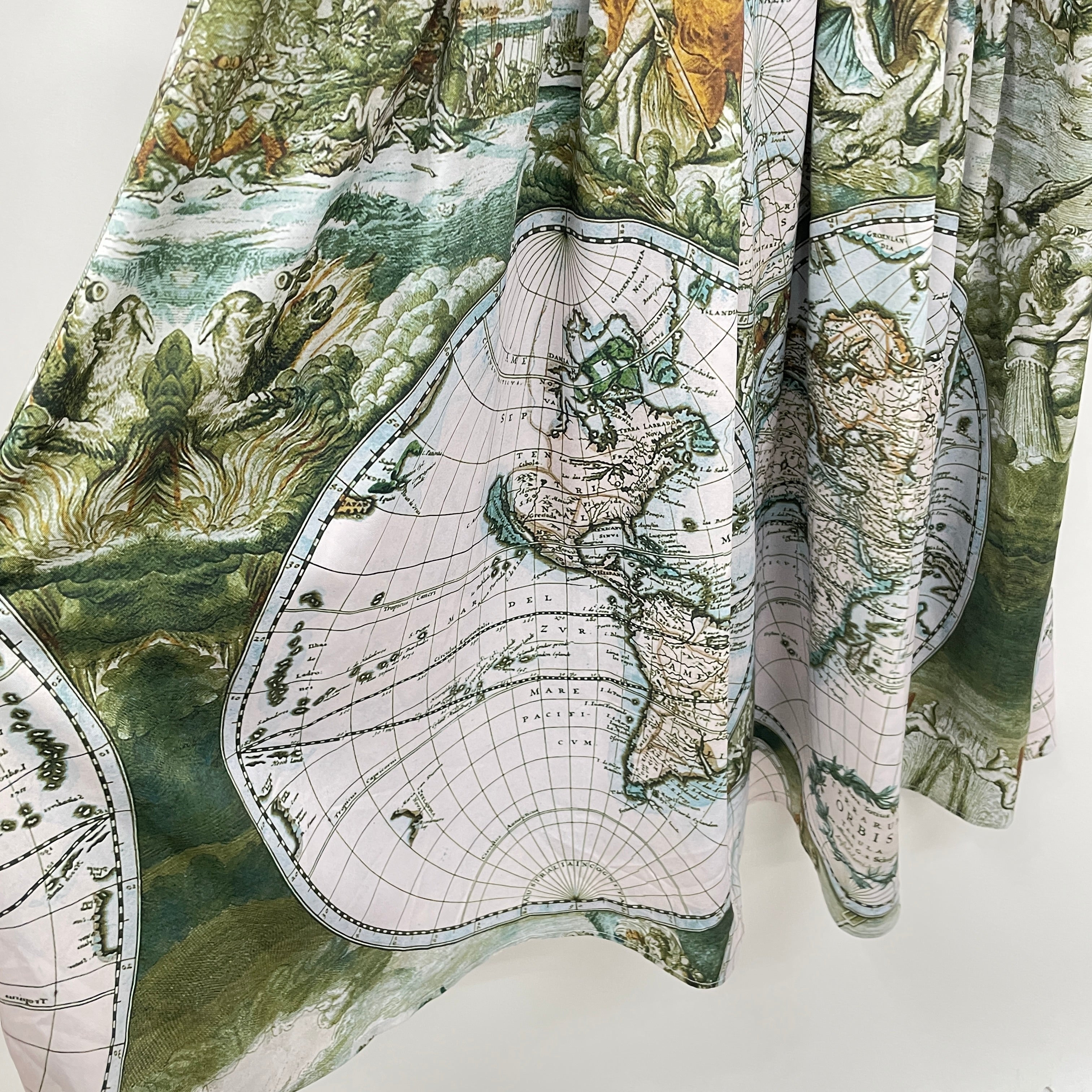 ヴィンテージ感漂う幻想的な世界地図柄のジャンパースカートです。