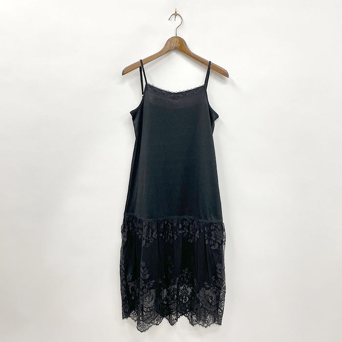 ニットワンピース等の中に着やすいペチワンピースです。華やかな生地レースを使用しているのがポイントです。年中着まわせる万能アイテムです。