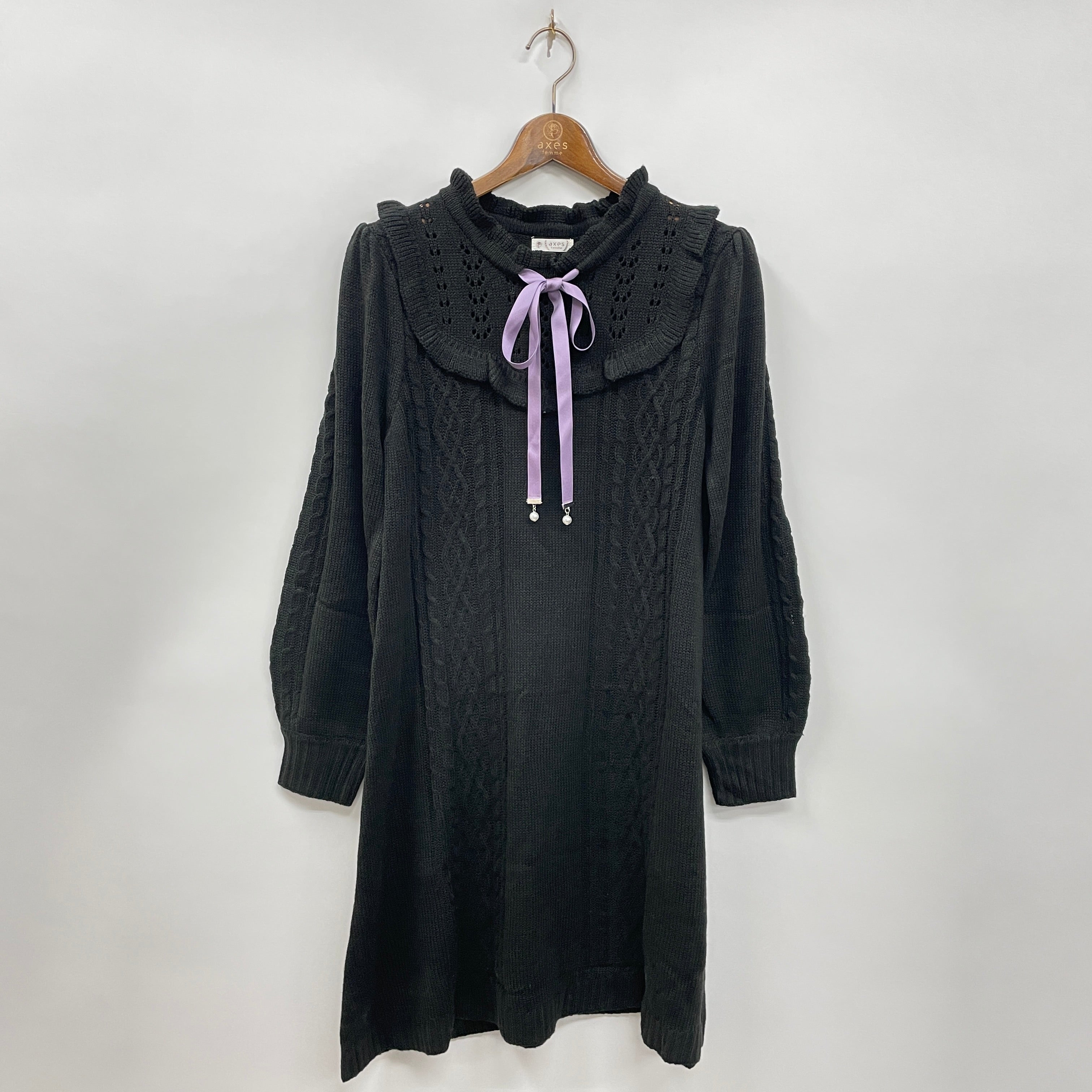 透かし編み柄のビスチェ切替がポイントのニットワンピースです。