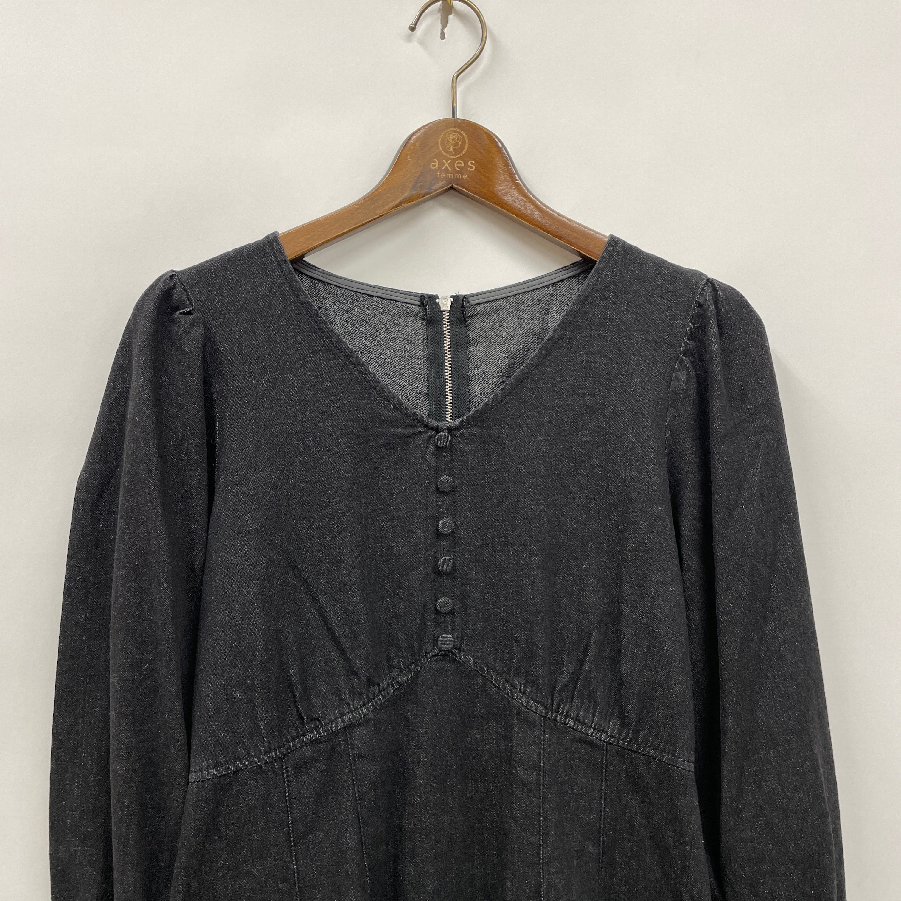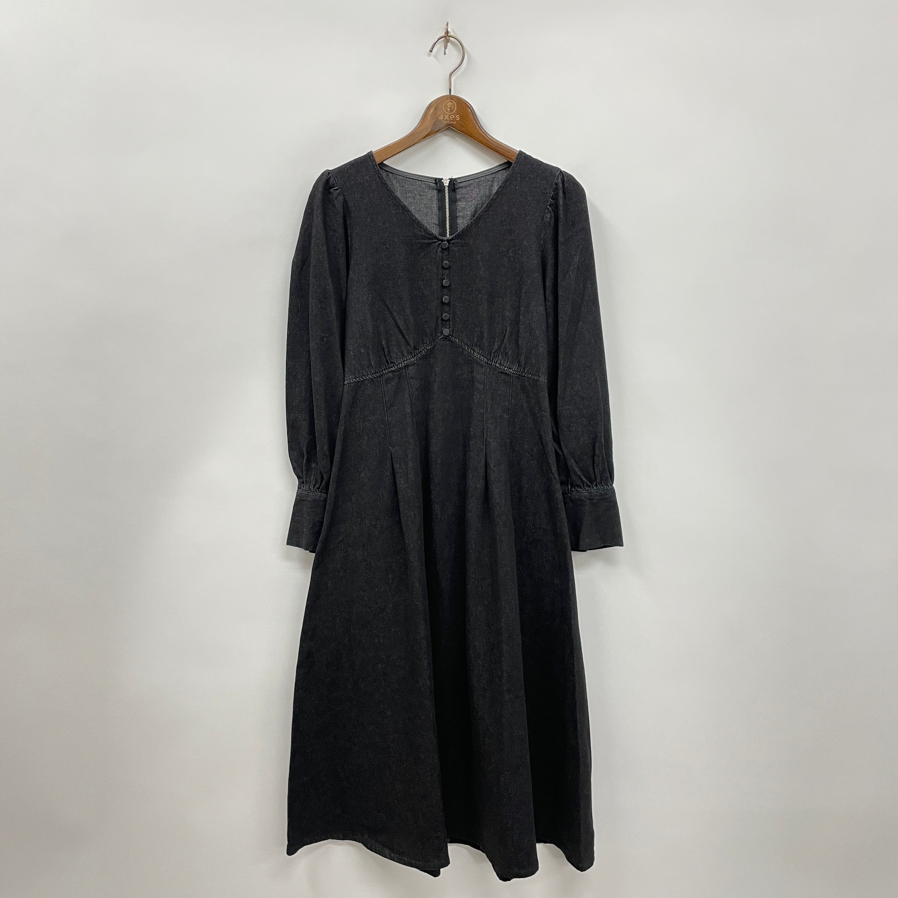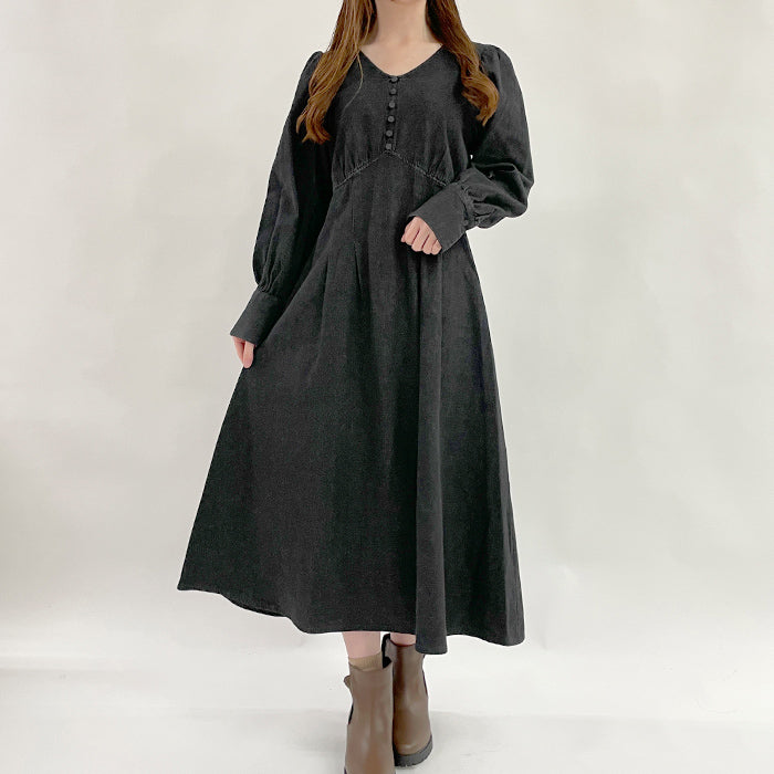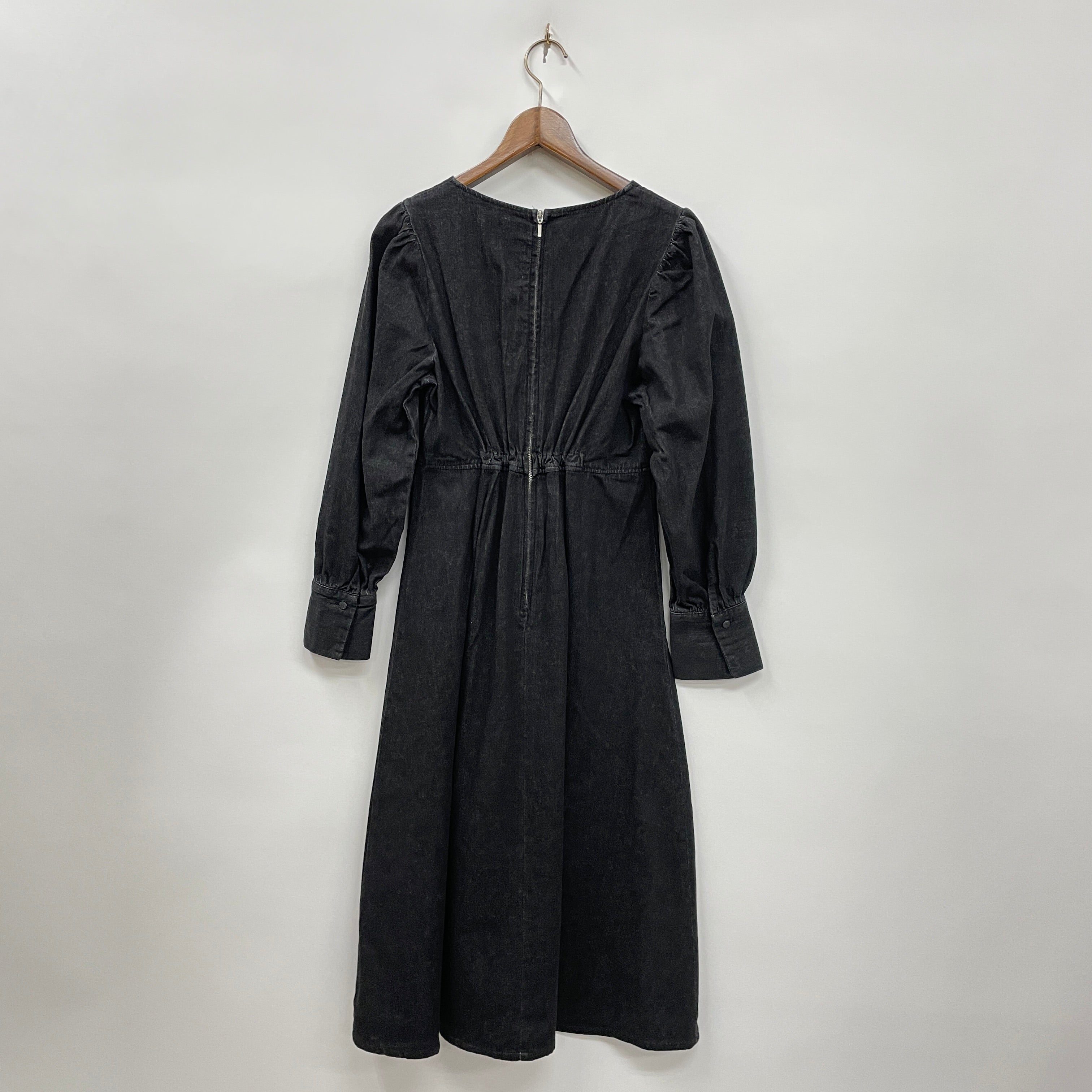 シルエットの美しい、爽やかなデニムのワンピースです。