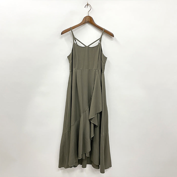 フロントのラッフルフリルがポイントのキャミワンピースです。