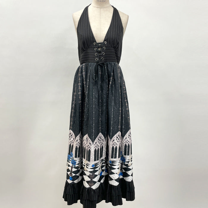 ジャカード生地にプリントされた厳かな雰囲気漂うチェスボード柄が目を惹くワンピースです。