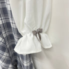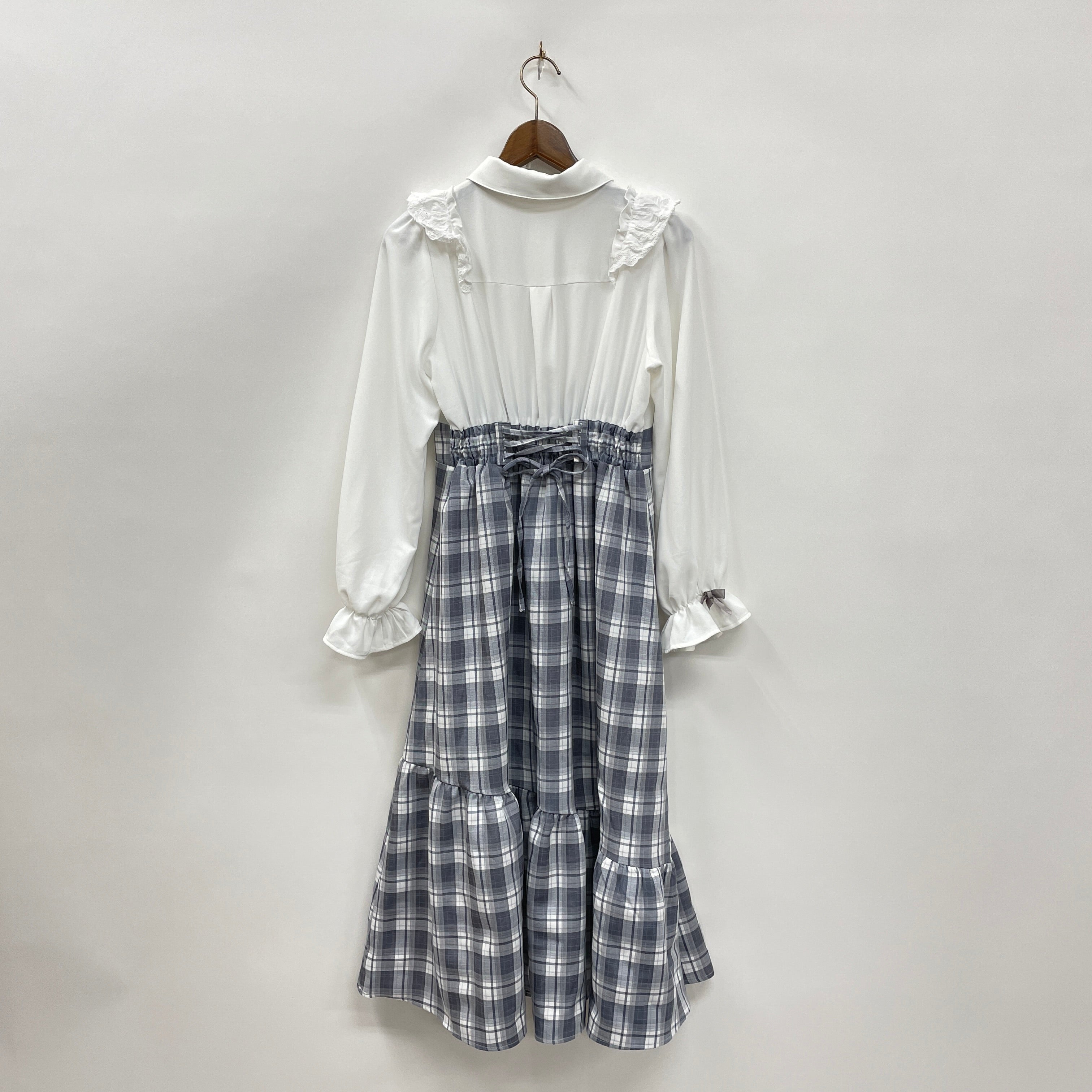 袖口の配色リボンや、コットンレースのフリル使いなどガーリーなディテールをぎゅっと詰めたワンピースです。