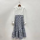 ブラウスとロングスカートをドッキングしたデザインのワンピースです。