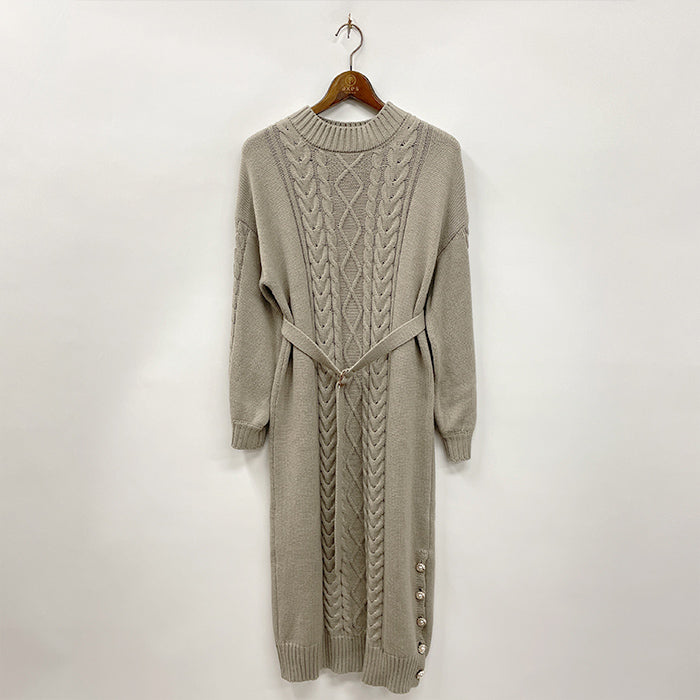裾ボタンニットワンピース