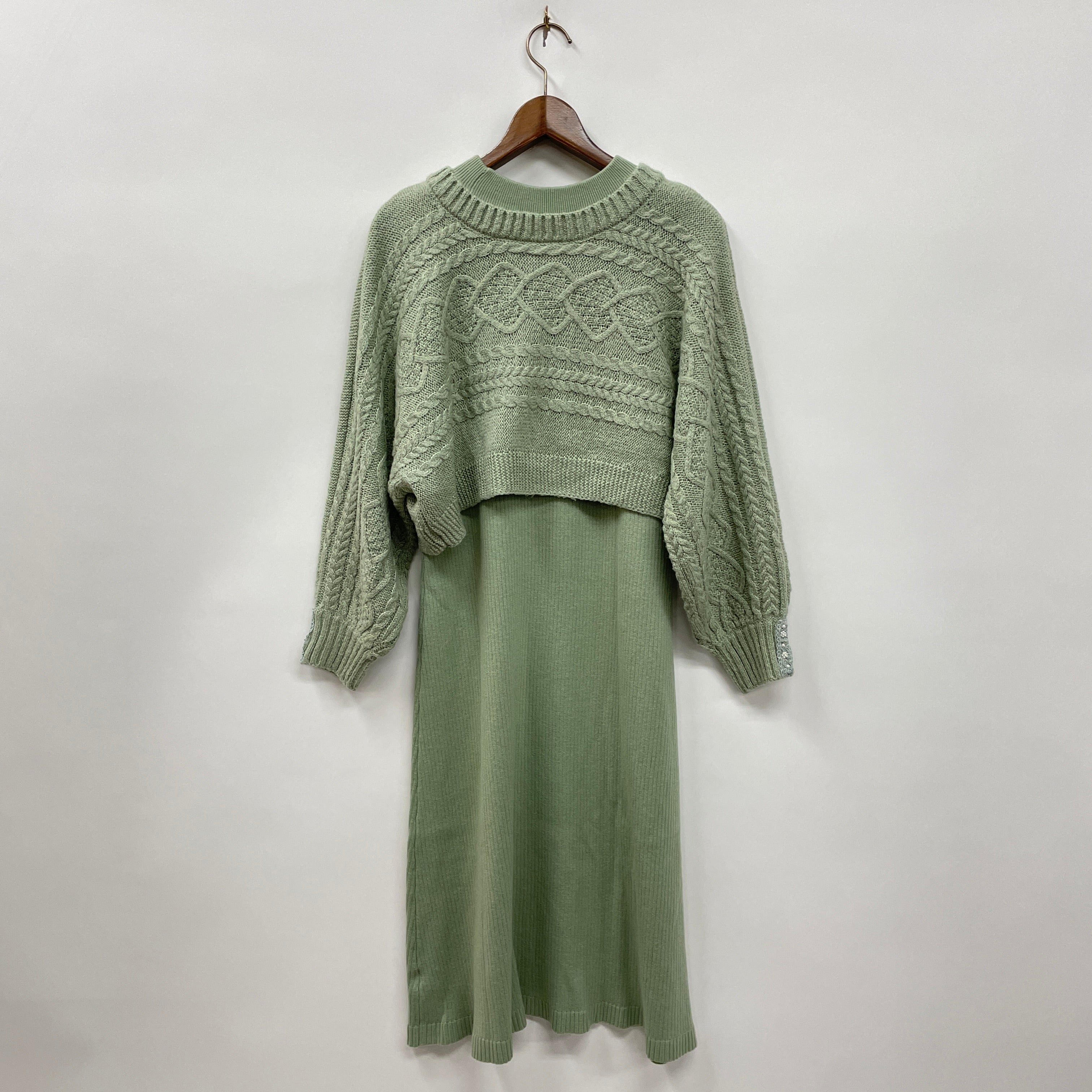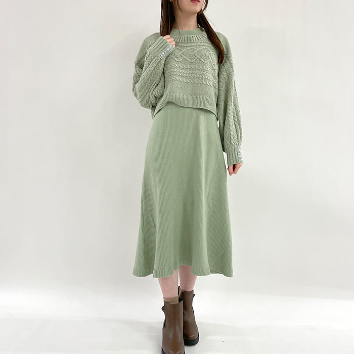 編上袖ニットフレアワンピース